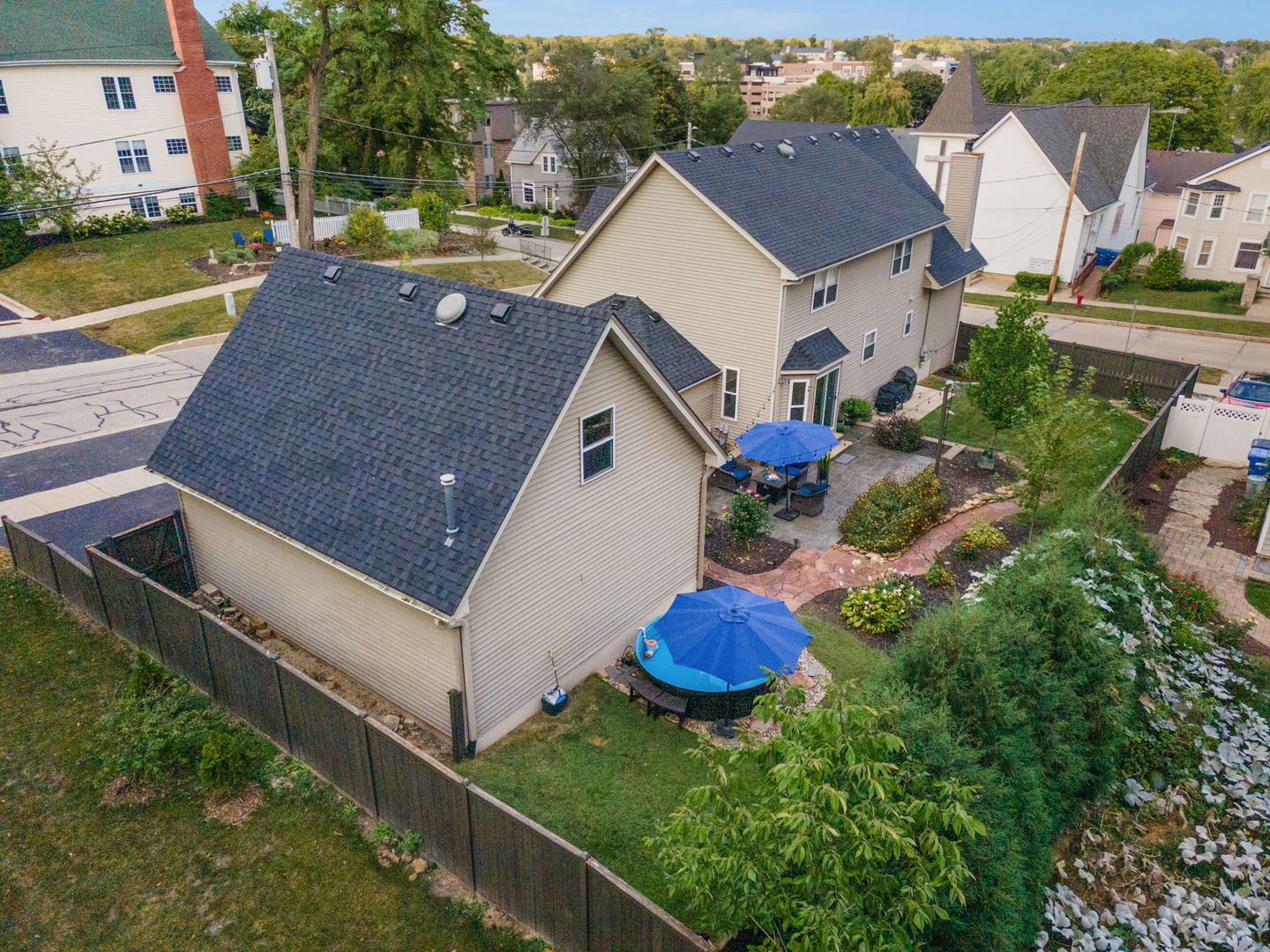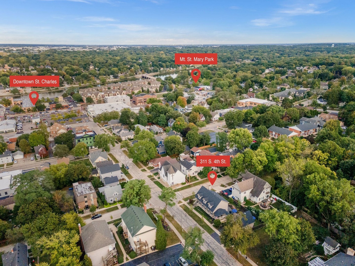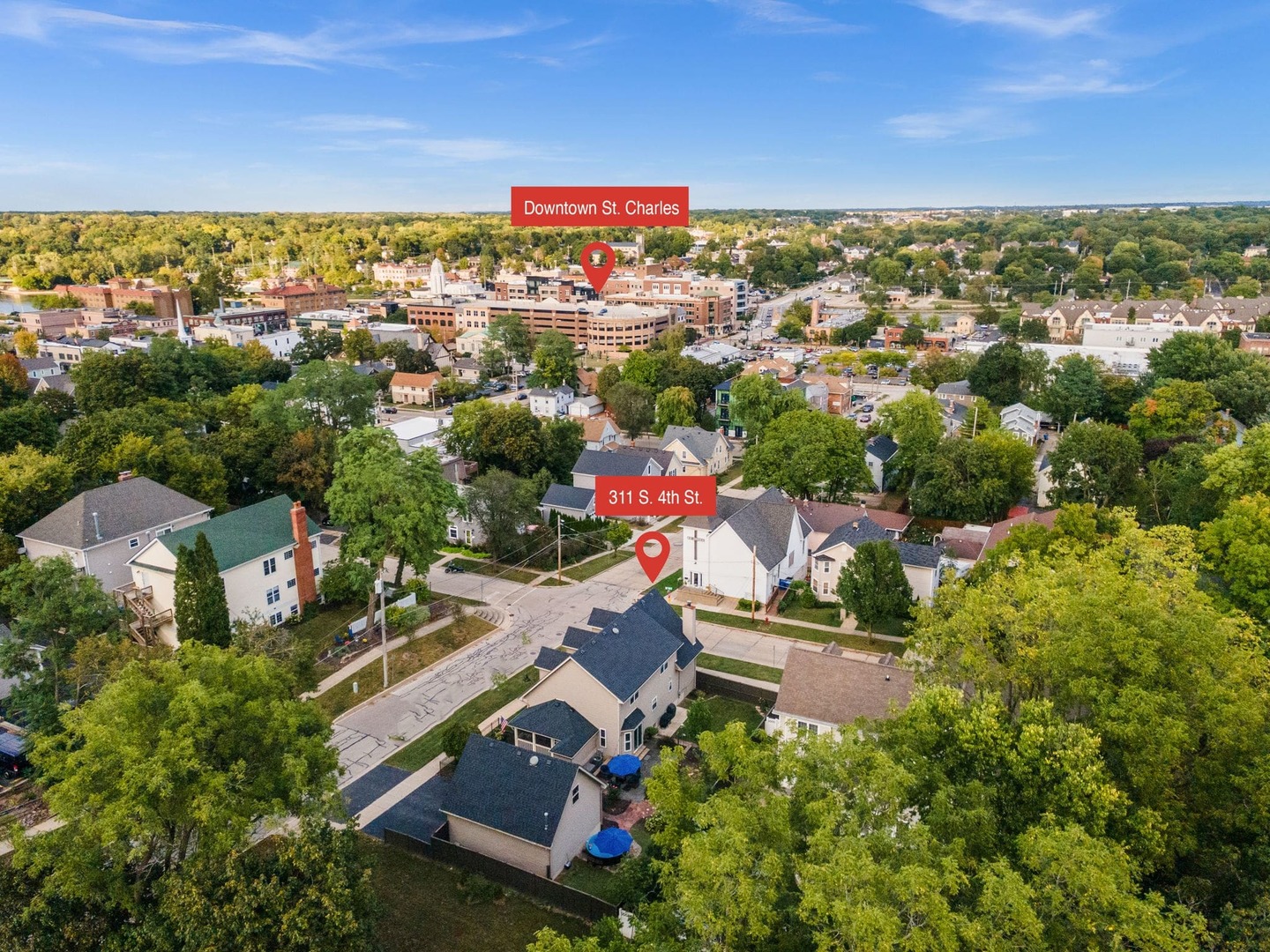 Welcome to the heart of downtown St. Charles! This updated 3-bedroom, 2.5-bath two-story home sits on a professionally landscaped, fenced corner lot just steps from the river, shops, dining, and entertainment. Enjoy evenings on the screened porch, slate patio, or by the tranquil koi pond. The oversized 2-car garage includes stairs to a full loft-ideal for storage or a workshop. Inside, you’ll find hardwood flooring in the living room, dining room, and vaulted family room with cozy fireplace. The remodeled eat-in kitchen features 42″ shaker cabinets, quartz counters, farmhouse sink, tile backsplash, stainless steel appliances, and a breakfast bar. Upstairs, the hardwood-floored primary suite boasts an updated private bath, joined by two additional bedrooms and an updated hall bath. A full unfinished basement adds versatility. Major updates include a brand-new roof and front gutters (2025), plus new HVAC in 2022. Located in award-winning St. Charles School District and just a short drive to the Geneva Metra station!