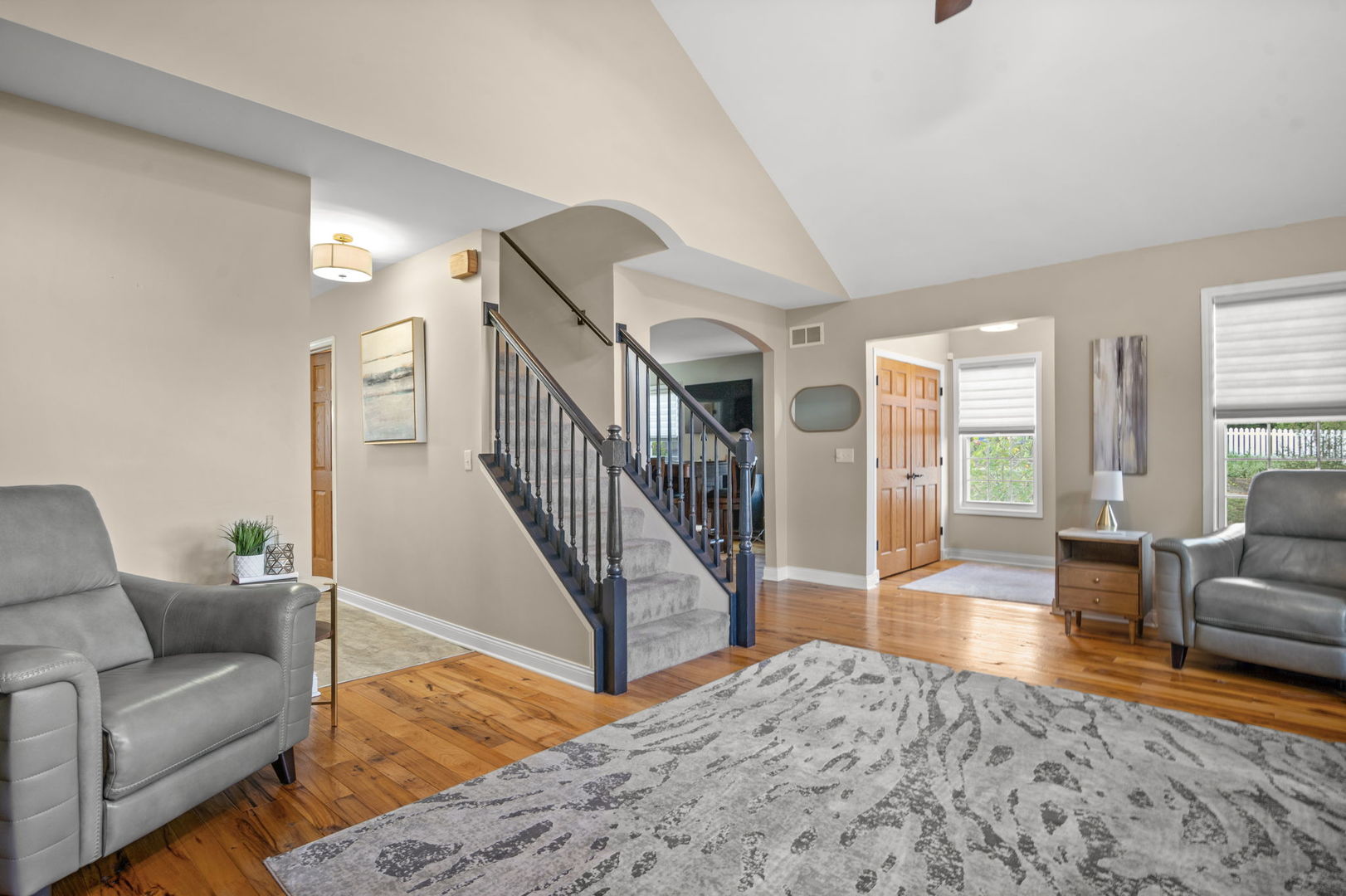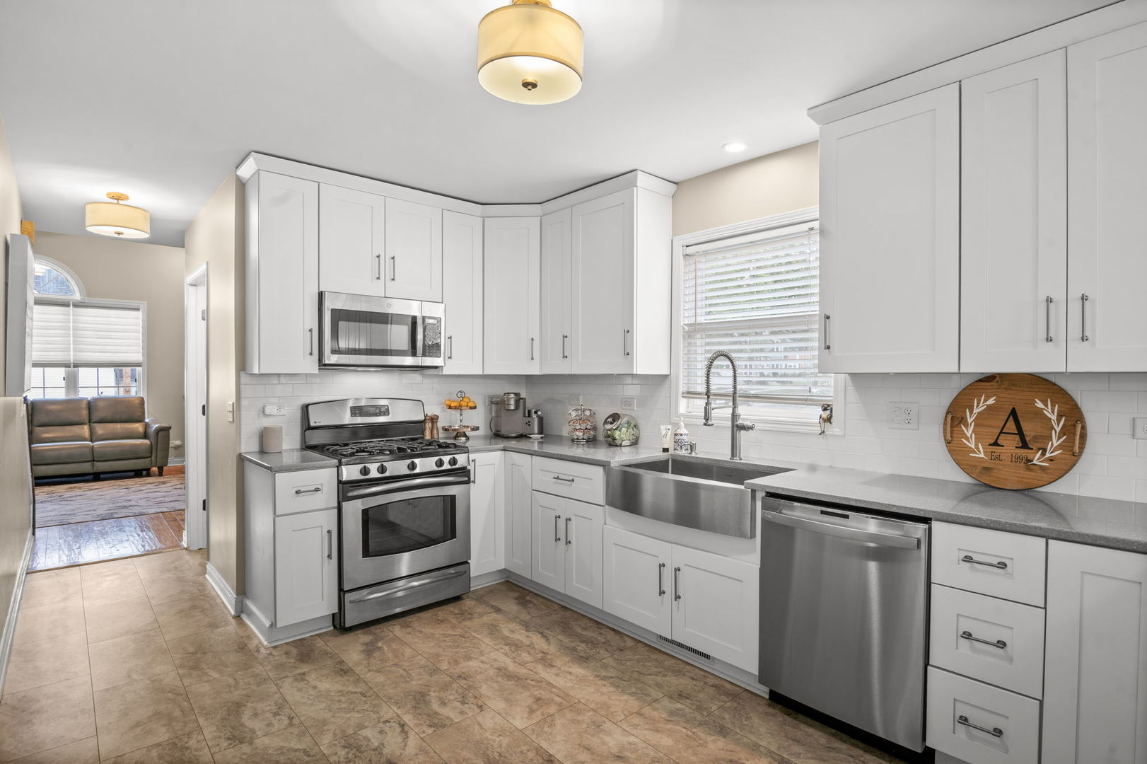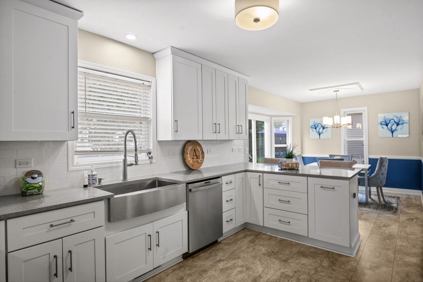 Welcome to the heart of downtown St. Charles! This updated 3-bedroom, 2.5-bath two-story home sits on a professionally landscaped, fenced corner lot just steps from the river, shops, dining, and entertainment. Enjoy evenings on the screened porch, slate patio, or by the tranquil koi pond. The oversized 2-car garage includes stairs to a full loft-ideal for storage or a workshop. Inside, you’ll find hardwood flooring in the living room, dining room, and vaulted family room with cozy fireplace. The remodeled eat-in kitchen features 42″ shaker cabinets, quartz counters, farmhouse sink, tile backsplash, stainless steel appliances, and a breakfast bar. Upstairs, the hardwood-floored primary suite boasts an updated private bath, joined by two additional bedrooms and an updated hall bath. A full unfinished basement adds versatility. Major updates include a brand-new roof and front gutters (2025), plus new HVAC in 2022. Located in award-winning St. Charles School District and just a short drive to the Geneva Metra station!