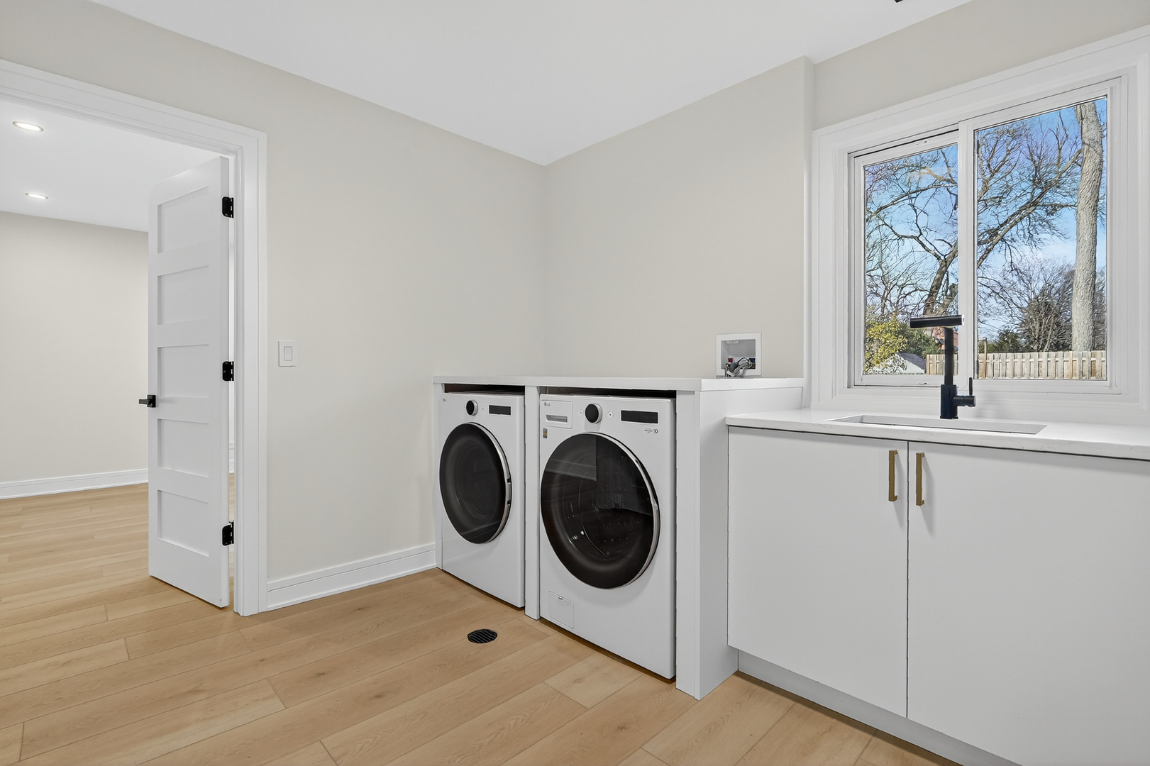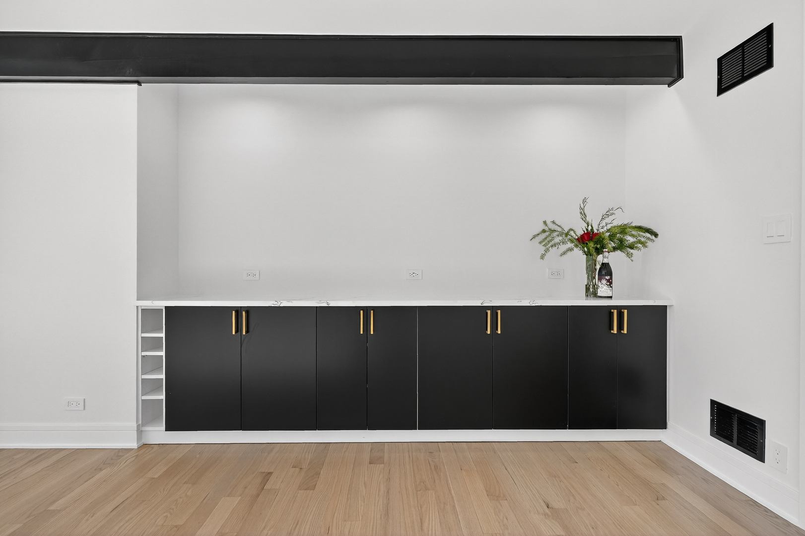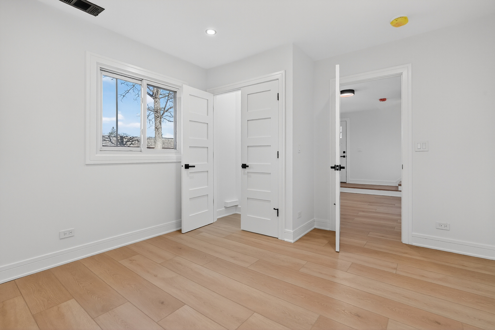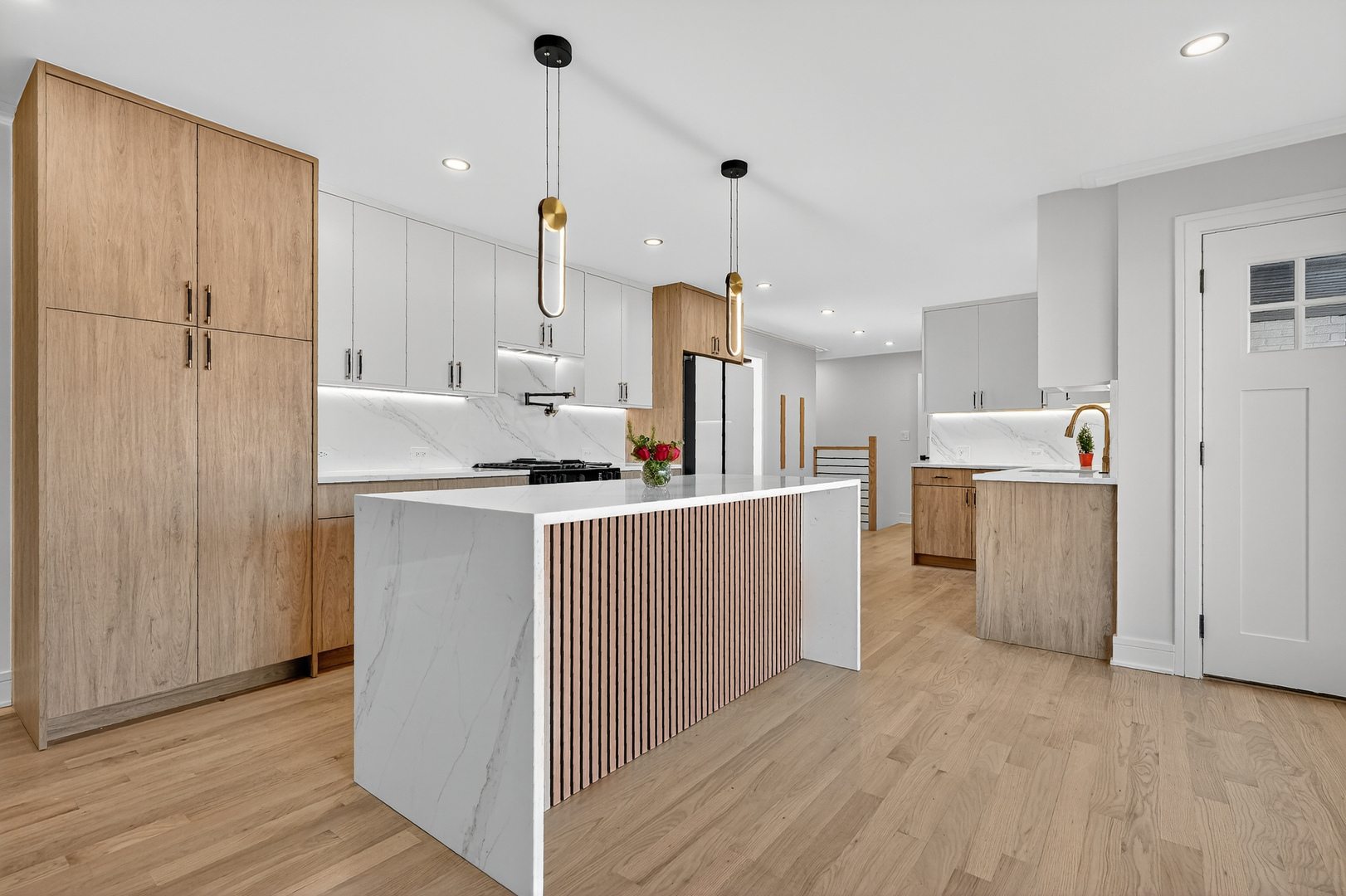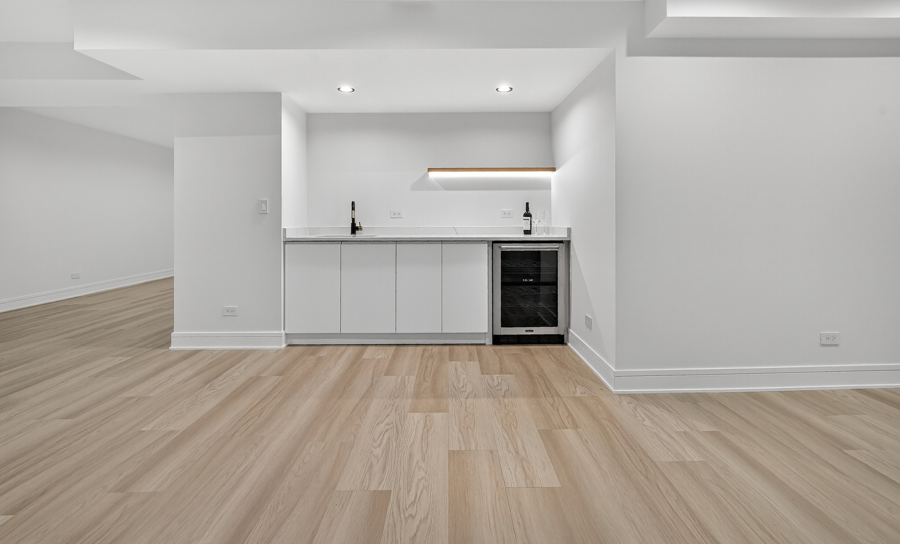 Experience luxury living on a serene 1/2-acre lot in this fully renovated, design-forward ranch featuring 4 bedrooms, 3.5 baths, and a finished basement with soaring ceilings. Oversized floor-to-ceiling windows flood the living and dining areas with natural light, highlighting rich hardwood floors and sophisticated custom carpentry throughout. The custom kitchen boasts high-end Samsung Bespoke appliances, premium finishes, and seamless flow for entertaining. The expansive primary suite includes a custom walk-in closet and a spa-like bath with heated flooring. A generous mud room/laundry room adds functionality and elegance. The lower level offers impressive living space with pre-wired speaker cables, a dedicated wine cooler, and endless flexibility for entertainment. The main living room is equipped with installed speakers and a receiver, while the garage is ready for an electric vehicle charger. Set in the highly sought-after Fremd High School district and surrounded by mature trees, this property blends modern luxury with suburban tranquility.