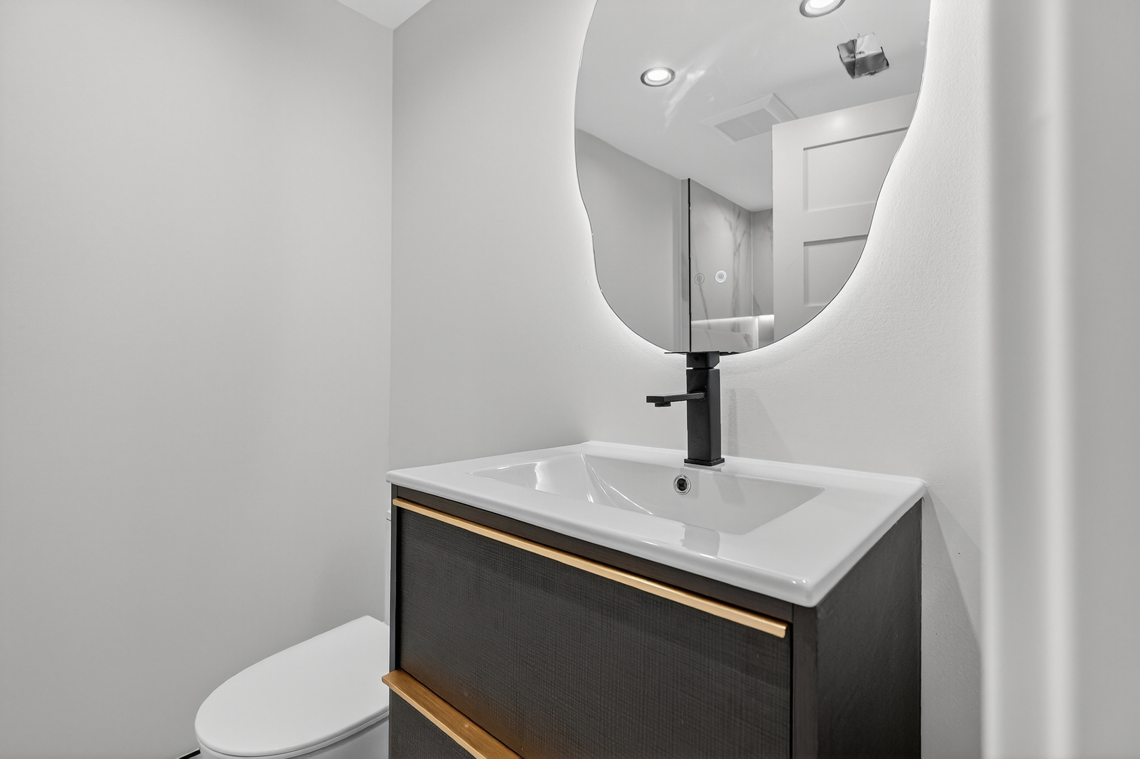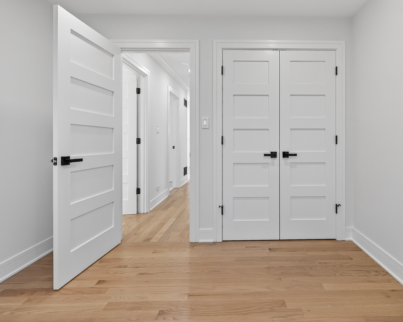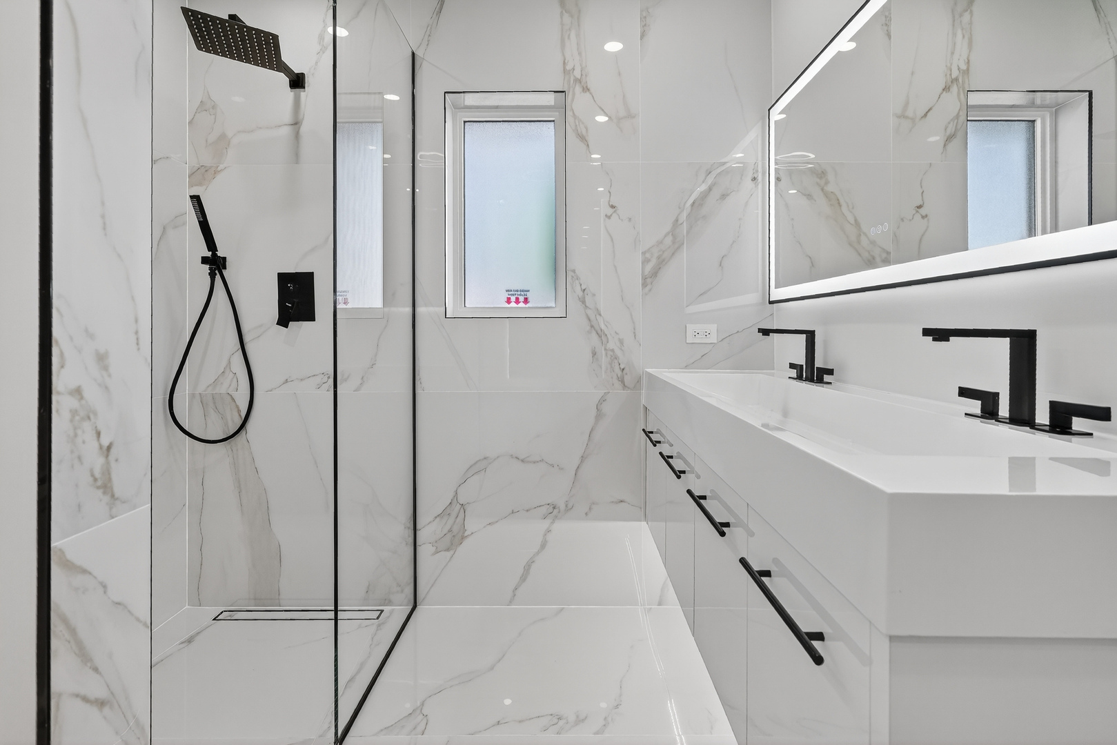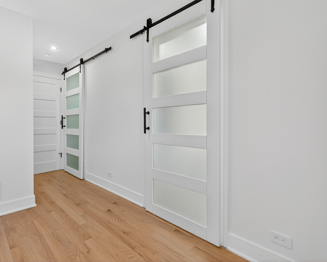 Experience luxury living on a serene 1/2-acre lot in this fully renovated, design-forward ranch featuring 4 bedrooms, 3.5 baths, and a finished basement with soaring ceilings. Oversized floor-to-ceiling windows flood the living and dining areas with natural light, highlighting rich hardwood floors and sophisticated custom carpentry throughout. The custom kitchen boasts high-end Samsung Bespoke appliances, premium finishes, and seamless flow for entertaining. The expansive primary suite includes a custom walk-in closet and a spa-like bath with heated flooring. A generous mud room/laundry room adds functionality and elegance. The lower level offers impressive living space with pre-wired speaker cables, a dedicated wine cooler, and endless flexibility for entertainment. The main living room is equipped with installed speakers and a receiver, while the garage is ready for an electric vehicle charger. Set in the highly sought-after Fremd High School district and surrounded by mature trees, this property blends modern luxury with suburban tranquility.