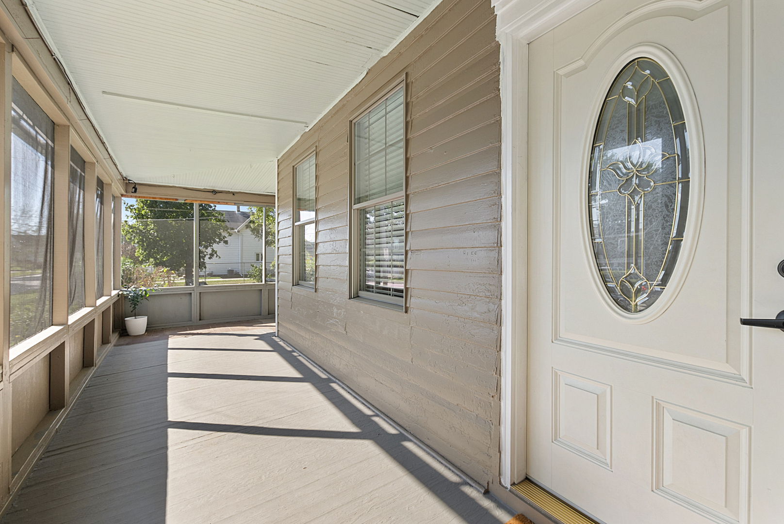 Welcome to this beautiful home in the heart of Elgin, perfectly situated on a corner lot. Enjoy your morning coffee or relax on the wraparound enclosed front porch. As you step inside, you will be greeted by gleaming wood laminate flooring and an open floor plan. The living room features white trim, built in cabinets and a brick fireplace, creating an inviting atmosphere for relaxation and entertainment. The dining room is equipped with wood laminate flooring, white trim, can lighting, and a fan. Bright and sunny kitchen features many cabinets, counter space, and an island. Mudroom off the kitchen is perfect for additional storage. Main floor bedroom has wood laminate flooring and beautiful french doors. The full hallway bathroom completes the main level. Upstairs you will find 2 nice size bedrooms both featuring hardwood flooring. 1 bedroom includes a walk-in closet and the other bedroom offers a bonus room, that is perfect for an office, playroom, or walk-in closet. Full hallway bathroom on the 2nd floor. Full basement with lots of space for storage. Newer windows throughout the main and 2nd floor of the home. Sprawling backyard features a large patio, perfect for entertaining. 2 car detached garage currently being used for storage, but has potential to be converted back. Don’t miss this opportunity to own a meticulously maintained home. Schedule your private showing today! Property sold as-is.