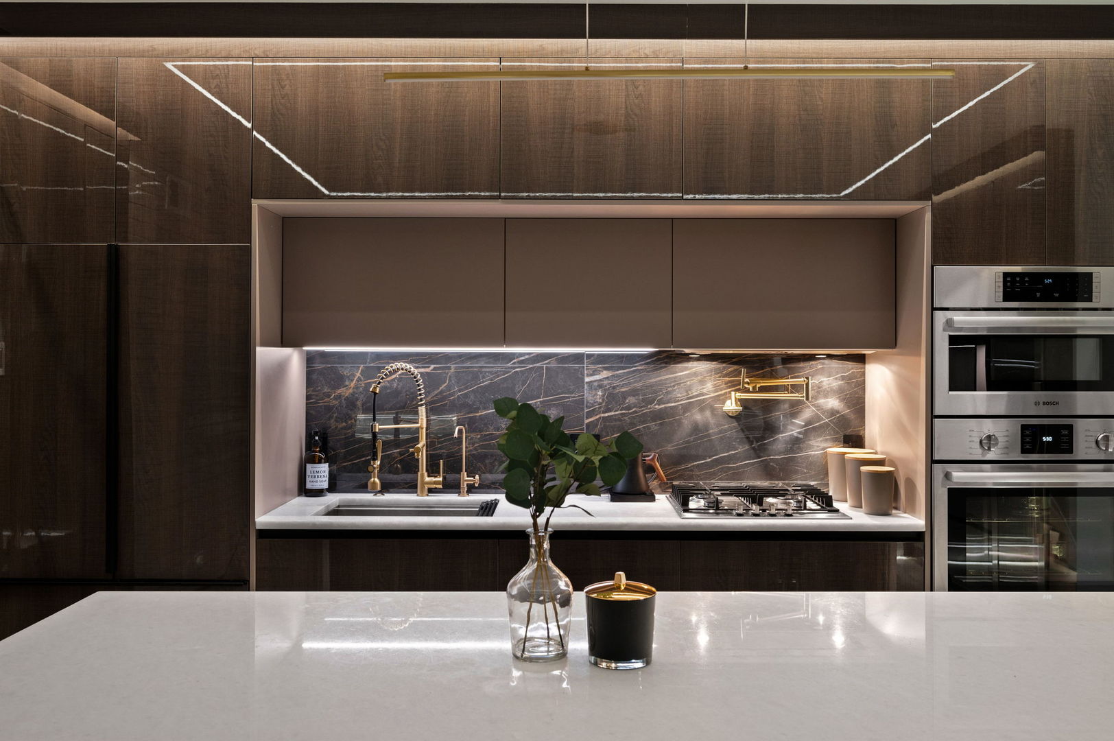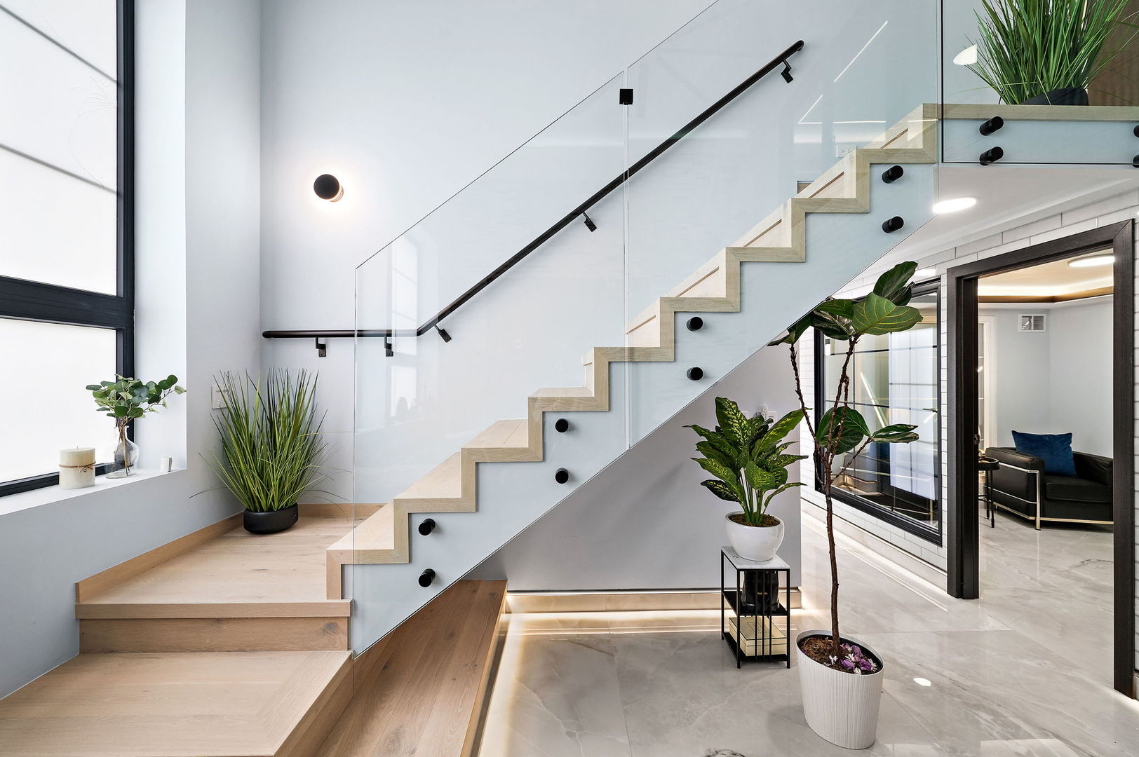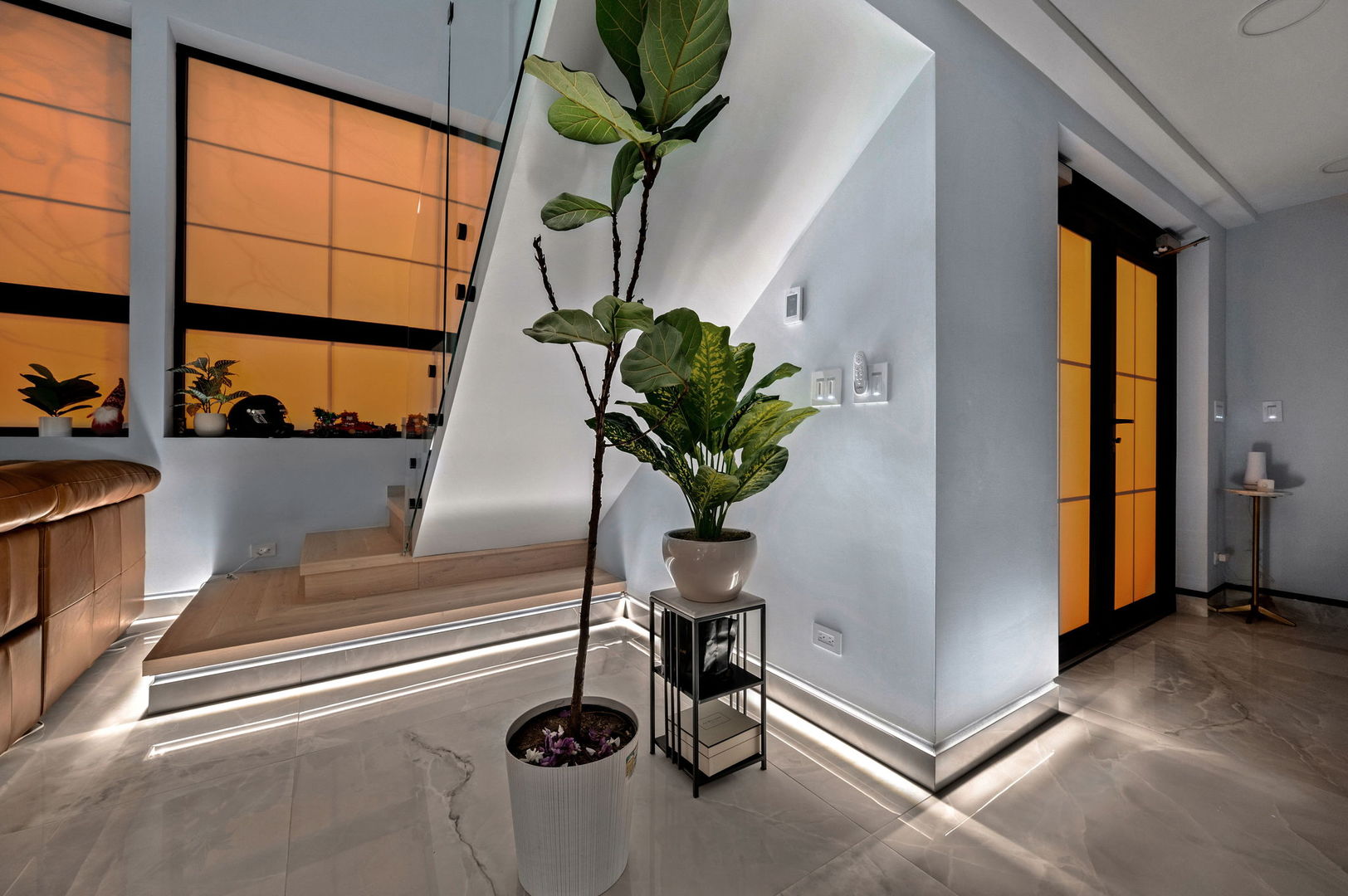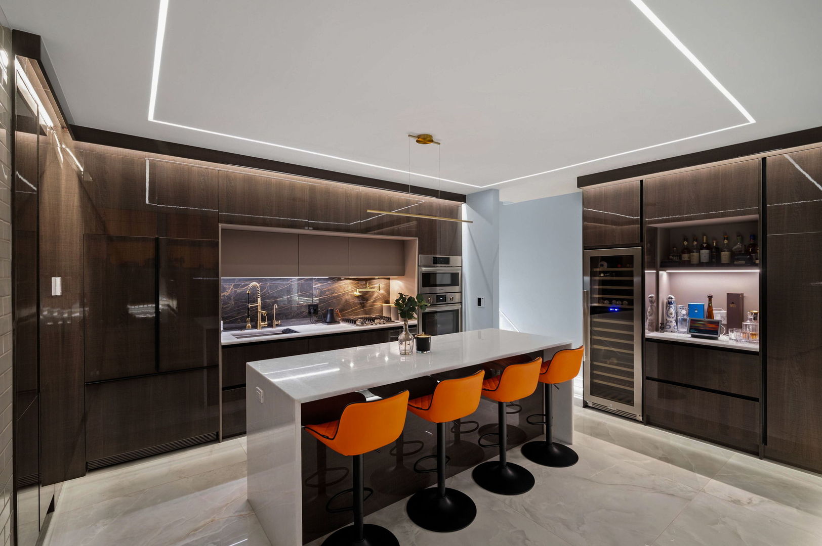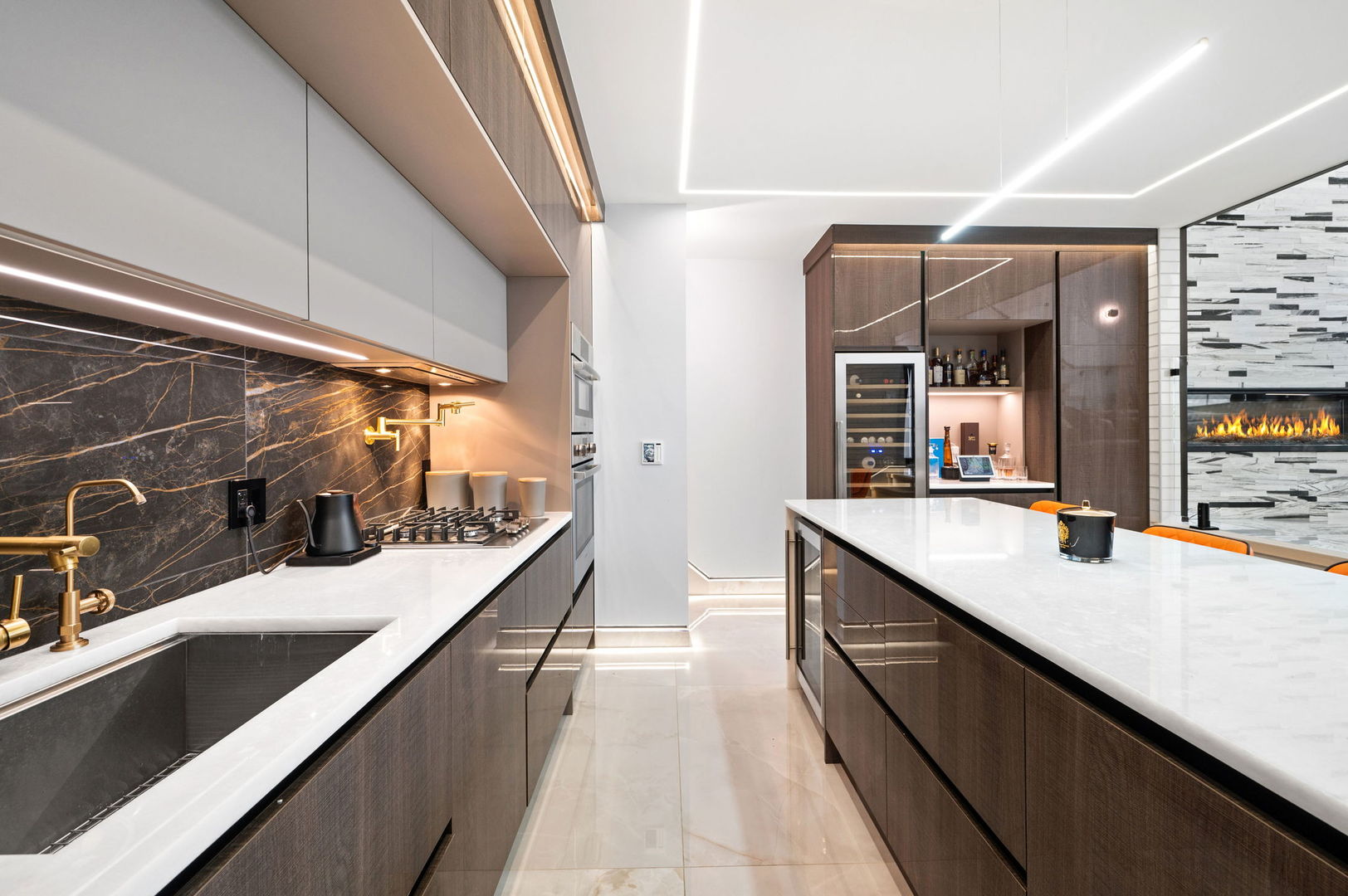 Located in the Horner Park area, this meticulously designed ground-level duplex up offers approximately 1,800 sq/ft of thoughtfully curated living space across three bedrooms and two and a half bathrooms. Blending advanced smart home technology with modern design, the residence features full voice-activated automation that controls lighting, climate, entertainment, and security systems with ease. Expansive 10 to 18-foot ceilings and floor-to-ceiling windows create an open, light-filled atmosphere throughout. The main level is finished in heated 4×4 Onyx-style tile, complemented by custom LED-lit baseboards with sleek black trim for a clean, contemporary look. The kitchen is outfitted for both daily living and entertaining, featuring a paneled high-end appliance package, quartzite countertops with waterfall edges, a reverse osmosis drinking water system, a 150-bottle wine fridge, and a dedicated beverage center. Integrated LED lighting and built-in artwork contribute to the kitchen’s distinctive design. An 18-foot custom-tiled feature wall with oversized tile slabs anchors the living room, offering a dramatic backdrop for an entertainment system. Other architectural highlights include a floating illuminated staircase with glass railings and Italian-imported interior doors with matching hardware. The spa-inspired bathrooms feature large-format tile, a soaking tub, a steam shower with body spray, and refined finishes throughout. The powder room includes floor-to-ceiling tile, a Japanese smart toilet, and a modern urinal. A private office with heated floors and floor-to-ceiling windows provides a comfortable and functional workspace. Combining modern functionality with high-end craftsmanship, this residence offers a sophisticated and highly livable environment in one of Chicago’s vibrant neighborhoods. This residence is being sold as-is.