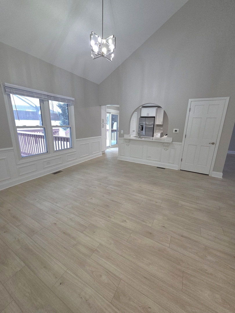 Finally, a completely remodeled ranch! Gorgeous living room with bay window, vaulted ceilings, two- sided fireplace with custom millwork. Dining room with wainscotting, new lighting, new wide plank floors, arch opening. Kitchen has new 42-inch cabinets, soft close drawers, new stainless steel appliances, new quartz countertops with new sink and faucet. Family room with vaulted ceilings, skylight, fireplace, and new ceiling fan. Master suite has double closets, vaulted ceilings, new ceiling fan. Master bath has skylight, new dual raised vanities with quartz tops and soft close drawers, new heated tile floors, large walk-in shower with custom glass door. Beautiful, finished basement with new carpet, can lights, wet bar with full-size stainless-steel fridge, huge storage area! All this plus a spacious deck and a peaceful backyard. Fantastic neighborhood amenities with clubhouse, pool, hot tub, and waterslide.
