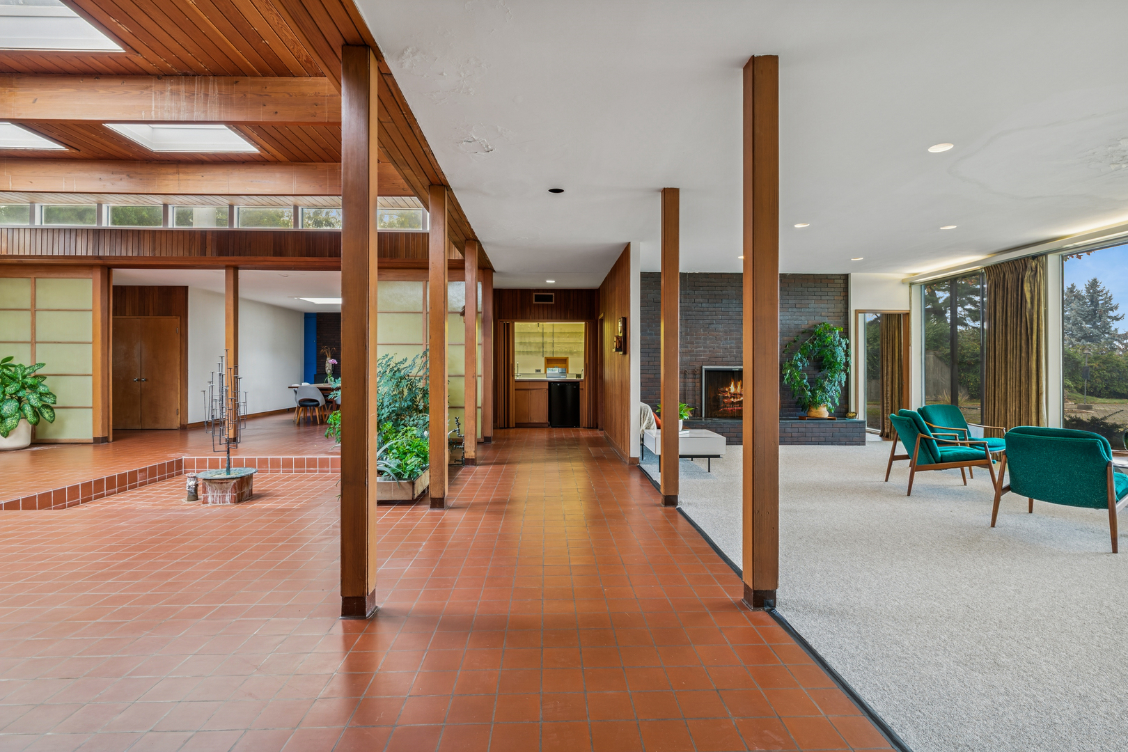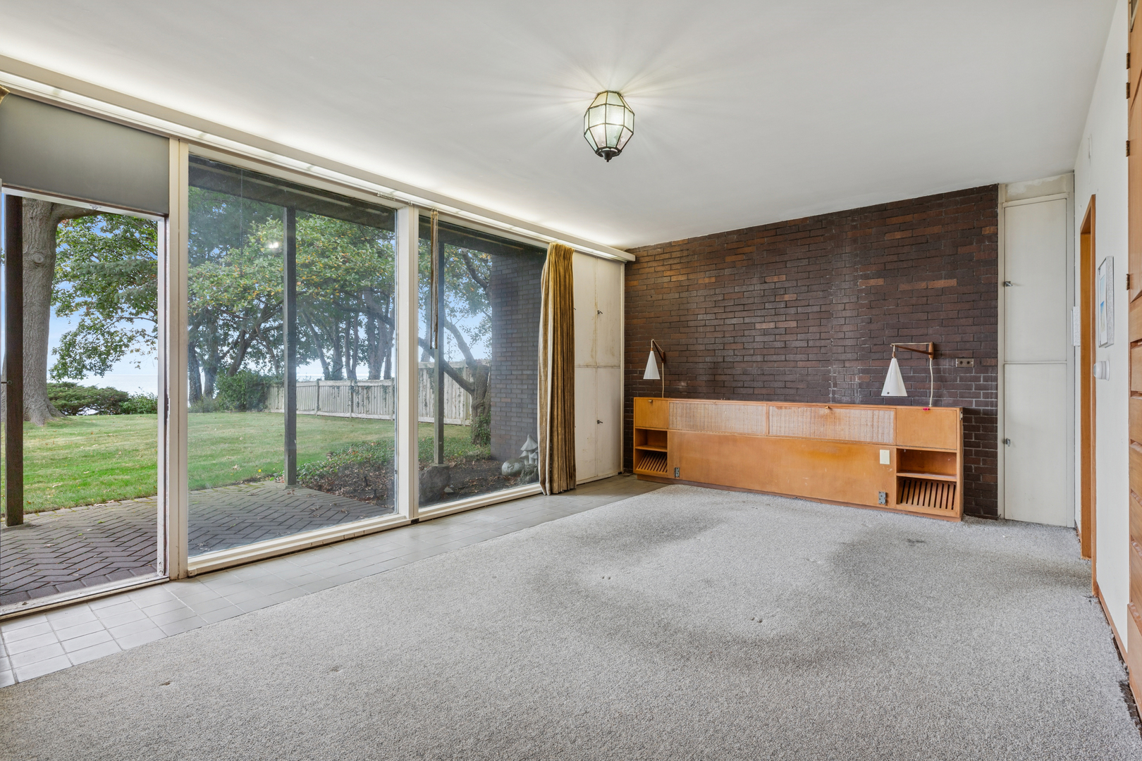 A rare lakefront opportunity in Kenilworth, set on nearly three quarters of an acre, features exceptional table land, a well-preserved bluff with a winding path to the lake, and a private lakefront! Designed by Keck and Keck in 1957, this one-level midcentury modern home showcases clean lines, expansive glass, and radiant heated floors throughout. At its center, a skylit atrium and clerestory windows create an ever-changing play of light. Shoji screens allow the space to shift from open gathering areas to a quiet retreat separated from the bedroom wing. The primary suite faces the lake, while three additional bedrooms line the peaceful south side. The main living areas open to panoramic lake views. A substantial seawall installed with adjoining neighbors protects a shoreline that naturally ebbs and flows. Walk to schools from kindergarten through high school and enjoy nearby Plaza del Lago with its high-end shops and restaurants.