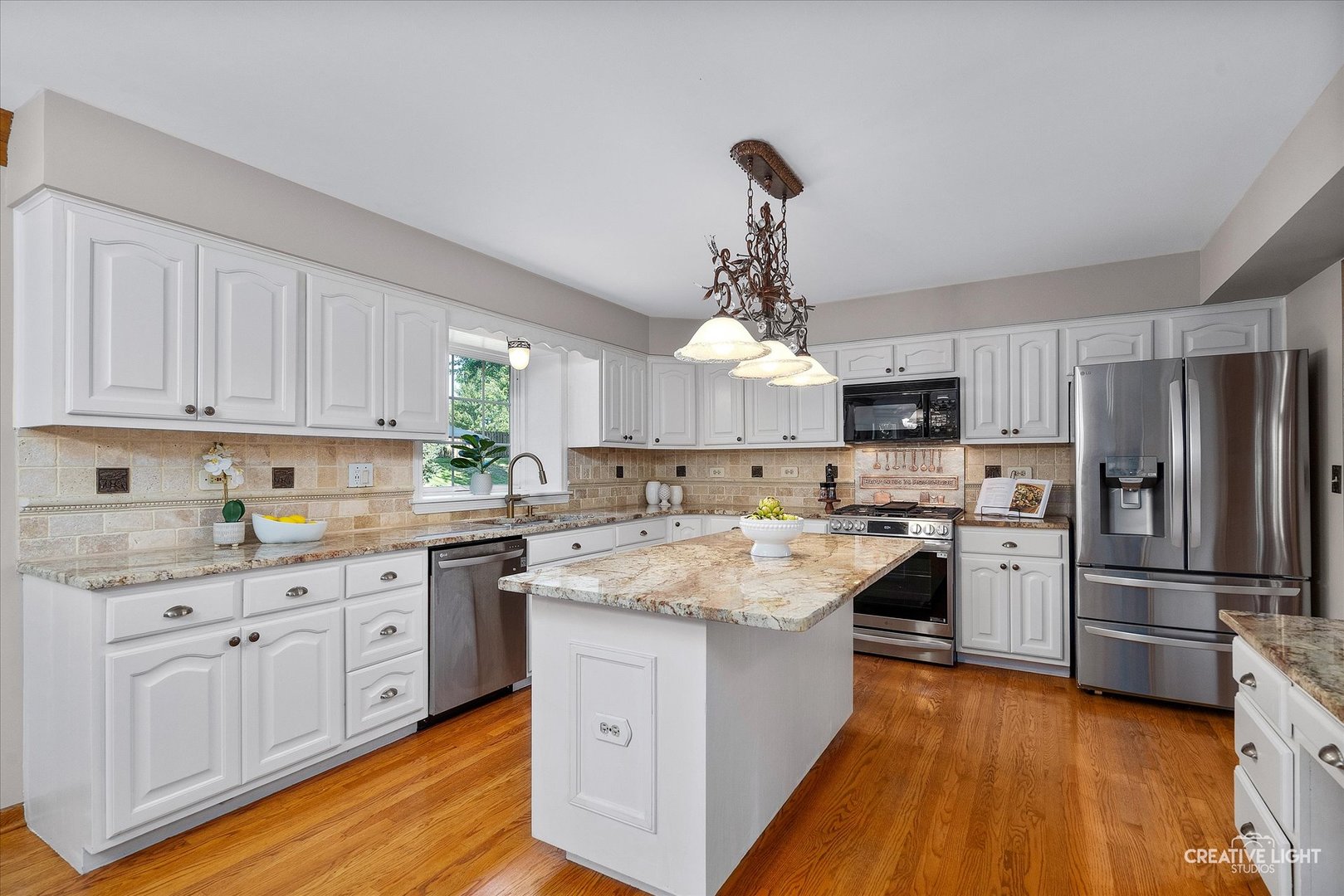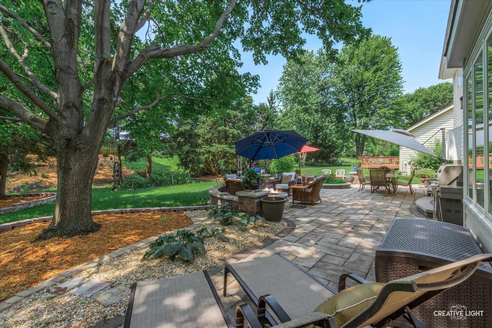 ASHBURY BEAUTY CHECKS ALL THE BOXES! Exceptional home with BRICK facade and approximately 3,900 square feet of living space located on a spacious .25-acre lot! Get ready to enjoy your backyard oasis featuring custom bluestone patio with multi-seating areas, built-in gas firepit with fire glass, brick paver walkways, professional landscaping, and privacy fence. Stunning curb appeal with mature trees, 3-car garage, paver walkway and concrete driveway. Welcome guests into the foyer with hardwood flooring and separate living/dining room spaces. OPEN CONCEPT KITCHEN AND FAMILY ROOM is perfect for entertaining. SPACIOUS kitchen showcases refreshed, trendy white cabinets with newer hardware, island with seating, granite countertops, stainless steel appliances including NEW LG French Door Refrigerator and Smart Oven with Built-In Air Fryer (2025), hardwood flooring and space for a larger table makes this the perfect space to host family gatherings. Family room features an oversized bay window, hardwood flooring and NEW Real Fyre gas fireplace logs and glass surround (2025). The first-floor powder room and laundry are an added convenience. Primary bedroom features spacious walk-in closet and NEWER SPA-LIKE EN SUITE (2019) features large shower with glass surround, clawfoot tub, travertine tile, professionally painted vanity with dual sinks and granite countertops. Three additional bedrooms and hall bathroom with dual sinks and granite countertop. Enjoy the FINISHED basement with large recreational space and private OFFICE. NEW/NEWER: Marvin WINDOWS and PATIO DOORS (2017), ROOF/GUTTERS/SKYLIGHTS (2019), LENNOX High Efficiency FURNACE/AC/HUMIDIFIER (2016), Exterior Painting (2025), Sump Pump (2023), and Primary Bathroom Remodel (2019). Enjoy all Ashbury has to offer – clubhouse with rentable event spaces, resort-style pool with a zero-depth entry, water slide, and hot tub, tennis courts, sand volleyball, Ashbury Pond, bike trails, and sports fields – within walking distance. Short walk or bike to Patterson Elementary! Highly acclaimed District 204 schools, including NEUQUA VALLEY HIGH SCHOOL! Welcome home!