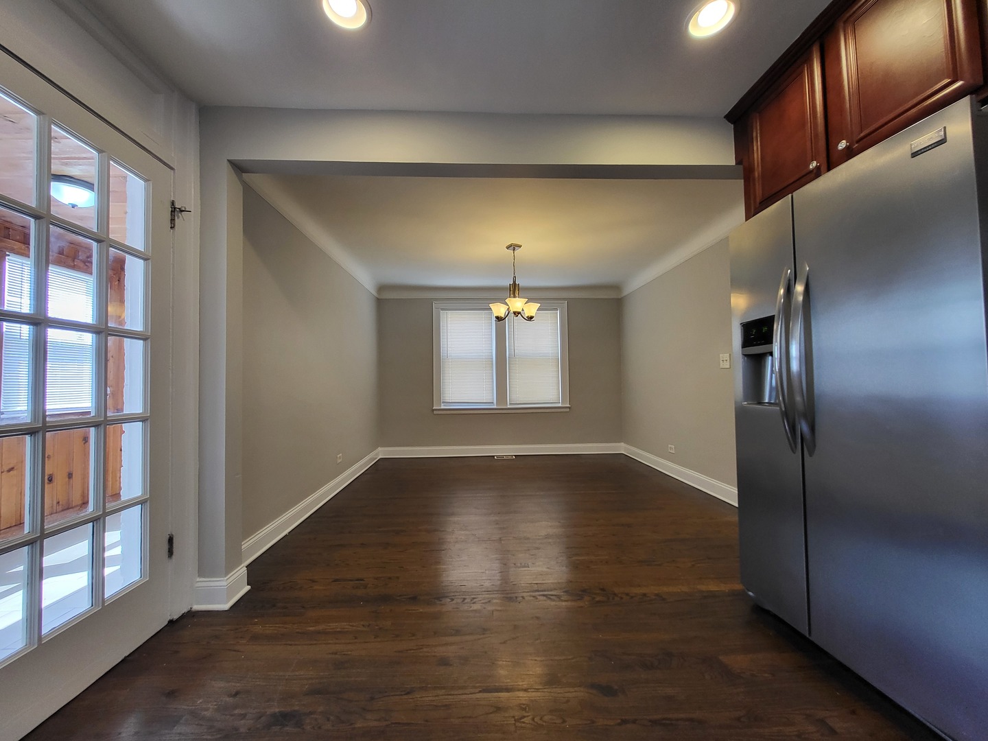This beautifully maintained 4-bedroom, 2-bath brick home blends vintage charm with modern updates in a convenient Chicago location. Inside, you’ll find rich hardwood flooring, stylish recessed lighting, and elegant archways that add character throughout. The updated kitchen features granite countertops, stainless steel appliances, and abundant cabinet space, all overlooking a spacious dining area perfect for entertaining. A French door just off the kitchen opens to a cozy enclosed back porch bathed in natural light, and a flexible main-floor bedroom offers the ideal setup for an office or den. Upstairs, two generous bedrooms include one with hardwood floors and one with carpeting, offering flexibility for comfort and use. The fully finished basement includes a fourth room perfect for a bedroom, study, or creative workspace, along with ample open space to suit a variety of needs. A dedicated laundry area and well-appointed baths add everyday convenience. Central air conditioning keeps the home comfortable year-round. Outside, a large backyard offers room to enjoy the outdoors, and a detached 2-car garage provides secure parking and additional storage. This home is move-in ready and set on a residential block with easy access to shopping, dining, and public transportation. Don’t miss your opportunity to own this versatile and inviting property.