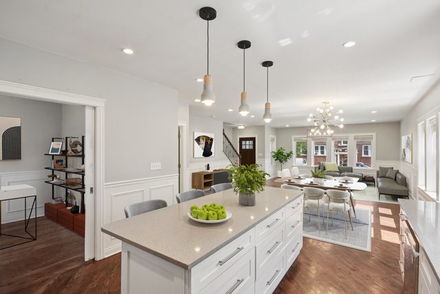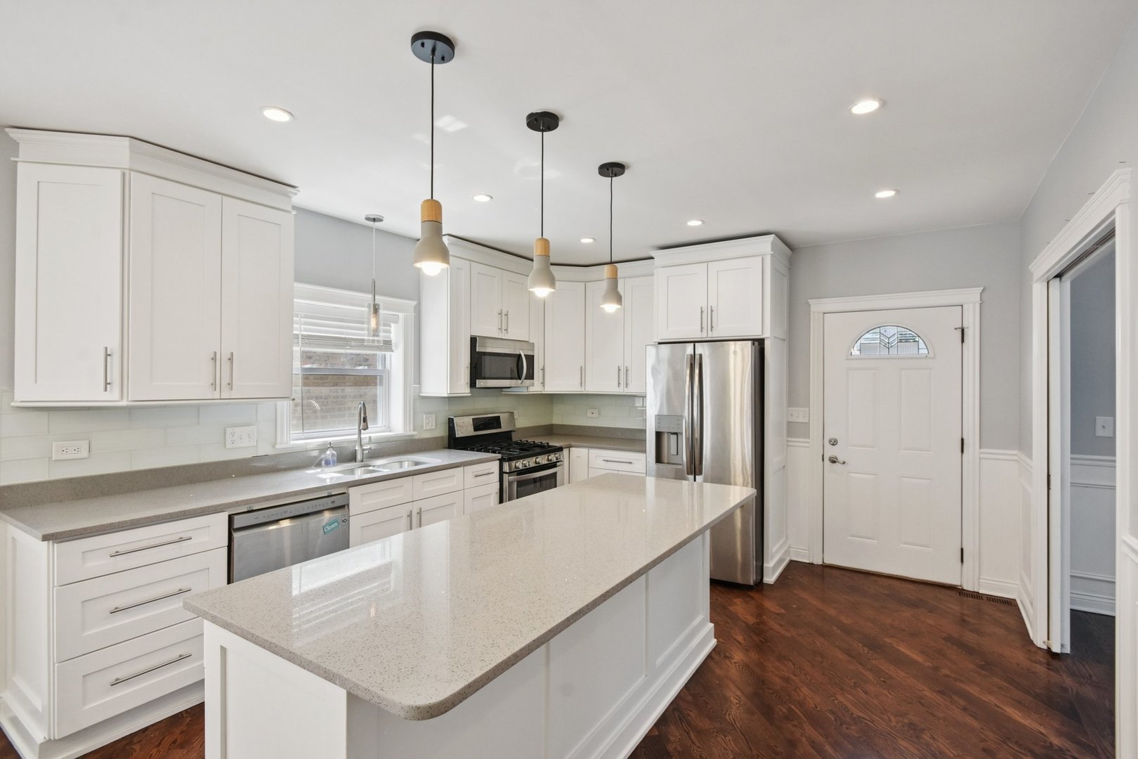Welcome to this beautifully rebuilt (2019) and fully updated home offering 4 bedrooms, 3.5 bathrooms, and a spacious, modern layout – all nestled in one of Chicago’s most convenient neighborhoods. Step inside and fall in love with the sun-drenched open floor plan, gleaming hardwood floors, and the perfect blend of style and functionality throughout. The chef’s kitchen is a showstopper, featuring a massive island ideal for cooking, entertaining, or casual meals with family and friends. Need a home office or extra bedroom? A flexible main-level room off the kitchen overlooks the fully fenced backyard and offers the perfect space for remote work or guests. Upstairs, you’ll find three generously sized bedrooms, including a serene primary suite. The fully finished basement offers even more living space – perfect for family movie nights, a home gym, or an in-law suite with a full bathroom already in place. Enjoy outdoor living with a spacious back deck, perfect for grilling or sipping your morning coffee. Don’t miss this picture-perfect home – ready for its new owners just in time for the holidays!