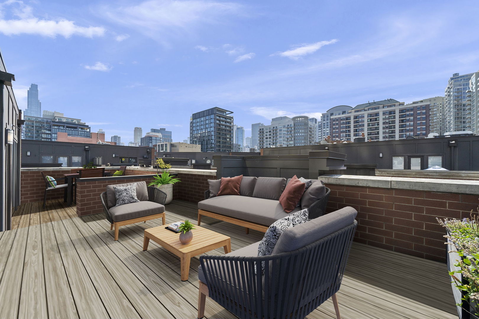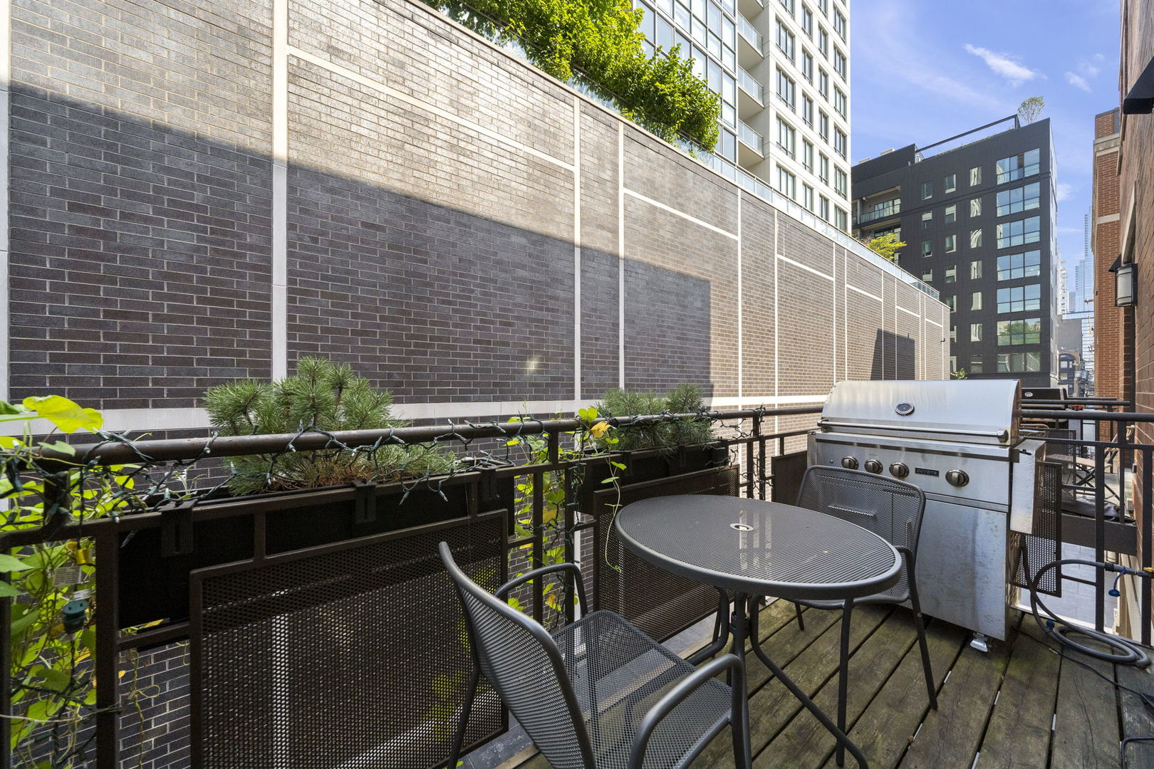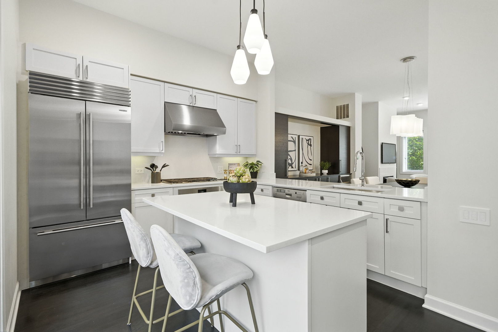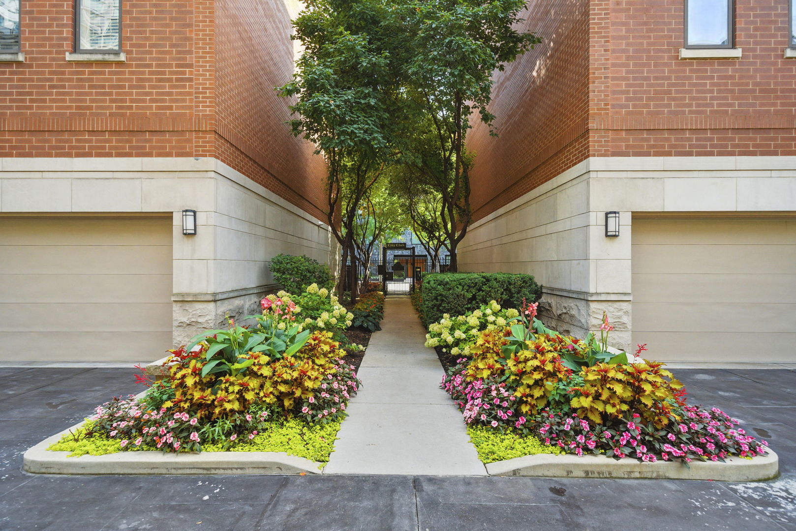 Stunning, sophisticated 3 bedroom plus den, 3 bathroom River North townhome in the coveted City Club gated community! This home is spacious, has a wonderful floor plan and lives like a single family home tucked away in the middle of River North! Thoughtfully updated and light-filled, this 4 level unit boasts stunning hardwood floors and 10 foot ceilings throughout. The ideal open floor plan is an entertainer’s dream featuring a beautifully updated kitchen with 42″ cabinetry, white quartz counters and backsplash, updated Subzero and Wolf stainless steel appliances, gracious island with breakfast bar, adjacent breakfast nook, walk-in pantry and generous sized balcony perfect for grilling with a Coyote gas grill installed and ready to go! Kitchen opens to a large dining space with built-in buffet and bright living room with gas fireplace, overlooking the tree-lined courtyard. The third level has a stunning king-sized primary suite with bay window, elegant custom walk-in closet, and grand en-suite bath with new quartz counter dual vanity, whirlpool bath, and oversized shower. Spacious second bedroom with custom closet and second full bath with quartz counter vanity complete this floor. The top level includes an enormous third bedroom with a giant walk-in closet, easily adaptable to a bedroom + den, along with a third full bath. Gorgeous rooftop terrace with spectacular city views! Lower level makes a perfect office/den/fitness room, with tiled flooring. 2 car attached garage, in-unit w/d and abundant storage throughout. All high-end modern appliances – Subzero/Wolf/Miele in the Kitchen, wine fridges, Samsung washer and dryer. Modern mechanicals, two AC units two Furnaces with smart thermostats. Light switches SmartHome capable. Steps from East Bank Club, Starbucks, Chicago CTA stop, Whole Foods, restaurants, shopping, and everything River North has to offer!