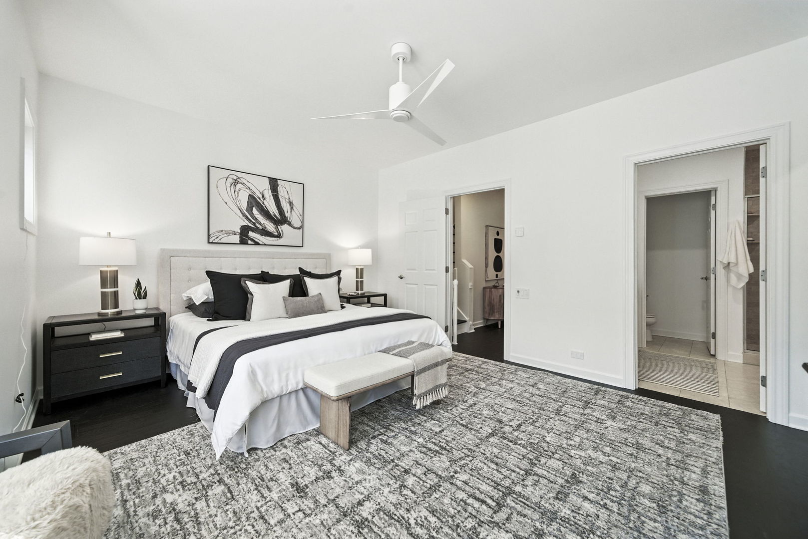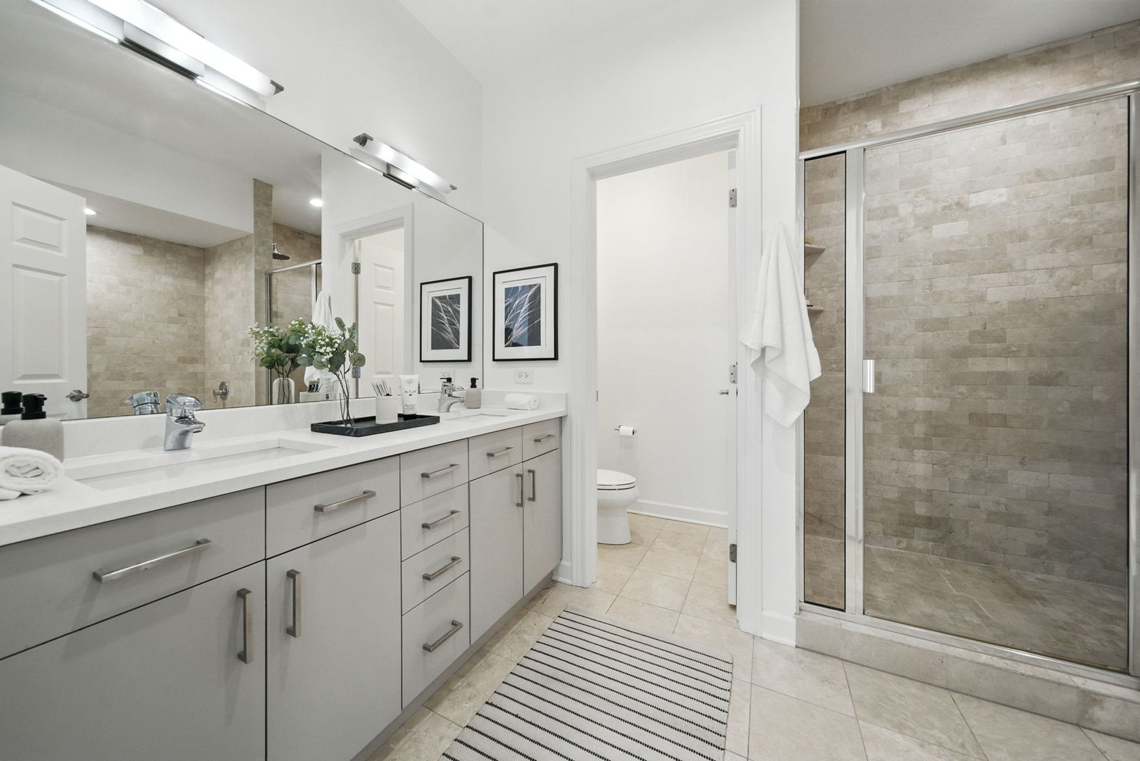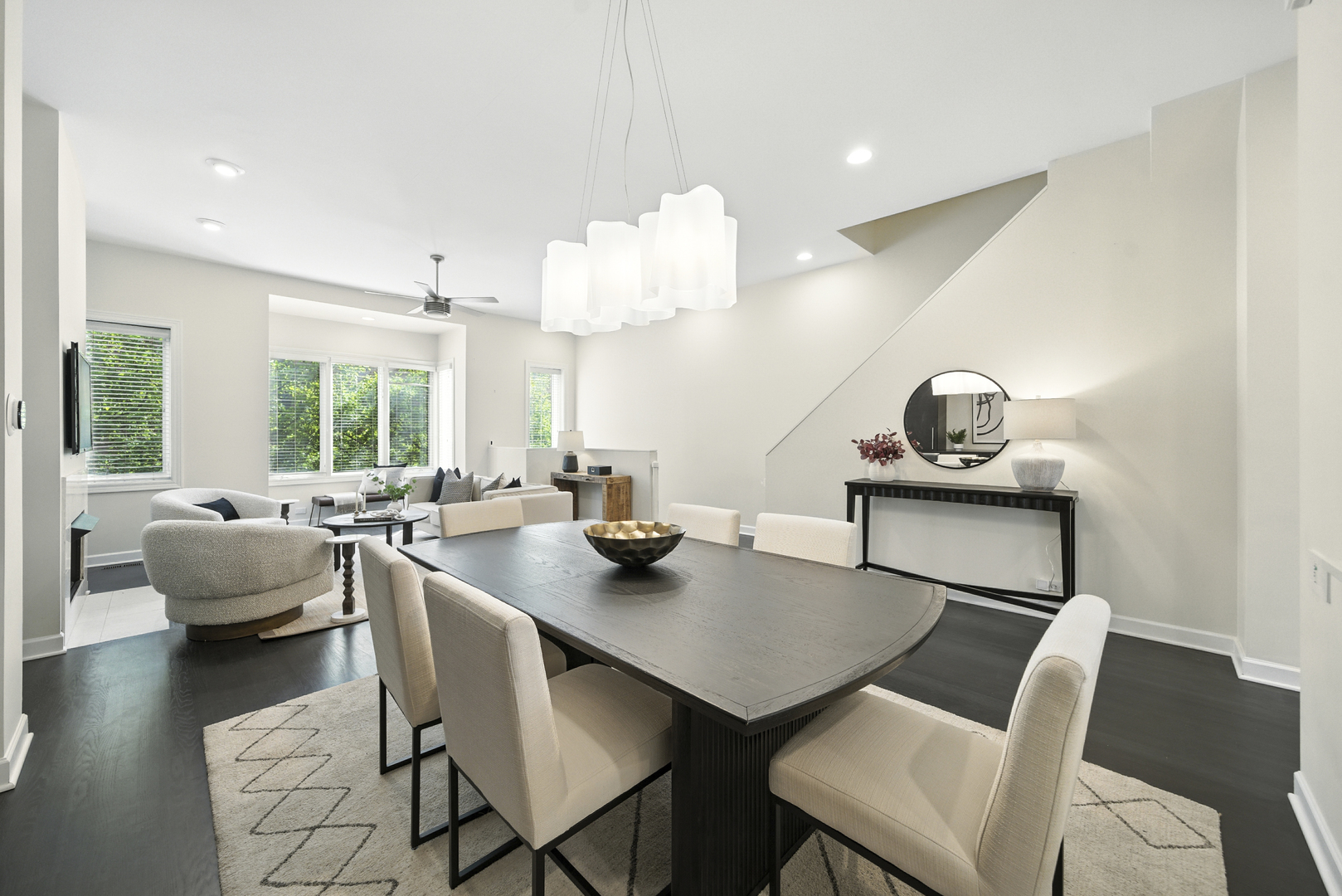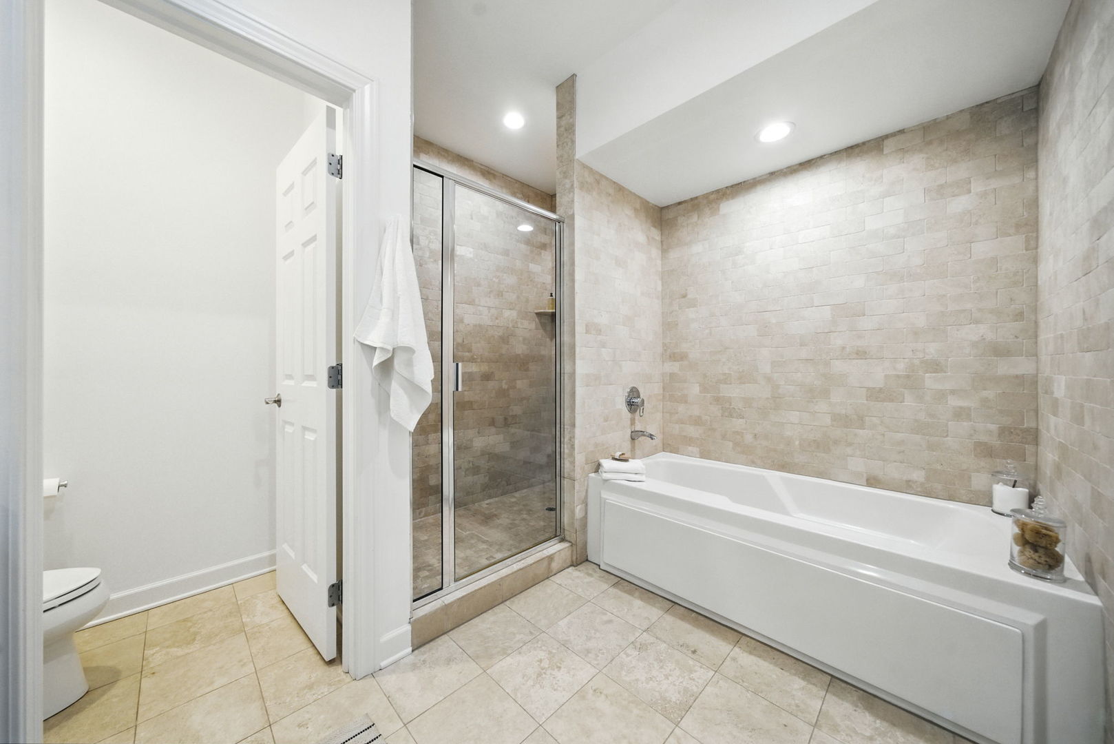 Stunning, sophisticated 3 bedroom plus den, 3 bathroom River North townhome in the coveted City Club gated community! This home is spacious, has a wonderful floor plan and lives like a single family home tucked away in the middle of River North! Thoughtfully updated and light-filled, this 4 level unit boasts stunning hardwood floors and 10 foot ceilings throughout. The ideal open floor plan is an entertainer’s dream featuring a beautifully updated kitchen with 42″ cabinetry, white quartz counters and backsplash, updated Subzero and Wolf stainless steel appliances, gracious island with breakfast bar, adjacent breakfast nook, walk-in pantry and generous sized balcony perfect for grilling with a Coyote gas grill installed and ready to go! Kitchen opens to a large dining space with built-in buffet and bright living room with gas fireplace, overlooking the tree-lined courtyard. The third level has a stunning king-sized primary suite with bay window, elegant custom walk-in closet, and grand en-suite bath with new quartz counter dual vanity, whirlpool bath, and oversized shower. Spacious second bedroom with custom closet and second full bath with quartz counter vanity complete this floor. The top level includes an enormous third bedroom with a giant walk-in closet, easily adaptable to a bedroom + den, along with a third full bath. Gorgeous rooftop terrace with spectacular city views! Lower level makes a perfect office/den/fitness room, with tiled flooring. 2 car attached garage, in-unit w/d and abundant storage throughout. All high-end modern appliances – Subzero/Wolf/Miele in the Kitchen, wine fridges, Samsung washer and dryer. Modern mechanicals, two AC units two Furnaces with smart thermostats. Light switches SmartHome capable. Steps from East Bank Club, Starbucks, Chicago CTA stop, Whole Foods, restaurants, shopping, and everything River North has to offer!