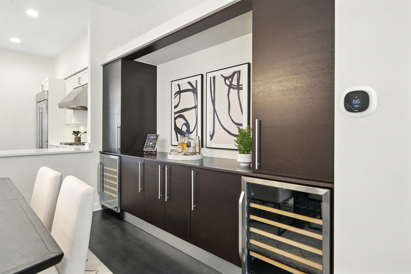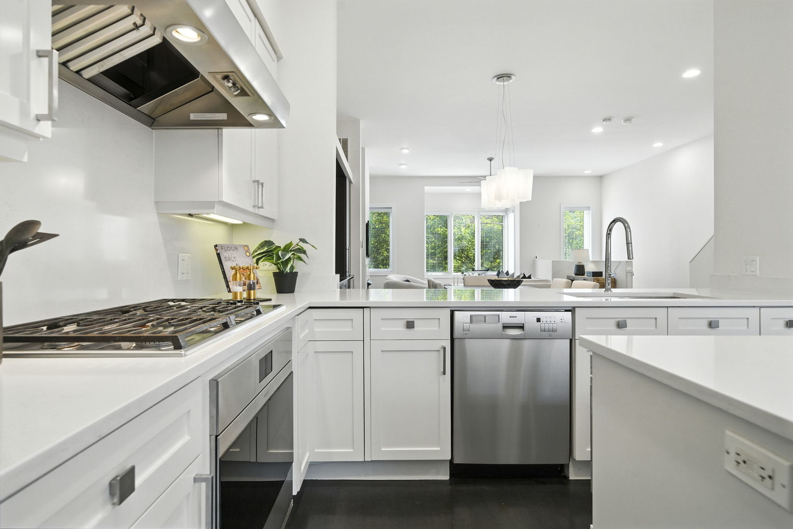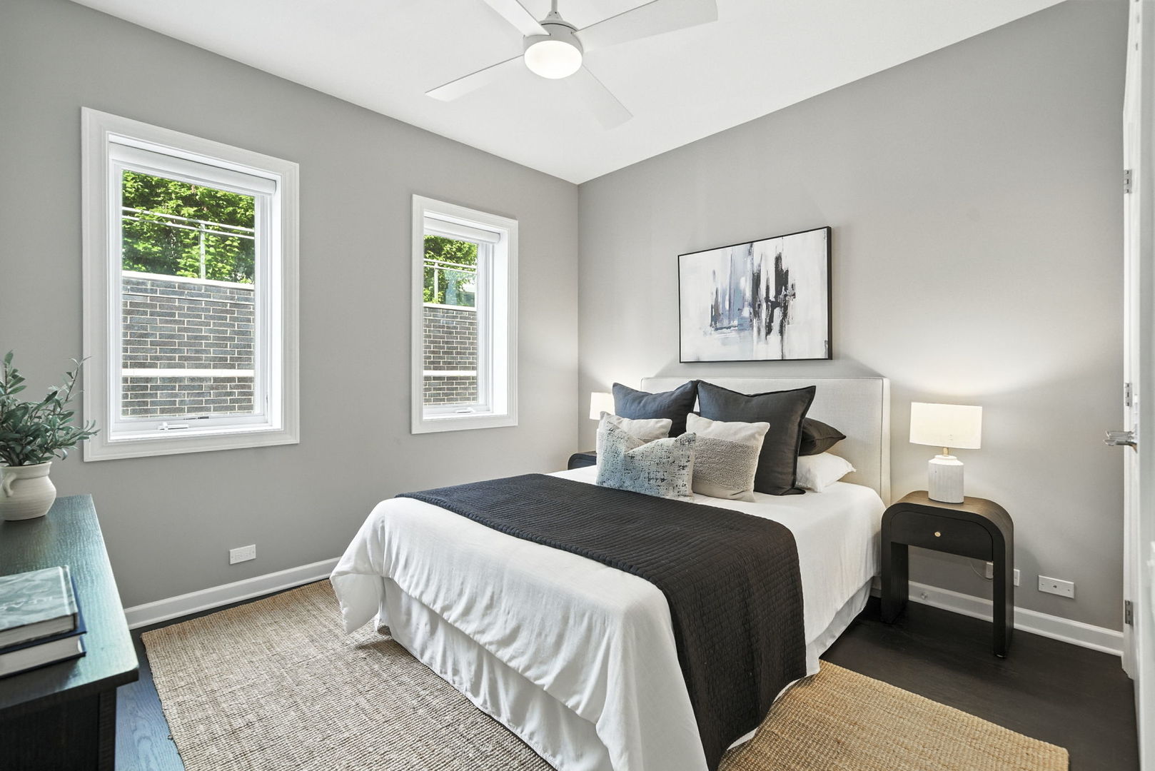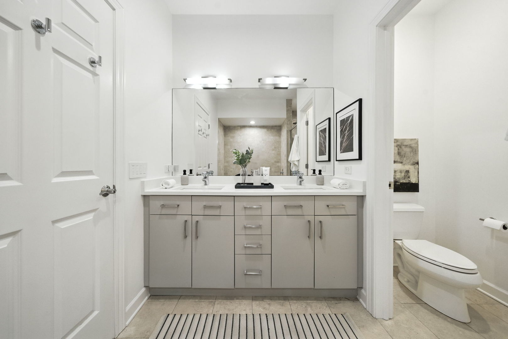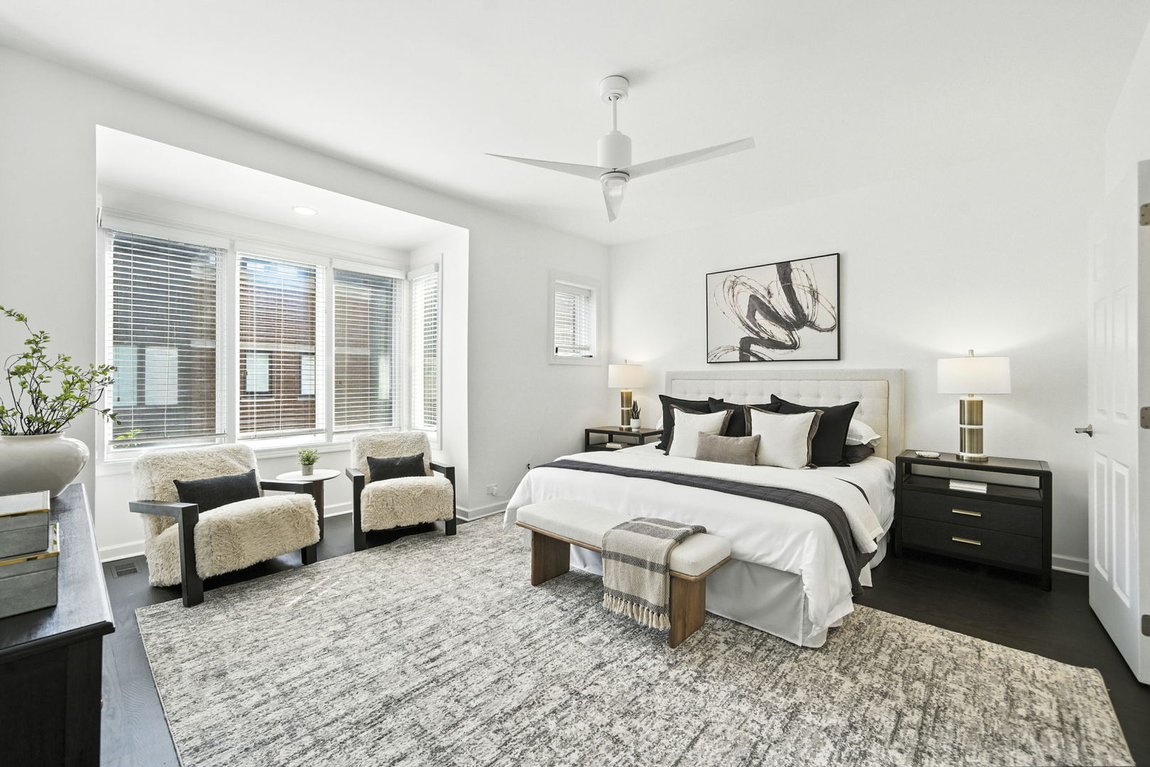 Stunning, sophisticated 3 bedroom plus den, 3 bathroom River North townhome in the coveted City Club gated community! This home is spacious, has a wonderful floor plan and lives like a single family home tucked away in the middle of River North! Thoughtfully updated and light-filled, this 4 level unit boasts stunning hardwood floors and 10 foot ceilings throughout. The ideal open floor plan is an entertainer’s dream featuring a beautifully updated kitchen with 42″ cabinetry, white quartz counters and backsplash, updated Subzero and Wolf stainless steel appliances, gracious island with breakfast bar, adjacent breakfast nook, walk-in pantry and generous sized balcony perfect for grilling with a Coyote gas grill installed and ready to go! Kitchen opens to a large dining space with built-in buffet and bright living room with gas fireplace, overlooking the tree-lined courtyard. The third level has a stunning king-sized primary suite with bay window, elegant custom walk-in closet, and grand en-suite bath with new quartz counter dual vanity, whirlpool bath, and oversized shower. Spacious second bedroom with custom closet and second full bath with quartz counter vanity complete this floor. The top level includes an enormous third bedroom with a giant walk-in closet, easily adaptable to a bedroom + den, along with a third full bath. Gorgeous rooftop terrace with spectacular city views! Lower level makes a perfect office/den/fitness room, with tiled flooring. 2 car attached garage, in-unit w/d and abundant storage throughout. All high-end modern appliances – Subzero/Wolf/Miele in the Kitchen, wine fridges, Samsung washer and dryer. Modern mechanicals, two AC units two Furnaces with smart thermostats. Light switches SmartHome capable. Steps from East Bank Club, Starbucks, Chicago CTA stop, Whole Foods, restaurants, shopping, and everything River North has to offer!