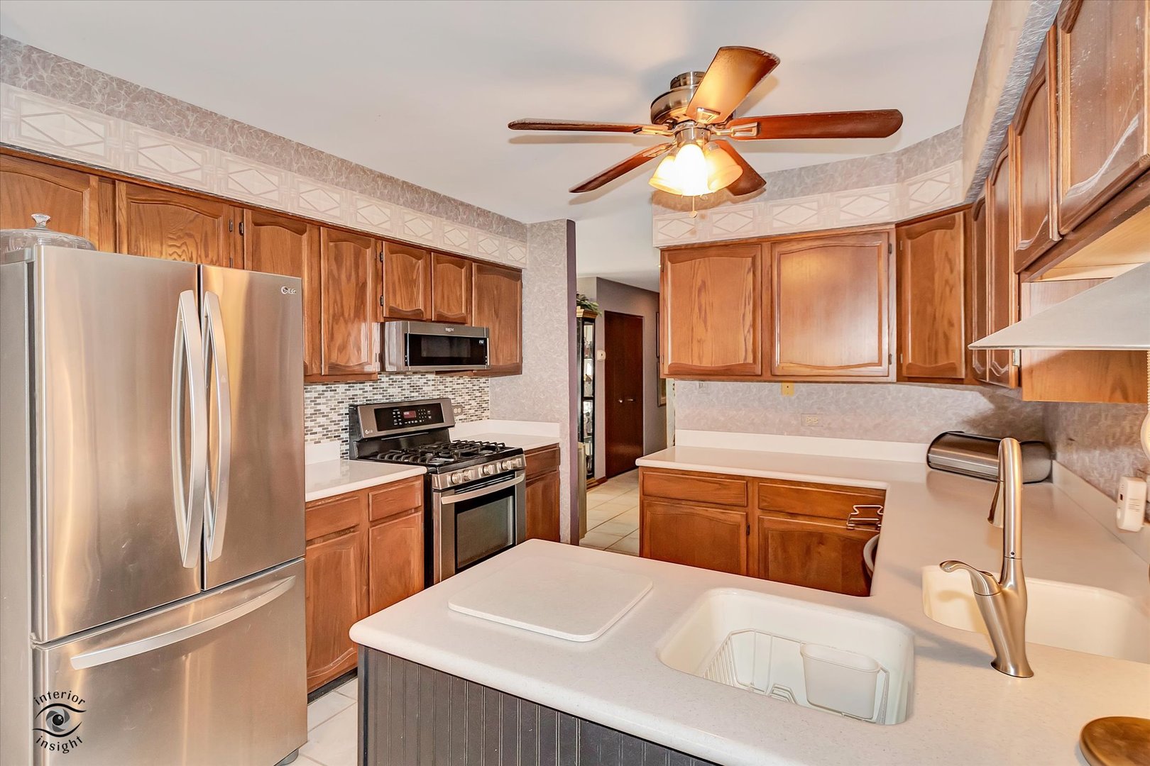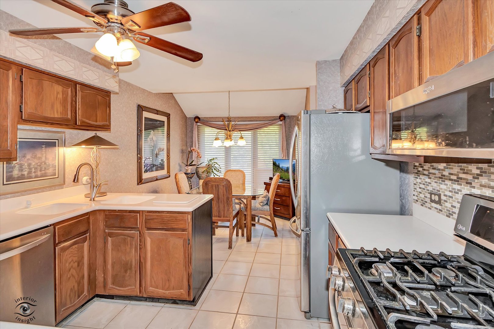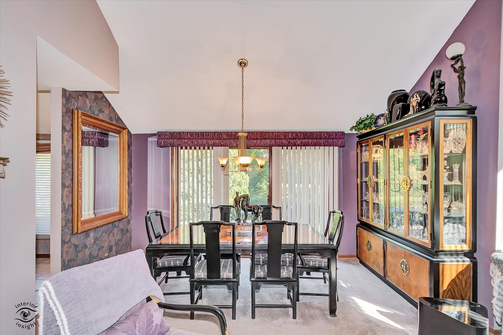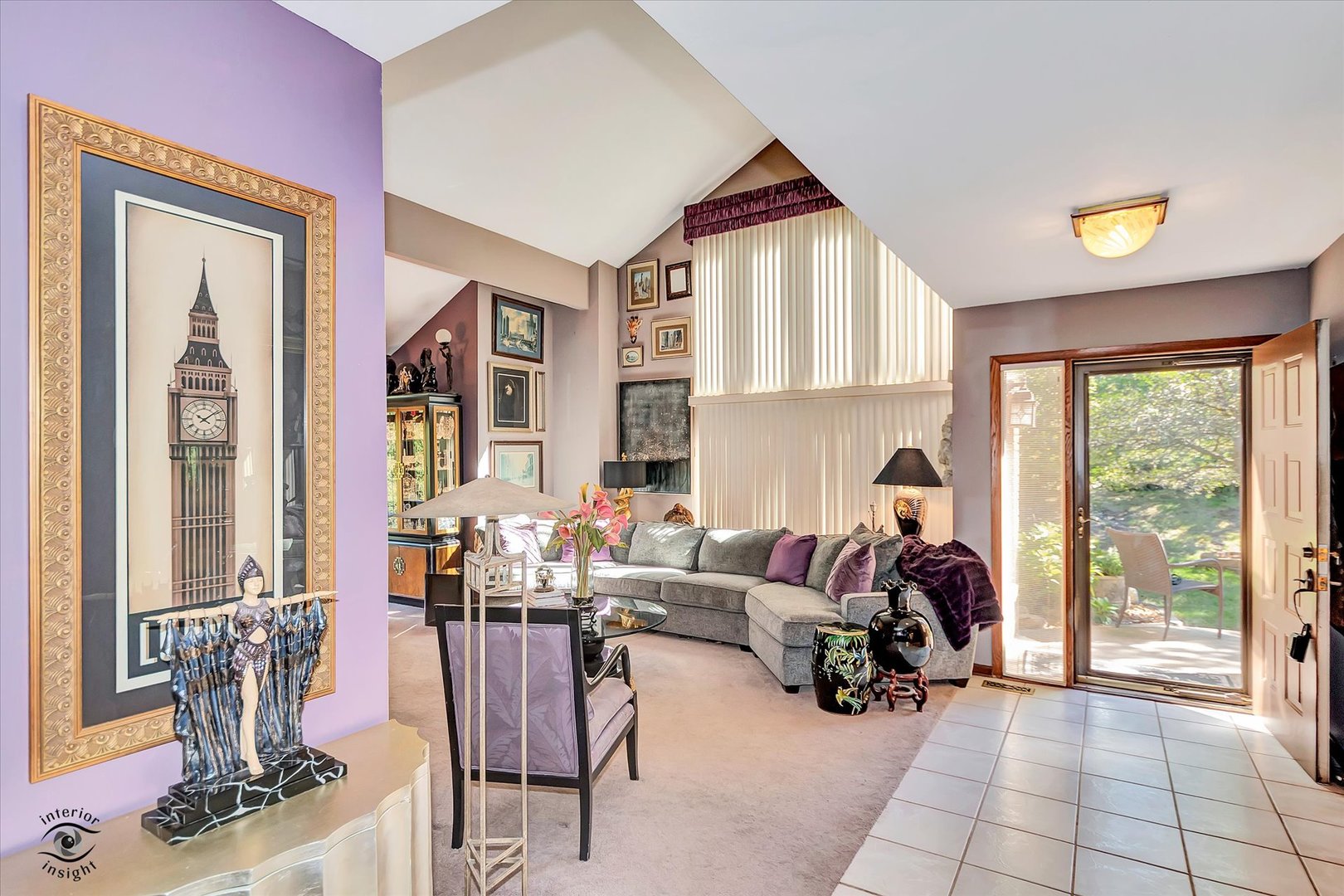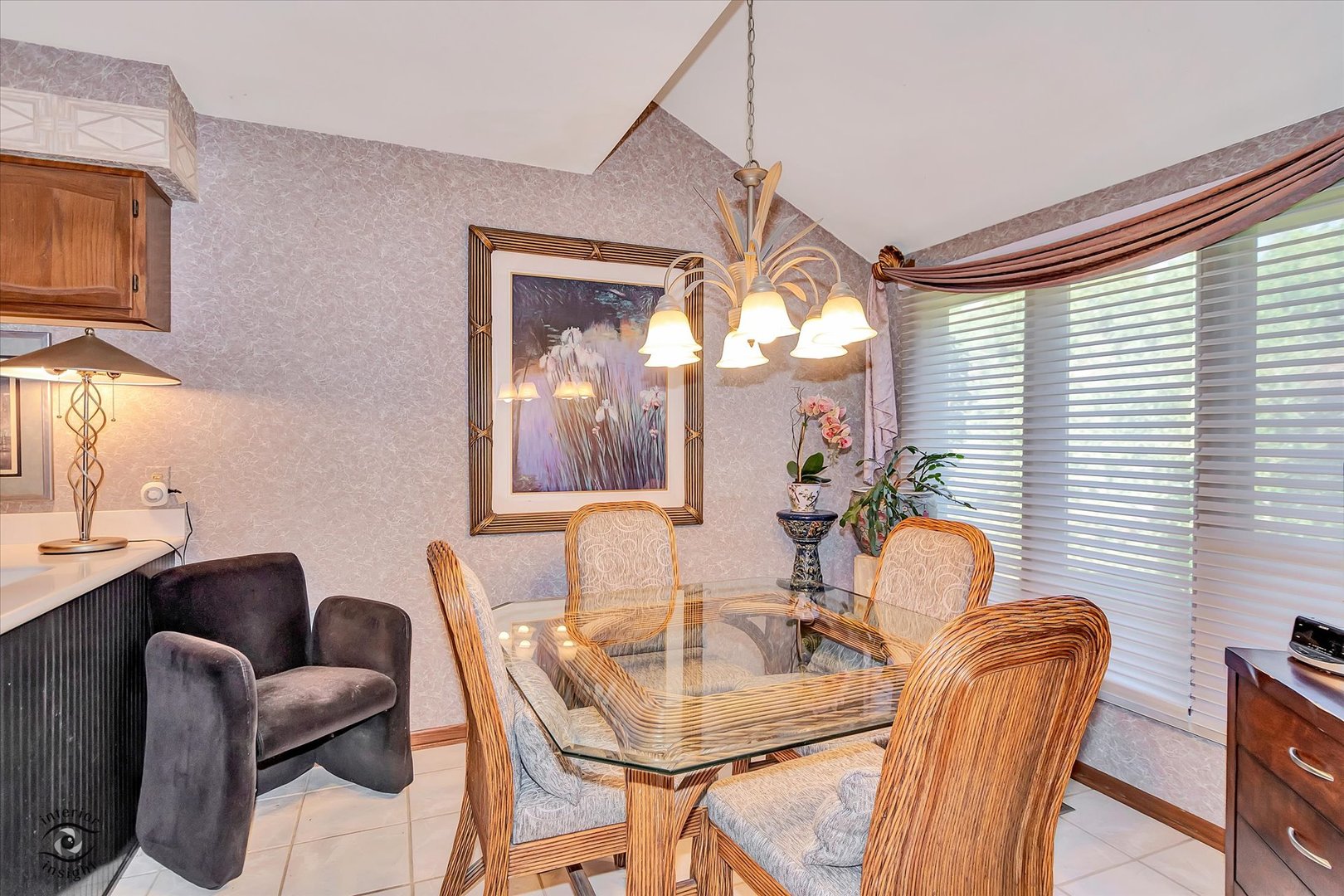 Located in the Baythorne townhome subdivision, which sits just across the street from the HF Campus and walking distance of Parker JHS, the Homewood/Flossmoor business district and train stations. This garden home is tucked away on a cul de sac end unit corner lot. Private premium greenspace to enjoy from patio. Dramatic vaulted ceilings greet you in open concept living room. Main level den could be 3rd bedroom with bath nearby. Owner had great taste in finishes vessel sinks in updated baths, light fixtures. Spaces primary bedroom suite has soaking tub and separate shower. Newer Stainless Steel LG kitchen appliances. Furnace and AC have been replaced