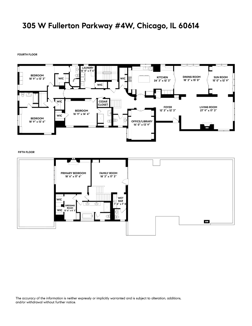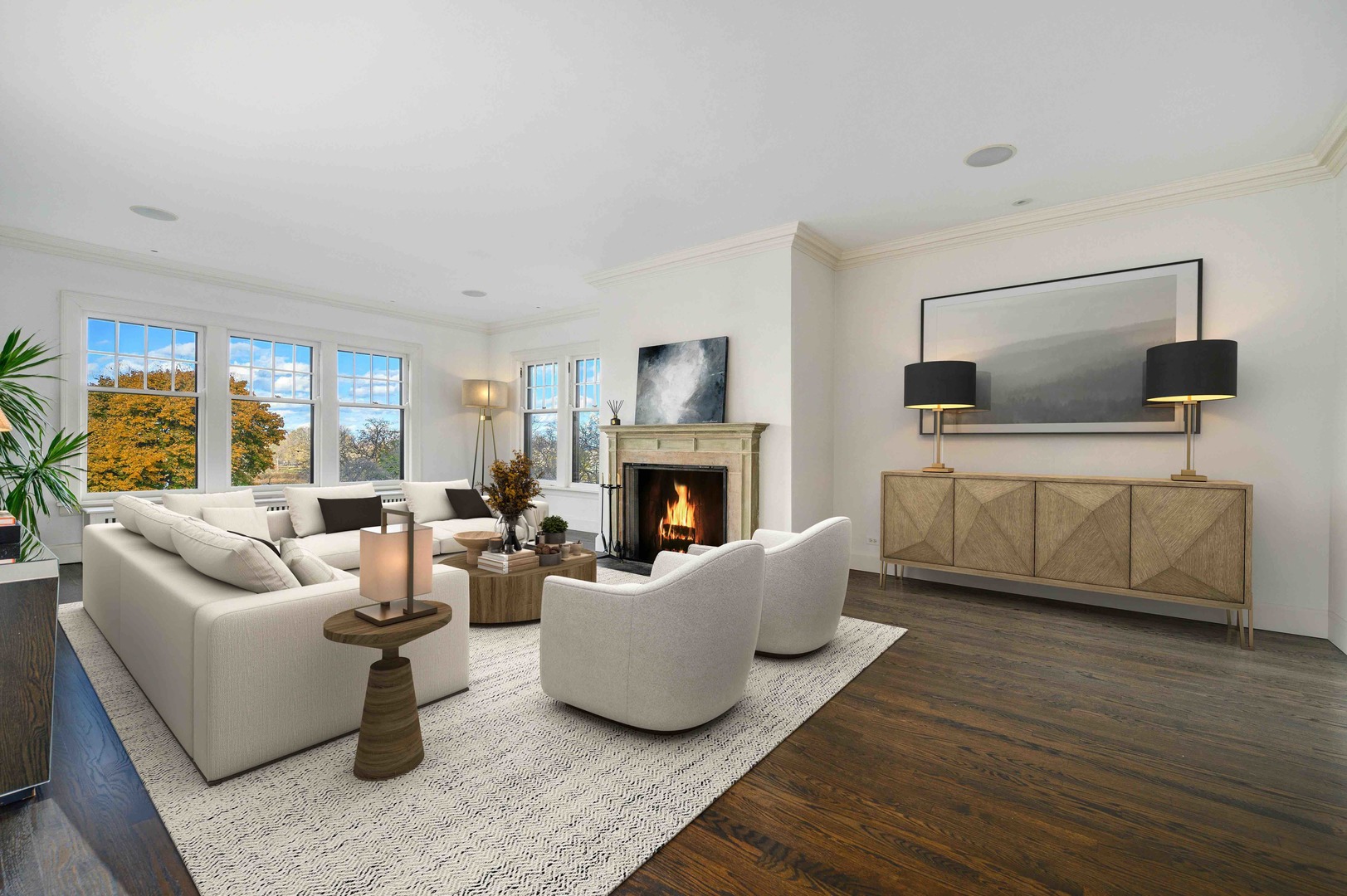 A unique opportunity exists to own this 5400 sf, duplex penthouse at the beloved Aztec, a charming 16-unit vintage condominium. This penthouse was recently gutted to the studs to create a stunning sun-drenched home overlooking Lincoln Park and North Pond. An unusually large and gracious foyer leads to the living room with wood burning fireplace, dining room and breathtaking sun room – all showcasing northeast/west park and lagoon views. The De Giulio kitchen is wonderful for at-home dining and entertaining. Three generous en suite bedrooms are on the first level, with walk-in customized closets. A den/media/guest room is on the main level, just across from the kitchen. A walk-in laundry room houses side-by-side W/D units, utility sink and plenty of storage and workspace. A powder room, large mudroom and cedar closet complete this level. A handsome staircase leads to the private primary suite with soaring 20′ beamed ceilings. The dressing closet/room is outfitted with a pilates trapeze and exercise ladder. The light-filled primary bath offers a deep soaking tub, separate shower and hidden commode. Also on this level is a private entertaining space with skyline views, den with wood burning fireplace, wet bar and 1/2 bath. This space can be easily used as a guest room too. The overall storage in the home is impressive, and includes two large storage rooms in the basement, one with a sink. This pet friendly, professionally managed building also provides a live-in engineer. Amenities include an exercise room and charming courtyard where residents can grill. Seller is providing 1 year of 2 car parking in the garage next door. Credit provided at closing. Located within the highly rated Lincoln Elementary School District and close to several pre-schools, as well as private and parochial schools. Around the corner from the park, the lakefront, Sunshine Playground, Grandmother’s Garden, the Zoo, Nature Museum, Conservatory, Big Apple Market, public transportation and so much more! This home offers an exceptional urban lifestyle. A smart alternative to single-family living with abundant space, security, storage and the allure of a boutique condominium building in one of the city’s most desirable neighborhoods!