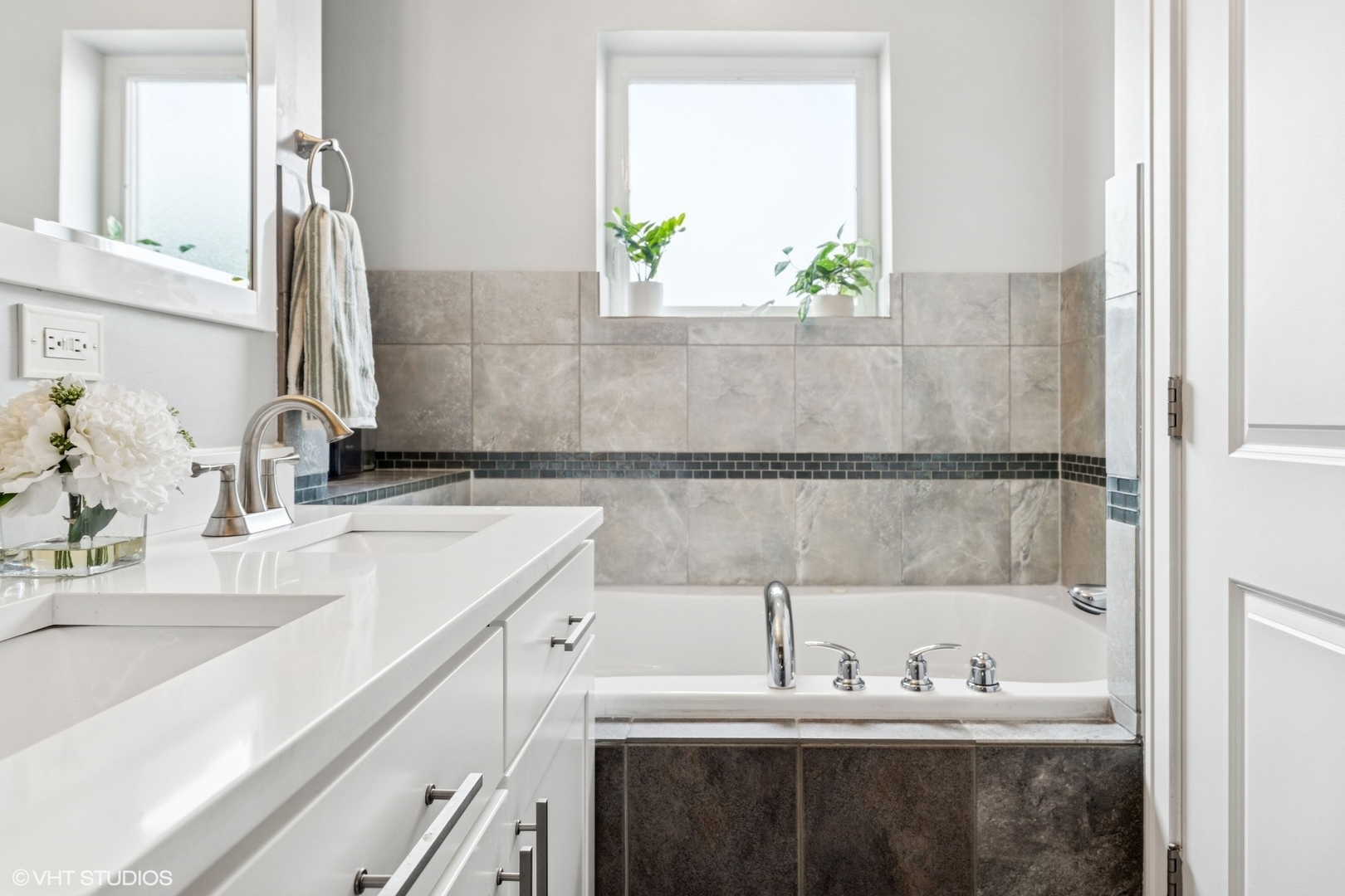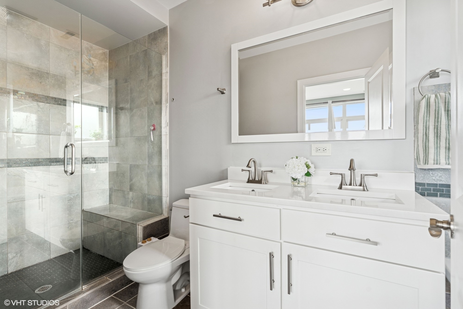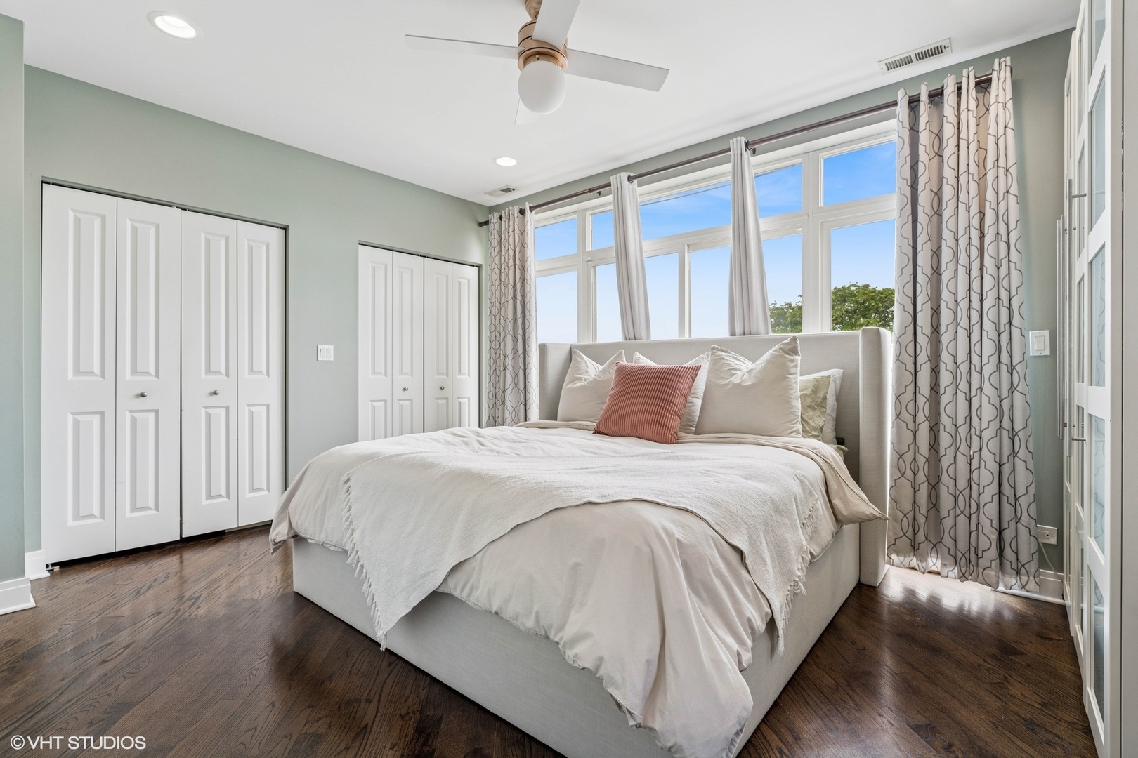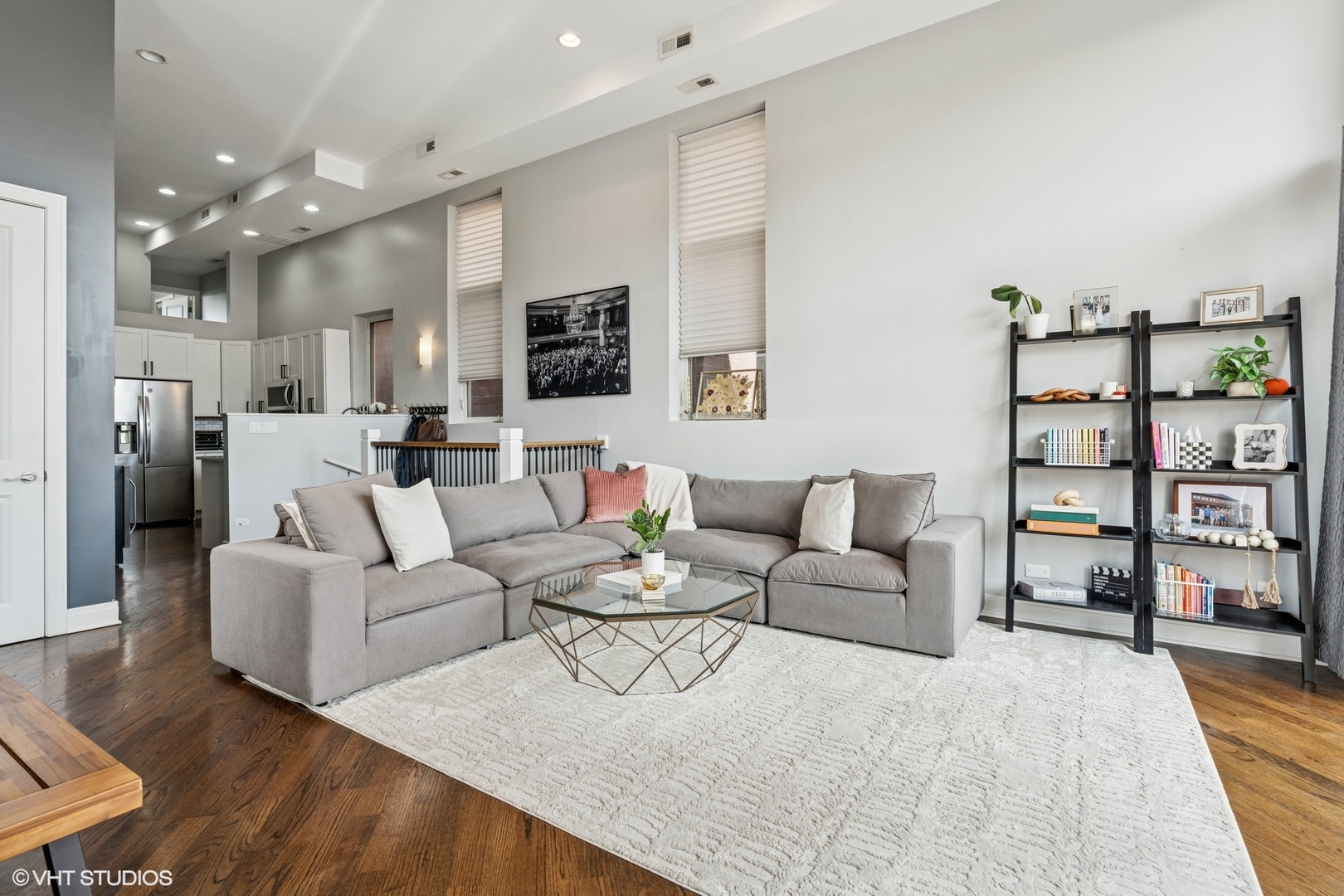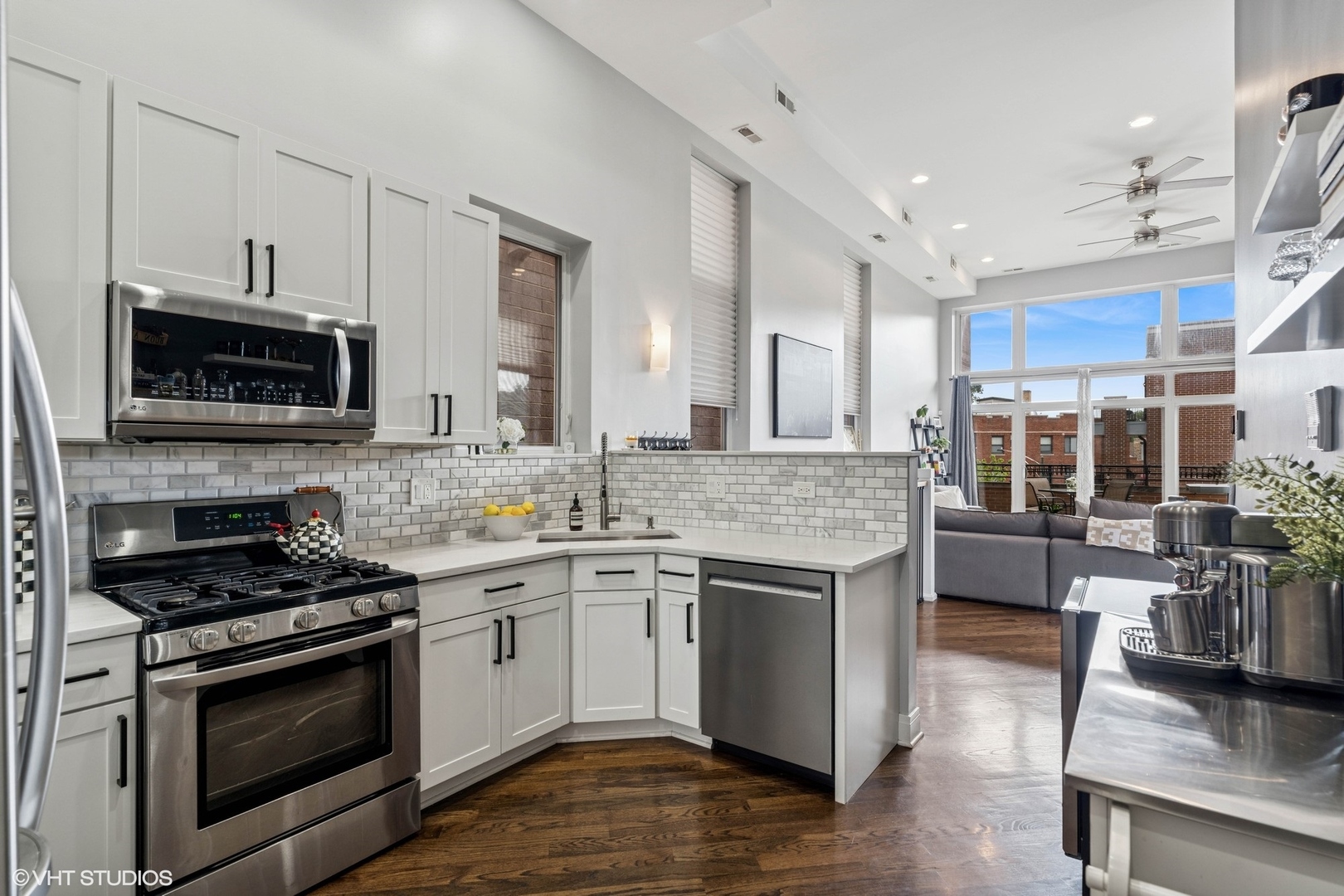 Experience elevated living in this stunning penthouse unit, offering expansive square footage and unmatched privacy. Rich oak hardwood floors in a sophisticated walnut finish flow seamlessly throughout, including all bedrooms. The main living space boasts soaring 15-foot ceilings and a striking modern stone wood-burning fireplace, creating a dramatic and inviting atmosphere. Step outside to your large private balcony-perfect for entertaining or relaxing in style. The chef’s kitchen is freshly upgraded with gleaming white marble quartz countertops, 42-inch cabinetry, LED under-cabinet lighting, and an elegant marble backsplash. The luxurious primary suite features a Juliet balcony, a spa-inspired en suite bath with a walk-in shower, and a soaking tub. Two additional generously sized bedrooms offer complete privacy, along with a well-appointed second bathroom. As a true top-floor unit, enjoy exclusive access to the newly finished rooftop deck with breathtaking views of the Chicago skyline. Garage parking is included. Situated in West Roscoe Village,close to premier dining, the West 312 Riverrrun path, vibrant parks, shopping and more. Don’t miss this amazing opportunity!