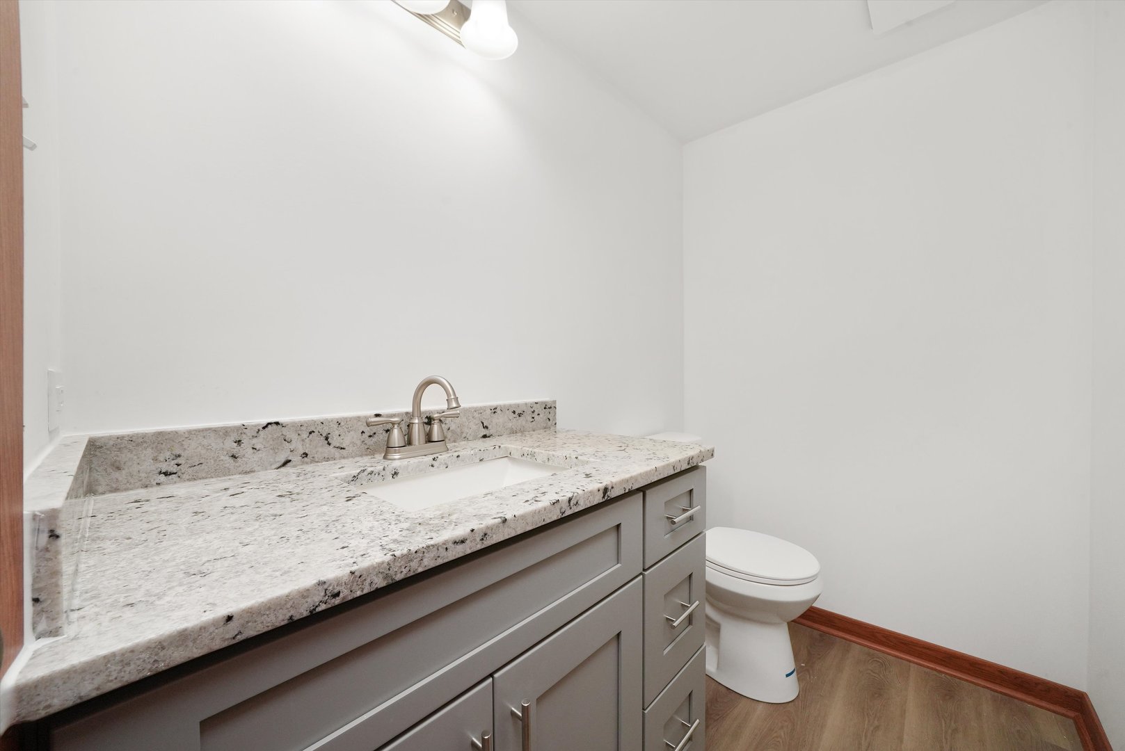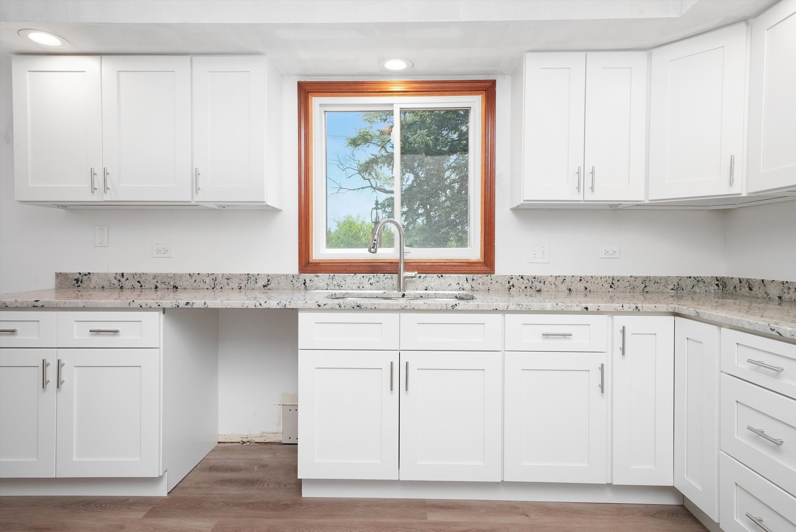 2300 sq ft split-level home features 3 bedrooms and 2.5 baths. Brand new white shaker cabinets and granite countertops. New roof. New flooring on both levels. Remodeled 1/2 bath on 1st floor. Full unfinished basement. SELLER DOES NOT PROVIDE SURVEY. SOLD AS-IS.