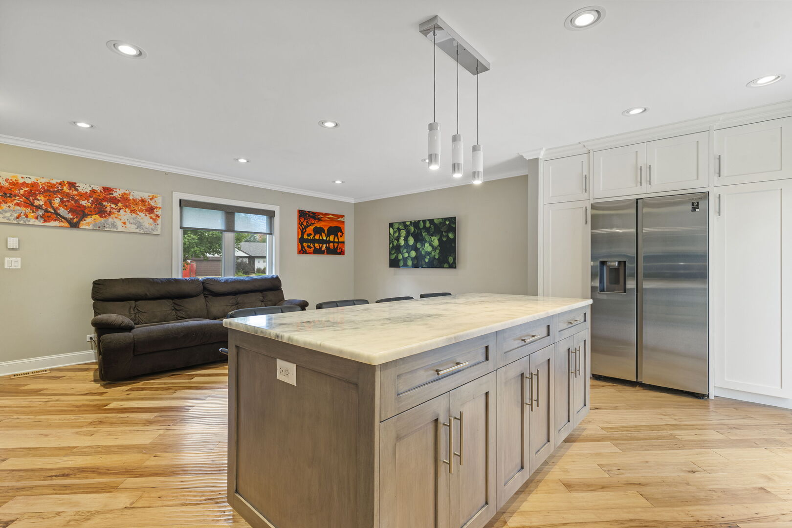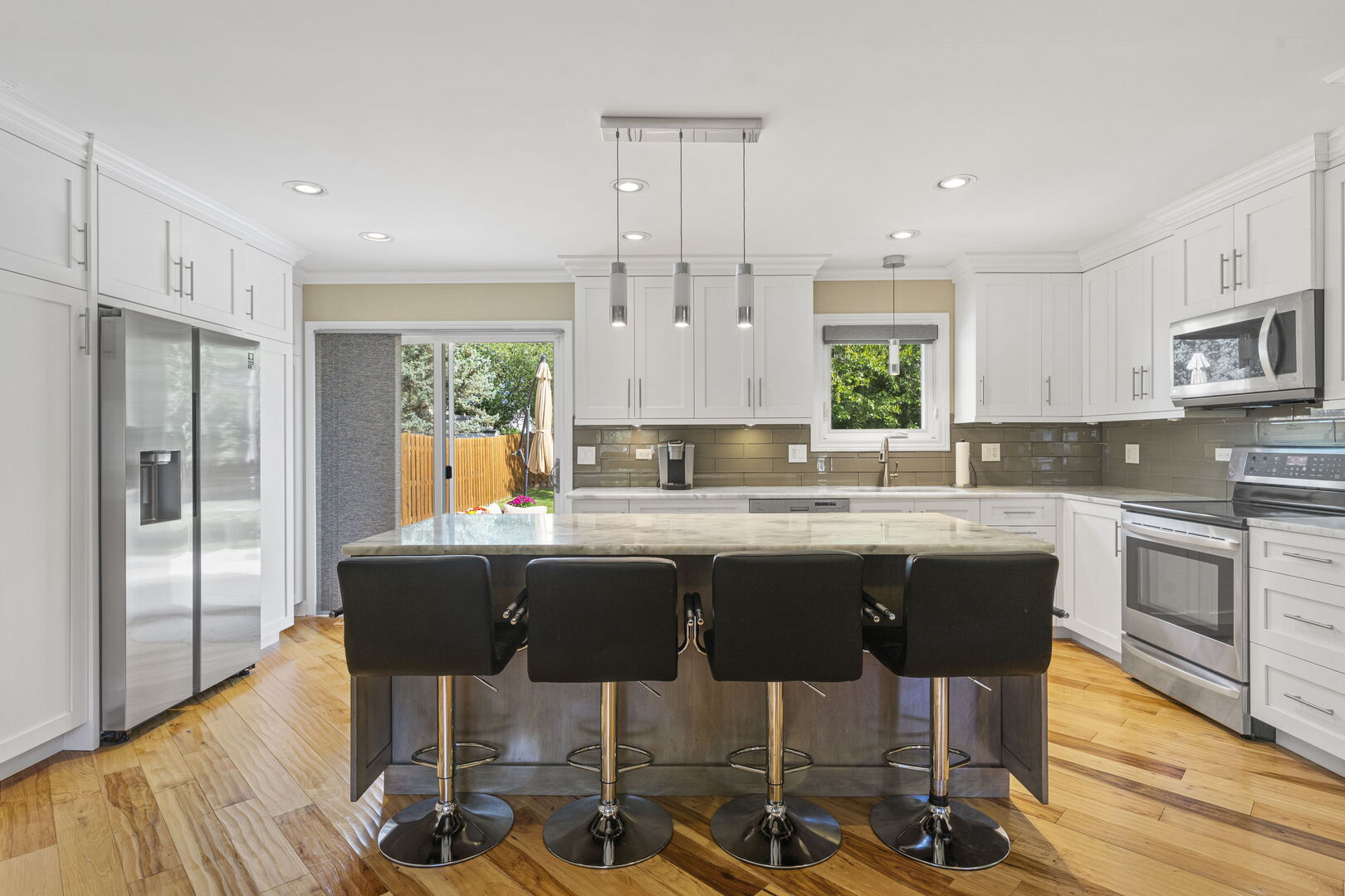 Did someone say, fenced in big back yard? New open kitchen? New doors and floors? New backyard patio, freshly poured concrete? Or a NEW HVAC SYSTEM?? Transferred owners will miss their home with so much newness! Is newness a word?Located in a quiet tree-lined street, this lovely updated home has so much to offer! The property features updated amenities, including a new furnace and air conditioning system in 2025. New bathrooms, natural hand scraped hickory flooring on main level, an open floor plan with recessed lighting on dimmers for setting the perfect mood and an automatic gas start fireplace that warms the lower level on cozy nights. The new kitchen is stunning, the 8X4 quartzite island with custom pendants, storage and seating for 4 is open on the main level. Easy to host friends and family in this home. There are tons of upper and lower-level white custom cabinets and plenty of counter space for prepping family meals. One entire wall of double stacked cabinets makes this the perfect pantry. The upper level of this home offers three large bedrooms with customized closets and a new hall bath with an extra deep tub with bubble jets. Neutral decor is found inside and out. The home is situated in a quiet cul-de-sac location and boasts a large, 6 FT fenced-in yard with a new concrete patio. Additional custom lighting is found here for entertaining late into the evening. The property benefits from the local school district, which includes Hawthorn Schools and Vernon Hills High School. Walk to parks, library, pools and water parks and all neighborhood elementary schools. Updates throughout the home include a new roof, new concrete patio, new garage door with touch pad and door opener. New windows, as well as new siding and doors provide a well-maintained and modern living environment. This Home Is Move in Ready.