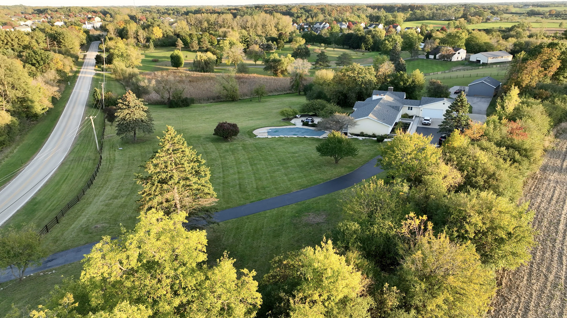 This magical home offers not just a residence but an oasis of serenity. Gracefully perched atop a hilltop, this magnificent 6,000 square foot home commands breath taking views across 6.5 acres of pristine land with an unparalleled blend of nature and tranquility. Step inside this 4 bedroom, 3.5 bath residence and discover a world where every detail was meticulously planned. From the carefully chosen tile work to light-filled spaces that invite nature indoors, each room frames an ever-changing tapestry of stunning vistas. The tastefully appointed primary suite, complete with an expansive sitting area, invites you to unwind in unparalleled comfort, while two separate family rooms, a private home office, and a gym ensures that every lifestyle need is accommodated. For those who revel in outdoor living, the property boasts extensive hardscaping and multiple decks; perfect for al fresco entertaining while a swimming pool beckons on hot summer days. An attached three-car heated garage, and an additional heated outbuilding provide 6 indoor parking spaces. The properties unincorporated AG Zoning facilitates endless possibilities for hobby farming or equestrian passions and the freedom to develop the property as your heart desires. A home is many things, but at its core, it’s a place where the stories of our lives unfold. It’s where we laugh, connect, and celebrate this journey called life – it’s a place where we celebrate all that is possible. Welcome Home! Note: AG zoned & tax exempt. Explore the full story of the home-it’s extensive renovations, acreage, and thoughtfully planned improvements-by visiting the official property website.