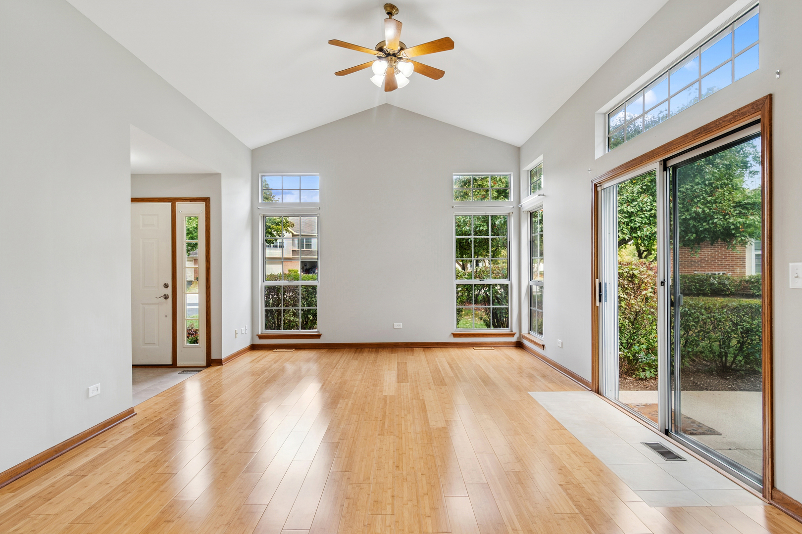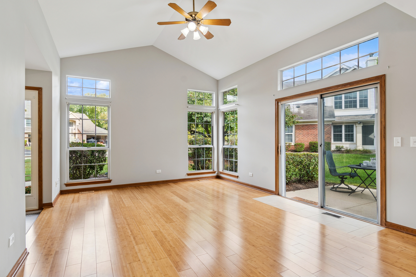 Now’s your chance to own a corner end unit in the sought-after Maple Hill subdivision! Maintenance-free living awaits in this ground-level, ranch style home featuring a bright and open floor plan. The entire home has been freshly painted in today’s colors, making it move-in ready! The living and dining areas showcase new bamboo wood flooring, vaulted ceilings and transom windows, filling the space with natural light. The foyer, kitchen and dining area feature new stylish premium vinyl flooring. The kitchen offers stainless steel appliances, a spacious breakfast nook, and a large walk-in pantry to keep everything organized. The primary bedroom easily fits oversized furniture and features a walk-in closet with ample space for storage. Newly renovated private bath with a comfort-height vanity, updated lighting, shower with ceramic tile surround and trendy clear glass shower door. A full hallway bathroom is perfectly located near the second bedroom, with a convenient linen closet nearby for extra storage. The laundry room offers plenty of space for folding, hanging, and organizing. The 2 car garage includes an interior access door for easy grocery unloading and extra storage. Relax on the private patio and take in the serene, natural surroundings. Living in Maple Hill means access to fantastic amenities, including a community pool and clubhouse-ideal for summer fun and social gatherings. Best of all, lawn care, snow removal, and exterior maintenance are all taken care of for you! If you are looking for ranch style end unit and want to live in one of Warrenville’s most peaceful and well-maintained communities — Look no further. Located just minutes from Kress Creek Farms Park, Blackwell Forest Preserve, and St. James Farm Forest Preserve, you’ll have endless opportunities for hiking, biking, fishing, and more. Plus, you’re close to shopping, dining, entertainment, and I-88 for an easy commute.