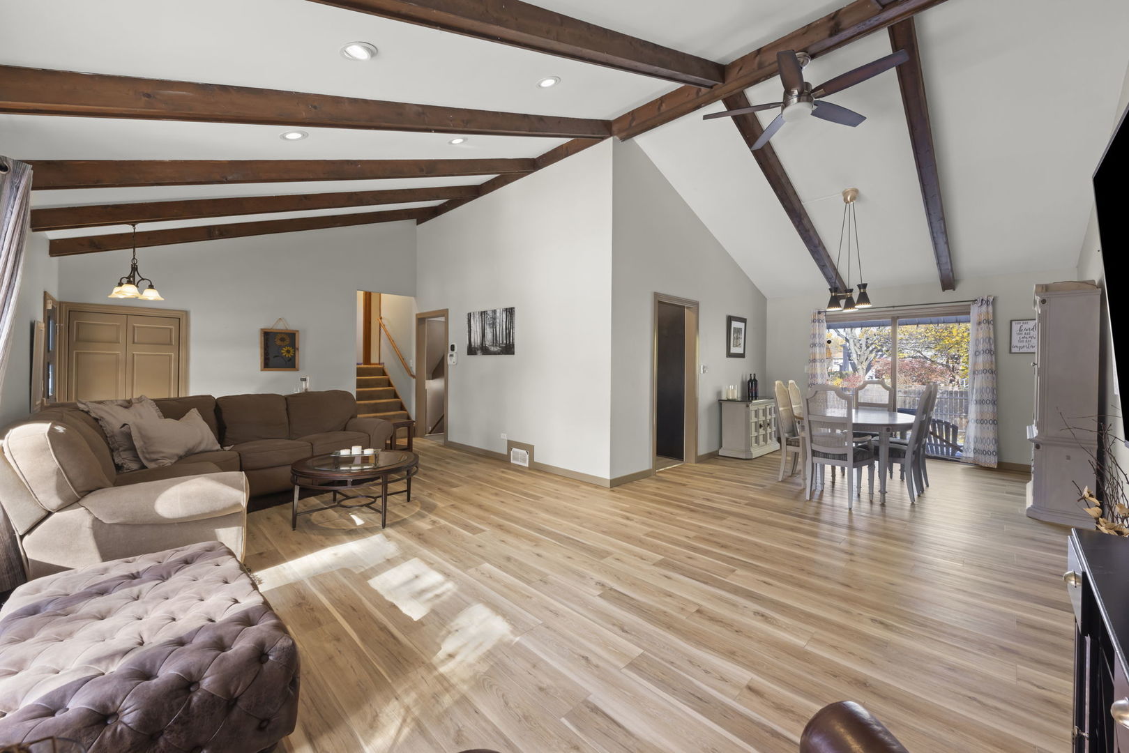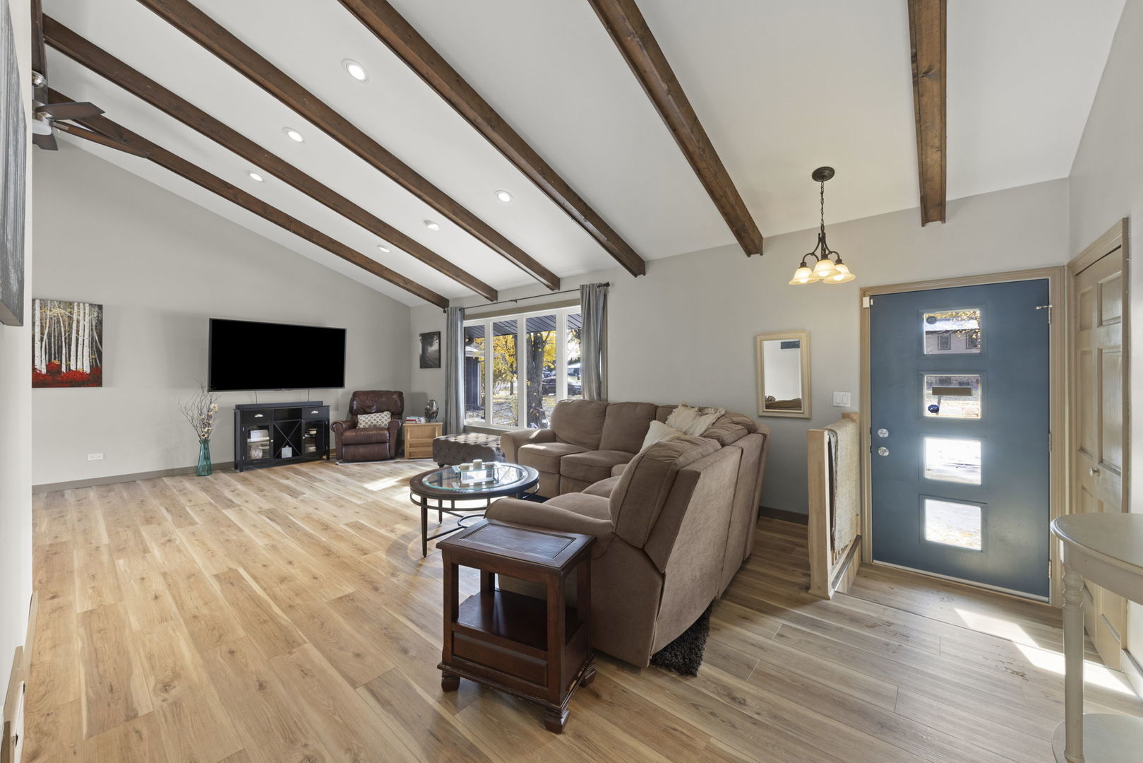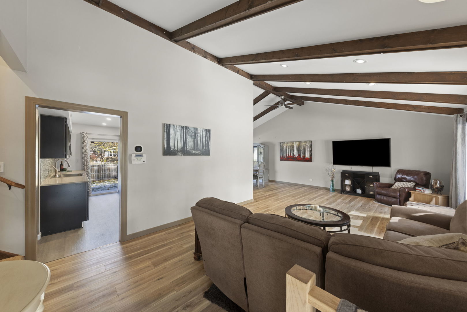 From the moment you arrive, this inviting tri-level home feels like the kind of place where memories are made. Nestled on a spacious lot surrounded by winding streets and mature trees, it offers the perfect balance of comfort, character, and everyday practicality. Step inside and you’ll be greeted by vaulted wood-beam ceilings that add warmth and personality to the open living space. The main level flows easily into a bright dining area and a beautifully updated kitchen – featuring an abundance of shaker-style cabinetry, a stylish glass tile backsplash, and stainless steel appliances. With plenty of storage and workspace, it’s a kitchen designed for both cooking and connection. Downstairs, the cozy family room is just right for movie nights, game days, or curling up with a good book. A dedicated office (added in 2014) provides a quiet spot for work or creative projects, and the large laundry room adds even more storage along with a convenient half bath. Upstairs, you’ll find roomy bedrooms with generous closets, including an owner’s suite with its own private bath and a full wall of storage. Outside, a shady backyard surrounded by mature trees offers space to relax, garden, or host weekend get-togethers on the patio. A large storage shed keeps everything neatly tucked away. With thoughtful updates like a newer roof with leaf guard gutters (2015), a Feldco front door (2016), and modern ceiling fans (2016), this home has been lovingly maintained and is ready for its next chapter. Located just minutes from Longwood Elementary, Route 59, and I-88 – with shopping, dining, and the Illinois Prairie Path all nearby – it’s easy to see why this neighborhood is so loved. Full of warmth, updates, and timeless charm, this home is ready to welcome you in.