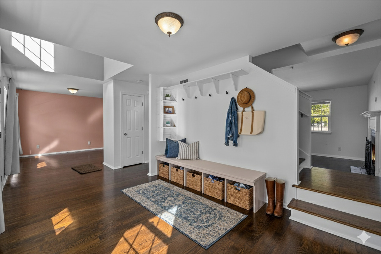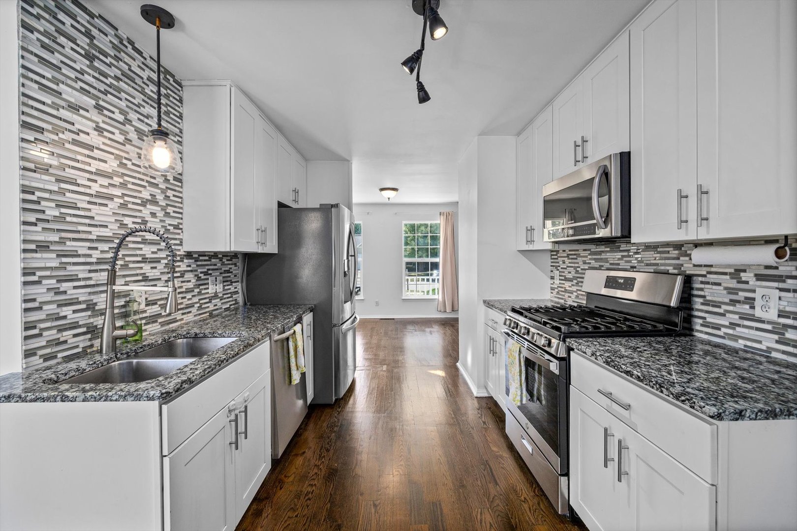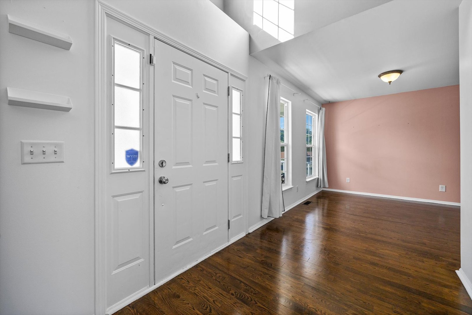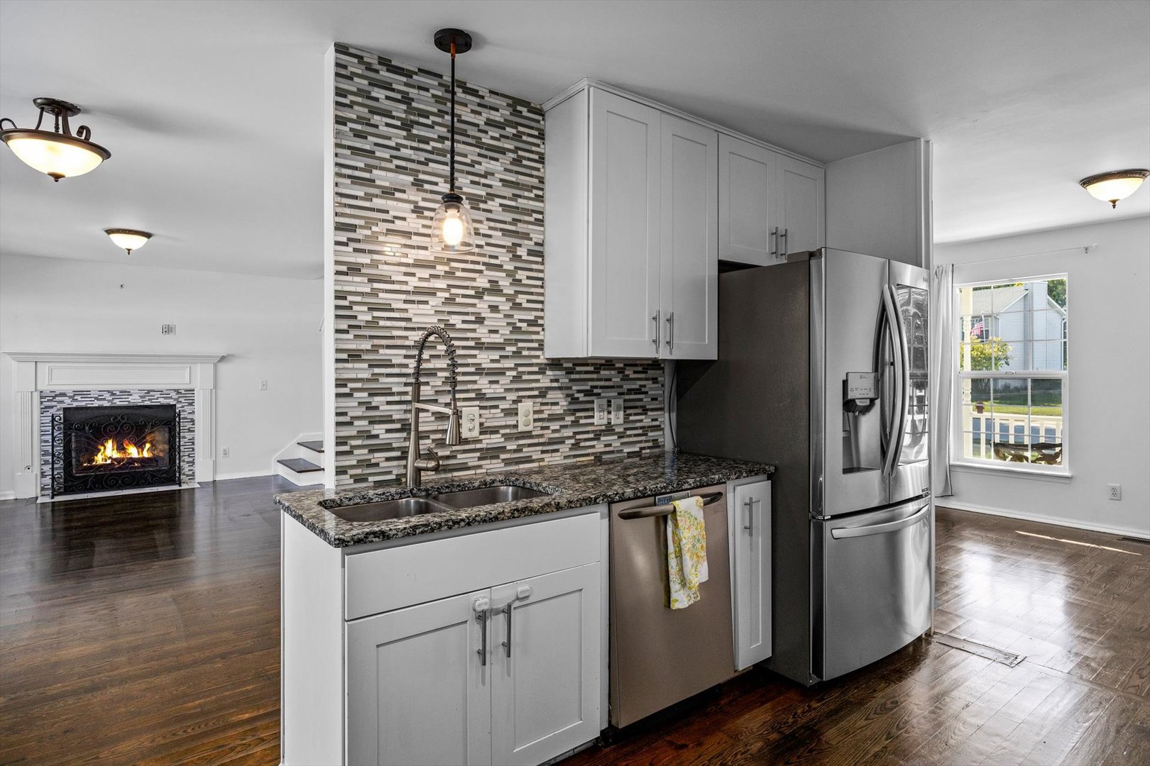 Welcome to this beautifully updated 3-bedroom, 3.1-bath home situated on a large corner lot that backs directly to a scenic bike and walking trail. Enjoy outdoor living with a welcoming front porch, spacious deck, fully fenced yard, and storage shed for extra convenience. Inside, hardwood floors and abundant natural light create a warm and inviting atmosphere. The living room features a gas-start, wood-burning fireplace, perfect for cozy evenings. The updated kitchen boasts granite counters, new appliances, and a fresh, modern feel, while the bathrooms have also been thoughtfully updated. Upstairs, the expansive primary suite offers a walk-in closet, Jacuzzi tub, and separate shower. All bedrooms have new carpet for added comfort. Additional features include a 3-car garage, 200-amp panel, Nest thermostat, radon passive system, and mechanical updates including a new roof (2024), ejector pump (2022) and water heater (2019). With no HOA, this home offers both privacy and flexibility in a prime location near trails and nature.