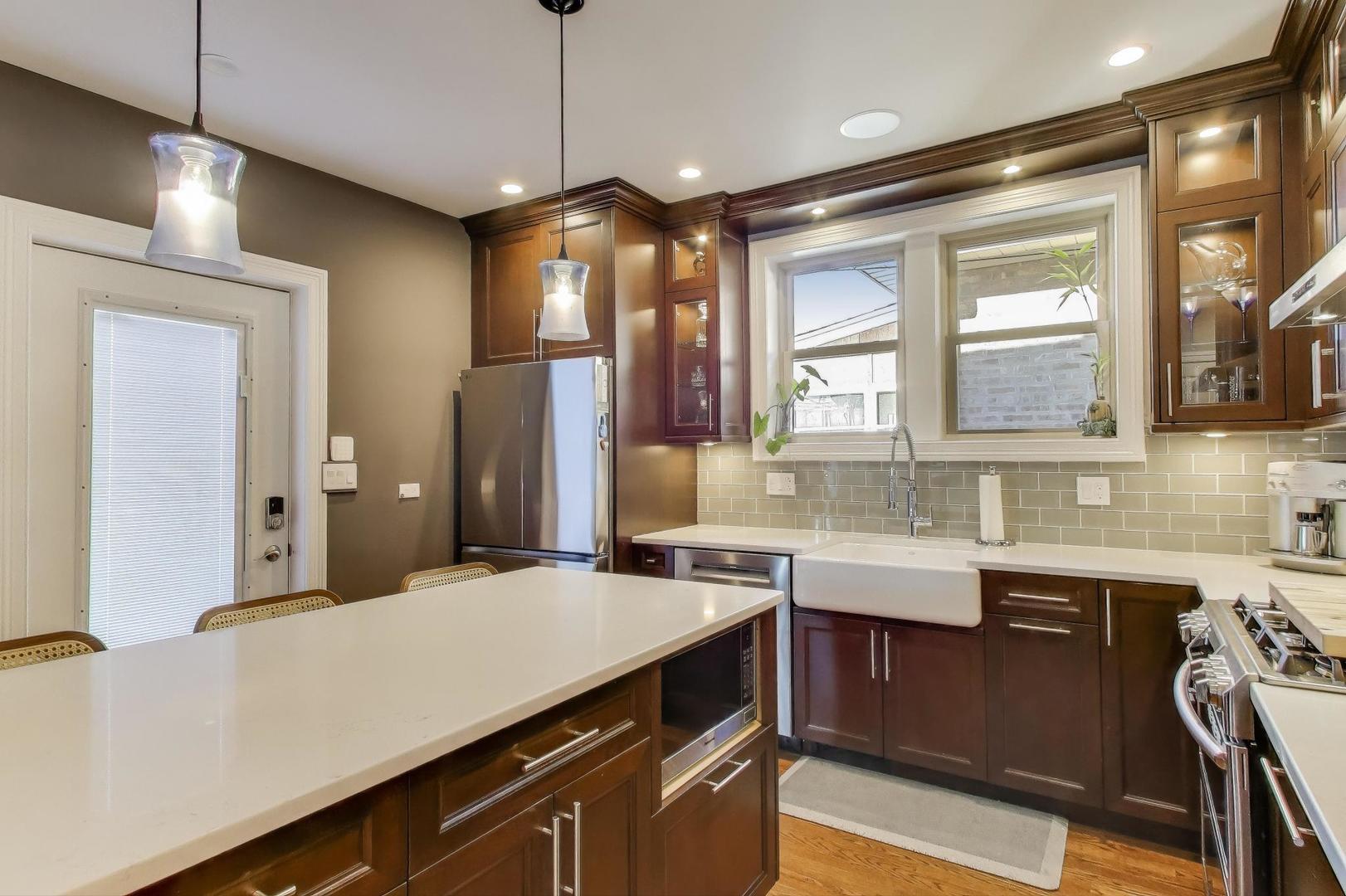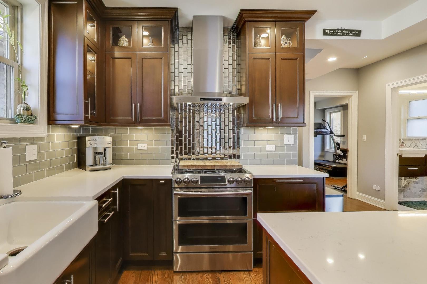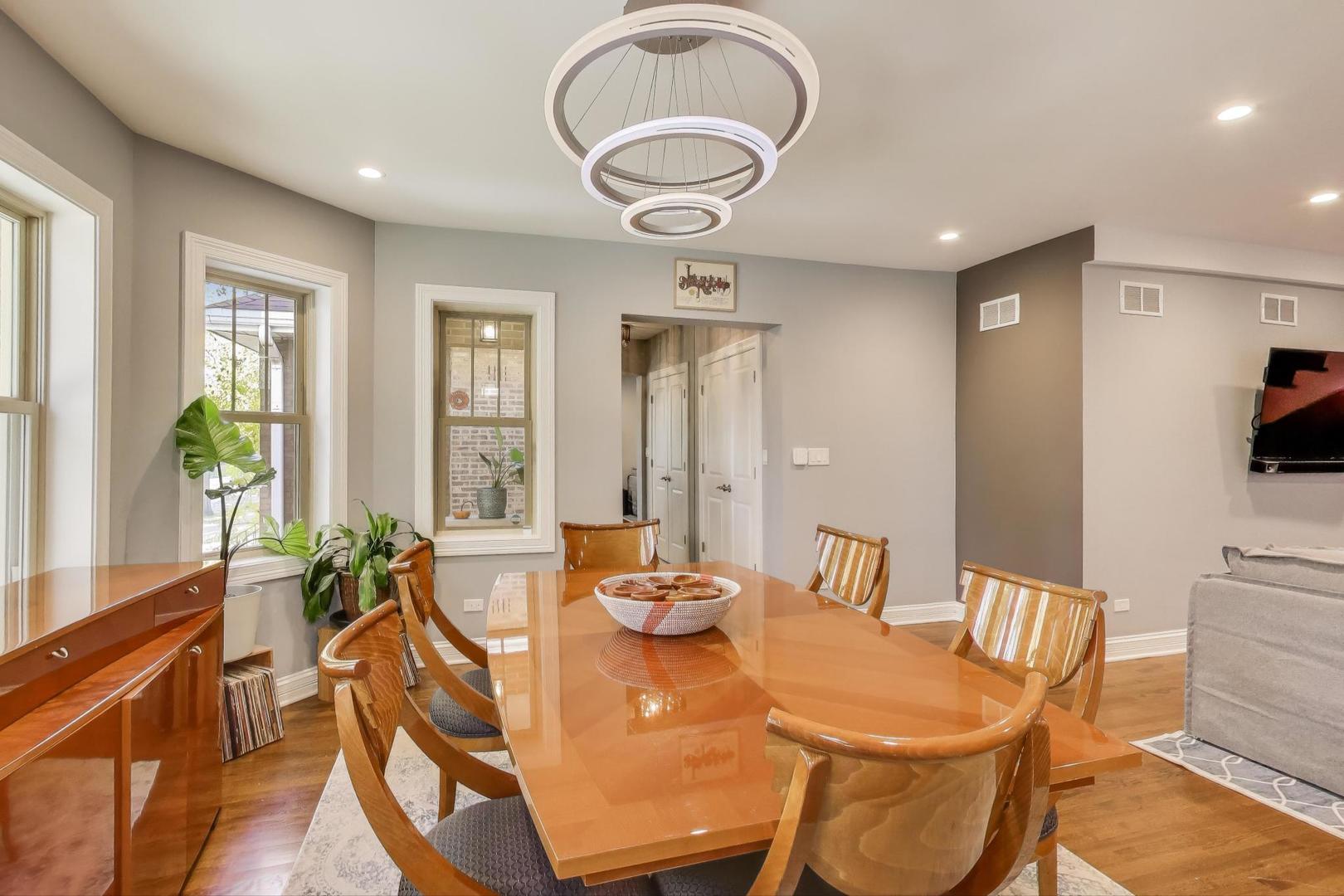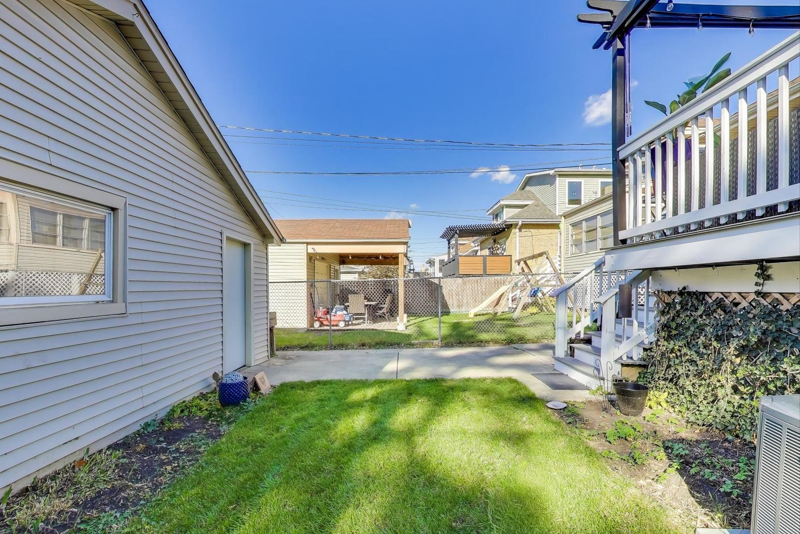 Welcome to 3108 N 78th Avenue – a beautifully reimagined, fully renovated classic brick bungalow in the heart of Elmwood Park. Taken down to the brick and rebuilt in 2017, this 4 bed, 3 bath home blends timeless charm with smart, thoughtful upgrades throughout. Every major system was redone: plumbing, electric, windows, dual-zone HVAC, kitchen, baths, plus a reconfigured floor plan with a relocated front staircase to maximize flow and functionality. Step inside to a bright main level featuring a spacious living room, a sleek modern kitchen, a full bath, and a highly desirable main-floor bedroom perfect for guests or home office flexibility. Upstairs you’ll find two generous bedrooms; primary with beautifully updated en-suite full bath. The fully finished basement expands your lifestyle with a large recreation/living area, a private bedroom, a full bath, a dedicated laundry room with sink and extra refrigerator, and 2 massive storage rooms rarely found in homes of this era. Outside, enjoy a newly built Trex deck with a pergola & sun shade, and a yard ready for summer nights and effortless entertaining. Additional highlights include: new fridge and dishwasher (2024), whole-home sound wiring, fiber plus Cat5/Cat6e wiring, overhead sewer with check valve, and a turnkey renovation that takes all the heavy lifting off your plate. Situated on a quiet, tree-lined block just steps from Elmwood Park’s beloved restaurant row, top-rated local parks, and the Metra station. Minutes to grocery stores, coffee shops, the library, the new Elmwood Park Community Center, and the village’s year-round events. Easy access to Harlem, North Ave, and 90 for quick commutes in all directions. This is the rare Elmwood Park bungalow that delivers space, quality, modern updates, and a walkable lifestyle. Come see it for yourself.