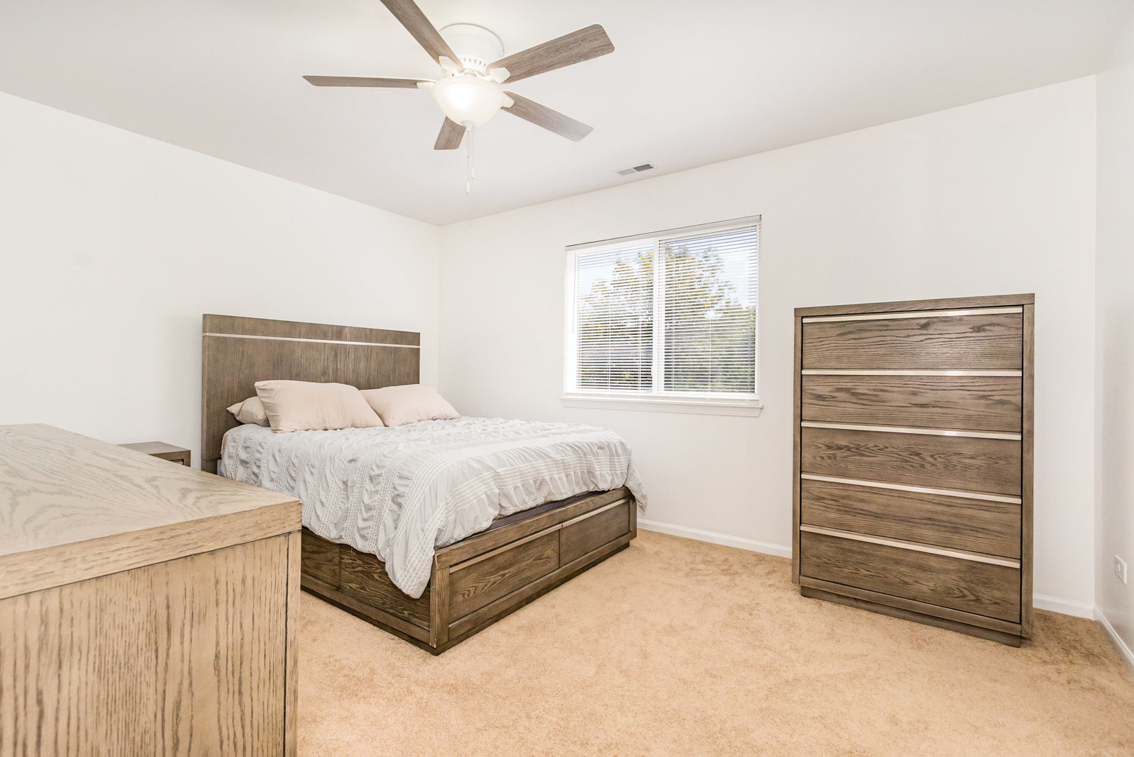 This beautifully updated and move-in ready duplex has everything you’ve been looking for! Featuring 2 bedrooms, a loft (easily converted into a 3rd bedroom), and 2.5 bathrooms, this home offers the perfect blend of comfort and style. Step inside to find an open and airy floor plan with luxury vinyl plank flooring throughout the first floor. The modern kitchen boasts painted cabinets, corian countertops, and stainless steel appliances, opening into a spacious family room and dining area-ideal for gathering with family and friends. Upstairs, enjoy the convenience of a 2nd-floor laundry with newer washer and dryer. The primary suite is a true retreat with a walk-in closet and an updated master bath. The loft area offers the perfect flex space for a home office, playroom, or an easy conversion into a 3rd bedroom. The full basement gives you plenty of room for storage or the potential to create even more living space. Step outside to your private backyard oasis with a patio, mature trees, and a brand-new privacy fence-perfect for relaxing or entertaining. This home has been thoughtfully updated with new – kitchen, roof, gutters, paint, flooring, window treatments, bathrooms, light fixtures, radon mitigation system, insulated garage, shed, and more-leaving nothing to do but move in and enjoy! HVAC system was cleaned/inspected in 2024. Low annual association fee. All part of the highly acclaimed Plainfield District 202 schools, and just minutes to I-55, Louis Joliet Mall, and endless dining options-this home truly has it all.