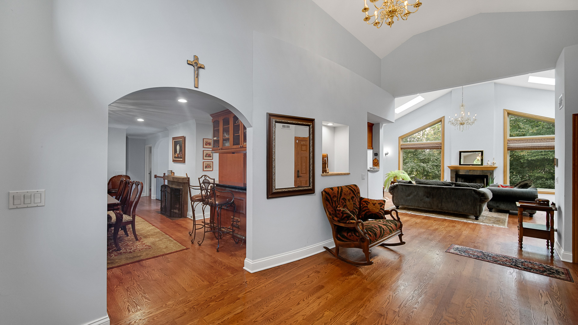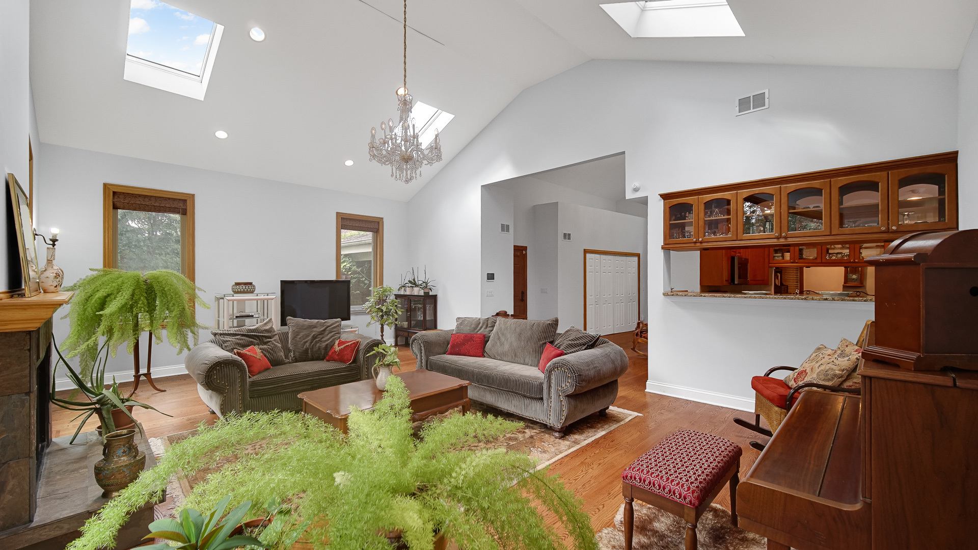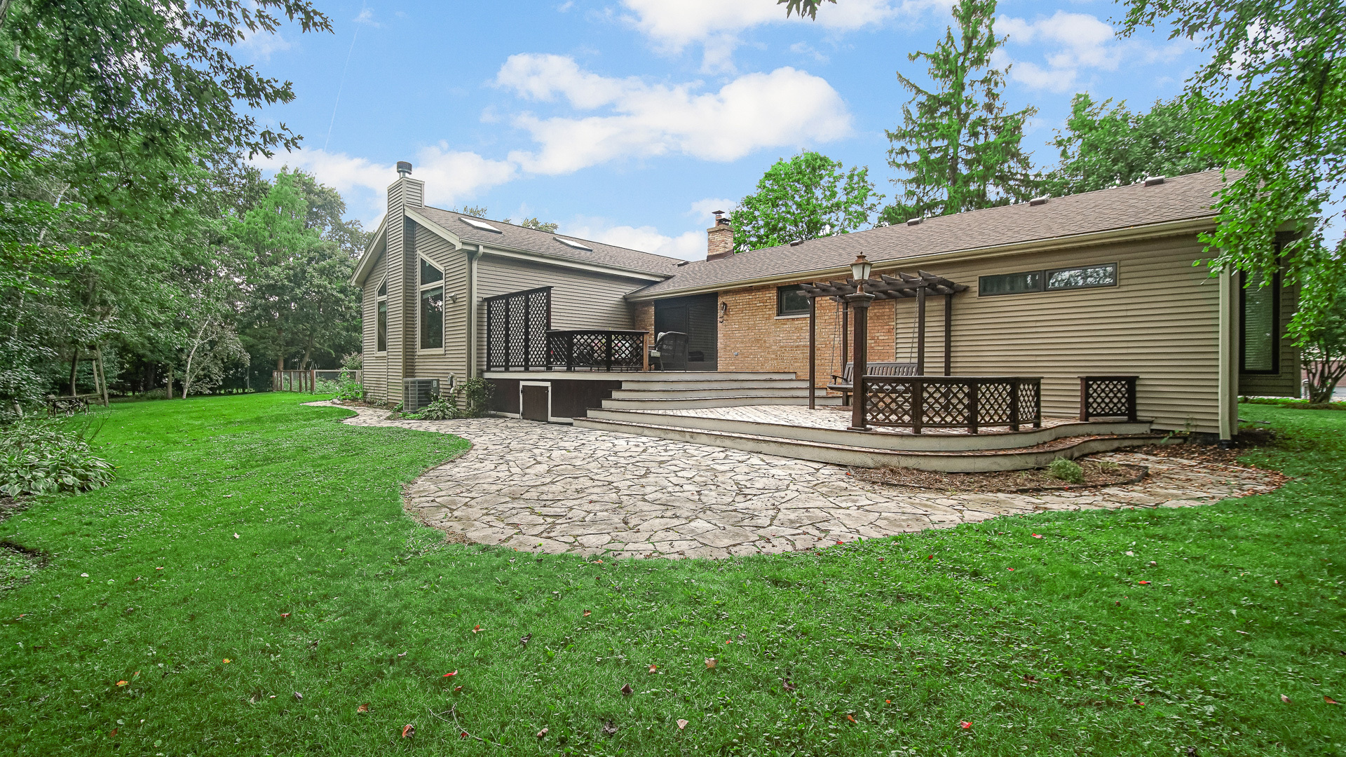 Meticulously maintained and updated 4-bedroom ranch conveniently located close to everything! Hardwood floors throughout main level! Tall vaulted/cathedral ceilings with skylights! Spacious kitchen with 42″ cabinets, stainless steel appliances, and granite counters! Crown moulding throughout! Generous primary suite with en suite bathroom featuring jetted tub, granite double vanity, and tile shower! Newer water heater (’23)! Newer A/C and furnace (’23)! Newer architectural shingle roof (’23)! New high-end Marvin sliding door! Newer main entry and side door (’22)! Newer windows (’22)! Hunter Douglas window treatments! Leaded glass front door windows! Oversized 3-car garage to accommodate toys, projects, and workshop! Large rear deck! District 103 elementary schools and Highly rated STEVENSON HIGH SCHOOL! Don’t miss out!