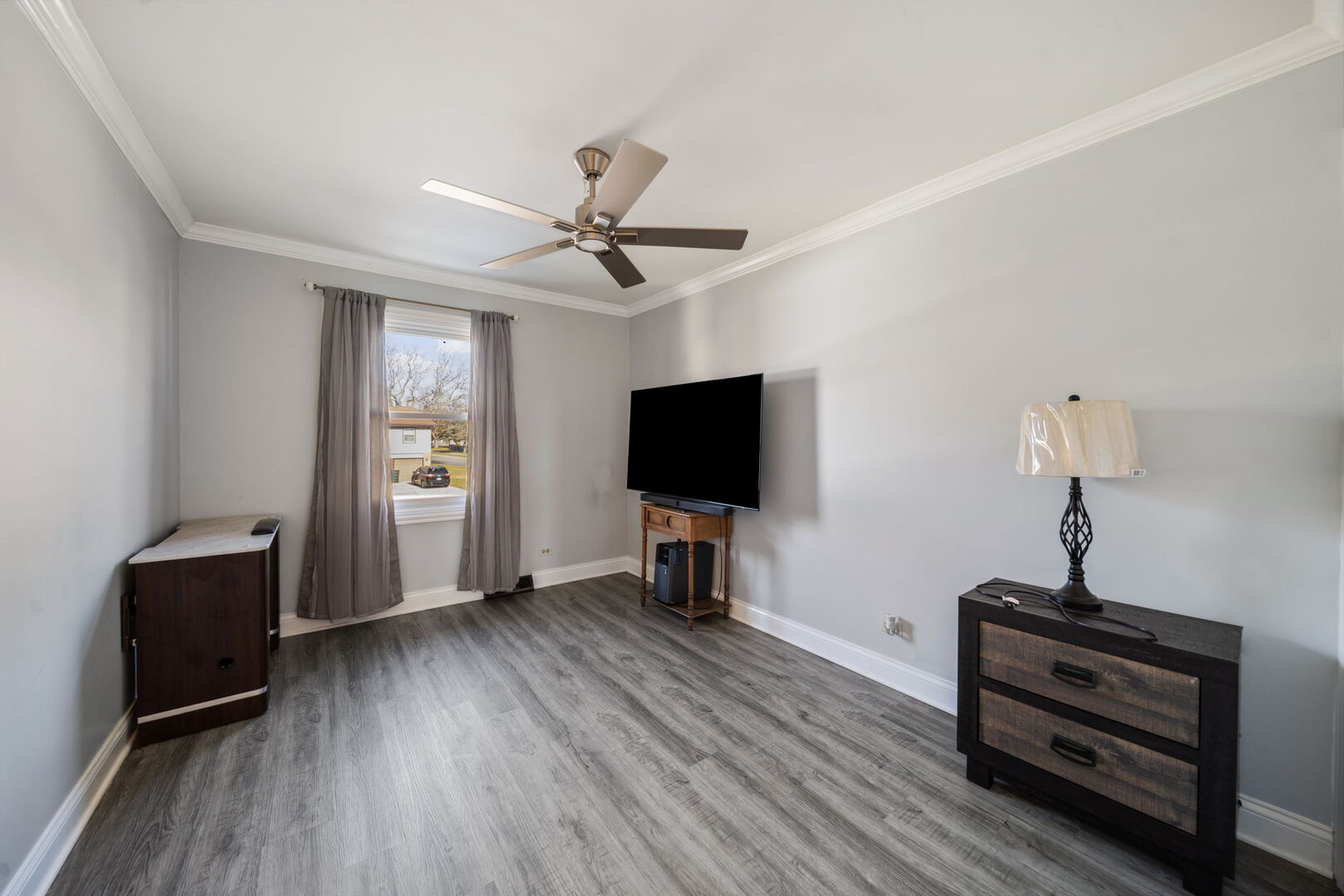 Welcome to this over-sized 4 bedroom/3 full baths raised ranch home in Western Trails. Home is well maintained with newer paint, new doors, white trim, vinyl plank flooring, new light fixtures, ceiling fans and canned lighting on main floor. The spacious kitchen has lots of cabinets with newer countertops and stainless steel appliances. Main floor features 3 bedrooms, primary bedroom with private updated bath. The dining/living room combo with sliding glass door to the expansive deck 10’x20′ upper deck 23’x11′ lower deck overlooking the fenced yard great for entertaining. Lower level includes family room with wet bar, 4th bedroom and full bath. Newer concrete driveway, stairs and front brick retaining wall. Newer furnace in 2022. Great location situated in a quiet cul-de-sac, backs to the elementary school and close to parks, waterpark and Carol Stream Park District.