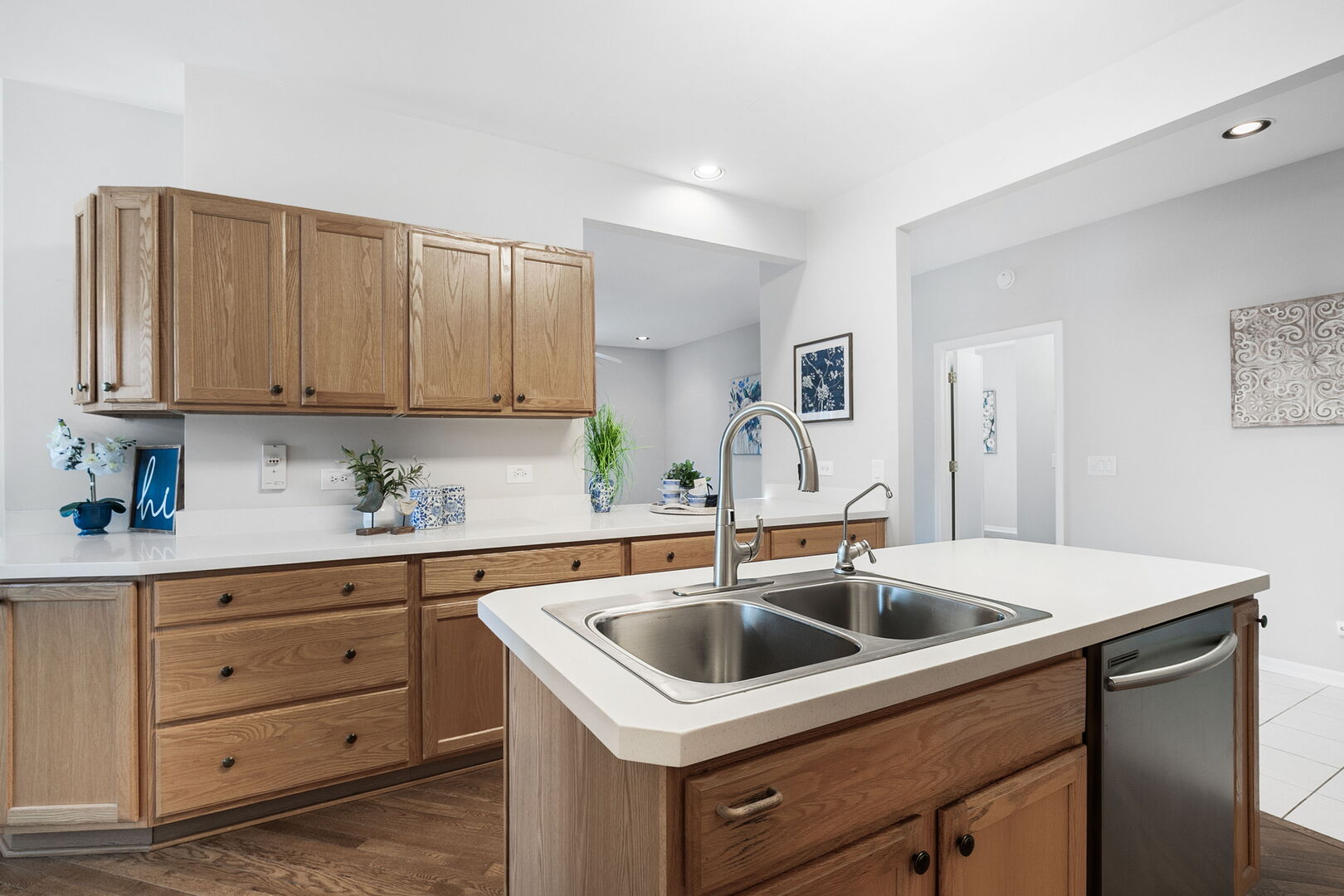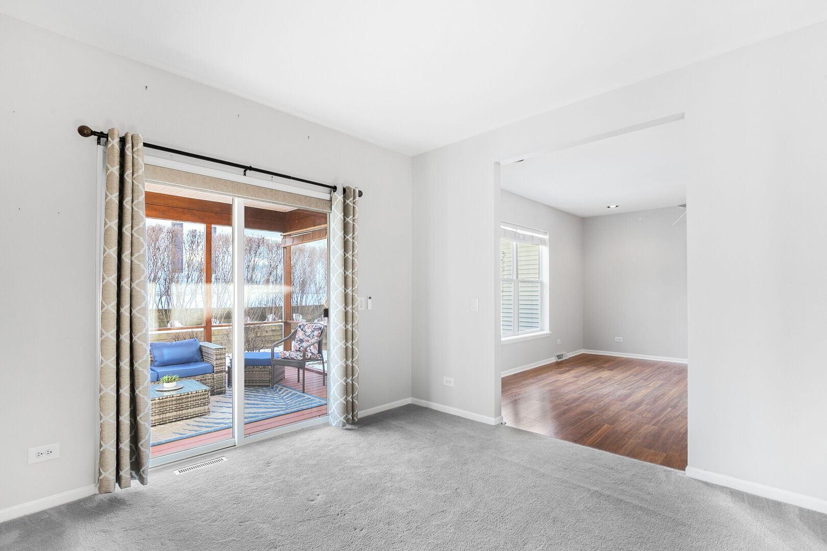 This inviting Prairie II Model home offers a neutral color palette and updated flooring throughout. Spend warm summer days and evenings in the lovely screened porch, a perfect space for relaxing or entertaining. Step inside to discover a spacious open-concept layout designed for comfort and easy living. The updated kitchen features an island, abundant cabinet and counter space, a convenient pass-through to the living room, and a cozy adjoining breakfast area. The formal dining room is perfect for hosting gatherings, with sliding doors that open to the screened porch and patio area. The primary suite offers a walk-in closet with a built-in organizer and an adjoining den-ideal for a home office, sitting room, or sunroom. The primary bath includes dual sinks, a separate walk-in shower, and a linen closet for added convenience. A second bedroom is located near a full bath with a tub-perfect for visiting guests. Additional highlights include a spacious laundry/mudroom with direct access to the two-car garage, and a charming covered front porch, ideal for enjoying a peaceful moment or chatting with neighbors on rainy days. Located in Saddlebrook, a desirable 55+ active adult community offering maintenance-free living. Residents enjoy access to outstanding amenities, including an exercise facility, scenic lake, clubhouse, community garden, lawn care, and more!