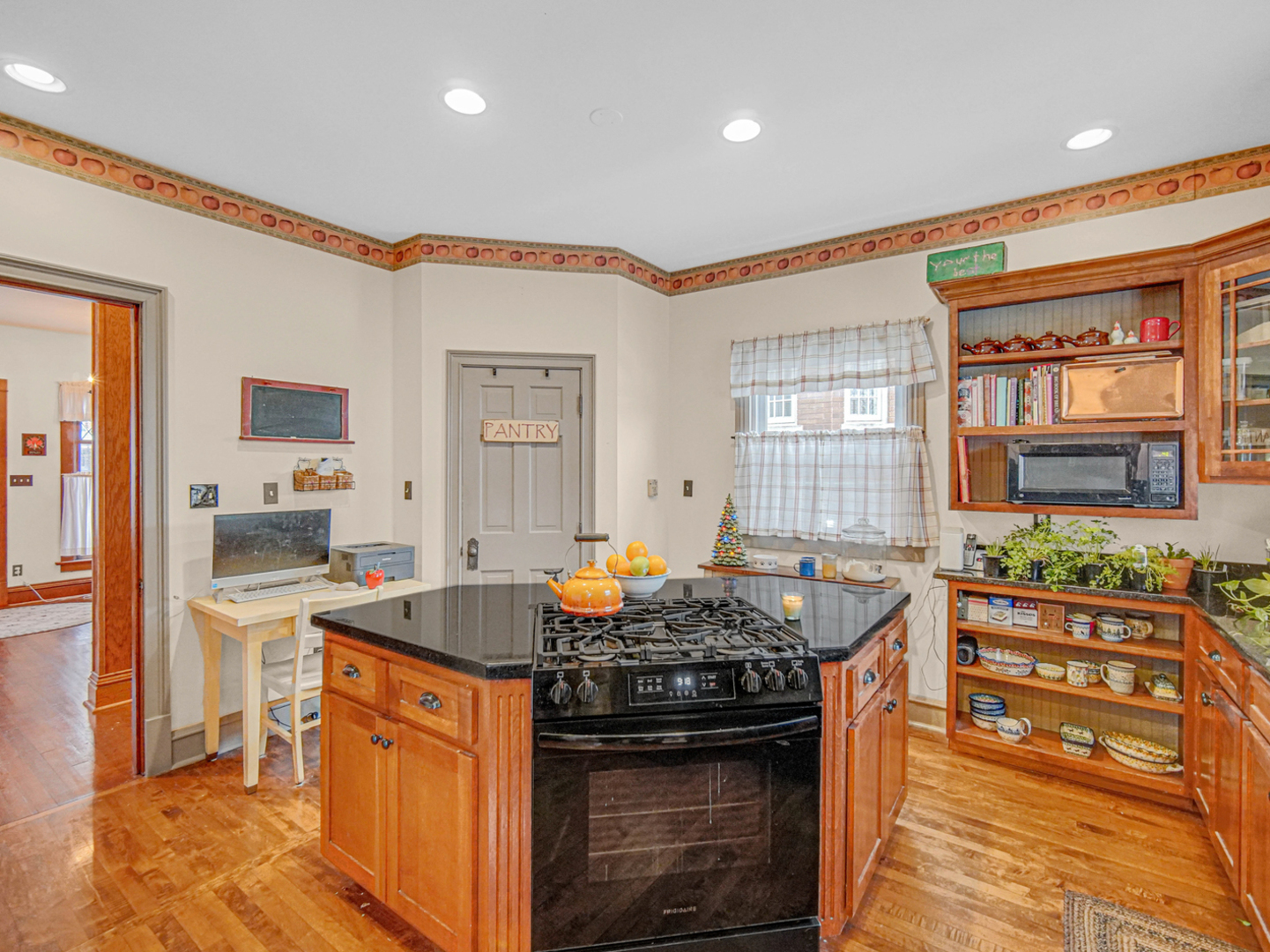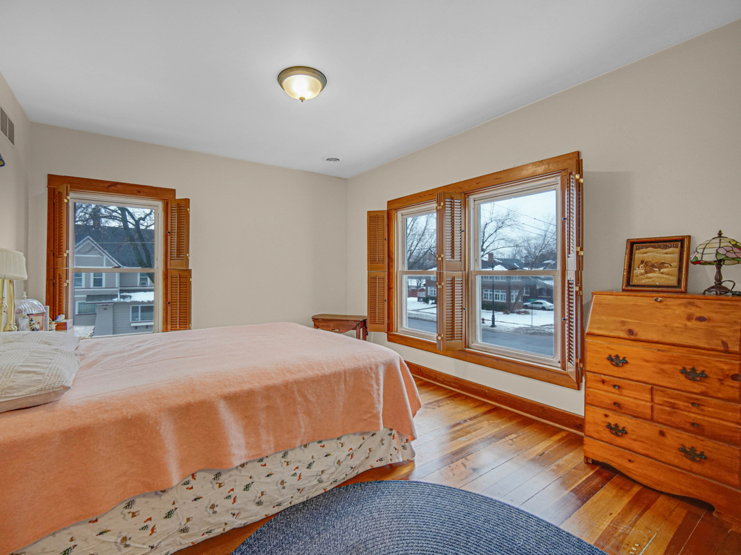 Welcome to Joliet’s coveted Cathedral Area. This amazing Victorian has been meticulously maintained and thoughtfully updated while preserving its historical 1908 character. A covered front porch with a swing adorns the front of this 3-story (plus basement), 4 bedroom, 2 1/2 bath home and overlooks a tree lined street. Inside, beautiful quartersawn hardwood oak floors are featured throughout the home along with 5-panel doors. A leaded glass window and room-dividing columns greets you in the foyer, coat rack stays along with fine woodwork on the staircase and that repeats throughout the home. In the dining room, French doors and the kitchen swing door highlight the room. The big bay window floods the room with natural sunlight. The kitchen includes all your desired modern amenities with granite countertops, an island breakfast bar, new stove/oven, beautiful wood cabinets and big pantry. The updated half bath is thoughtfully tucked away off the rear entrance with new storm door which flows perfectly to the back covered porch and white picket fenced backyard with tree swing. The second story features all the bedrooms, including a surprisingly spacious primary bedroom with rare walk-in closet and sitting area. Full bath on this level is big, updated, and features a built-in linen closet. A walk up to the third story reveals a bonus room large enough for a multitude of uses, with custom beds, large closet, and original exposed brick. The finished, dry basement of this home is surprisingly bright, cozy, and inviting and features an updated full bathroom, big laundry room, new water softener, and ample storage room. All area rugs on the main level and the basement stay. The 2 1/2 car garage has all the room you could need for two cars plus storage. Great neighborhood close to public and private schools, churches, and many other amenities.