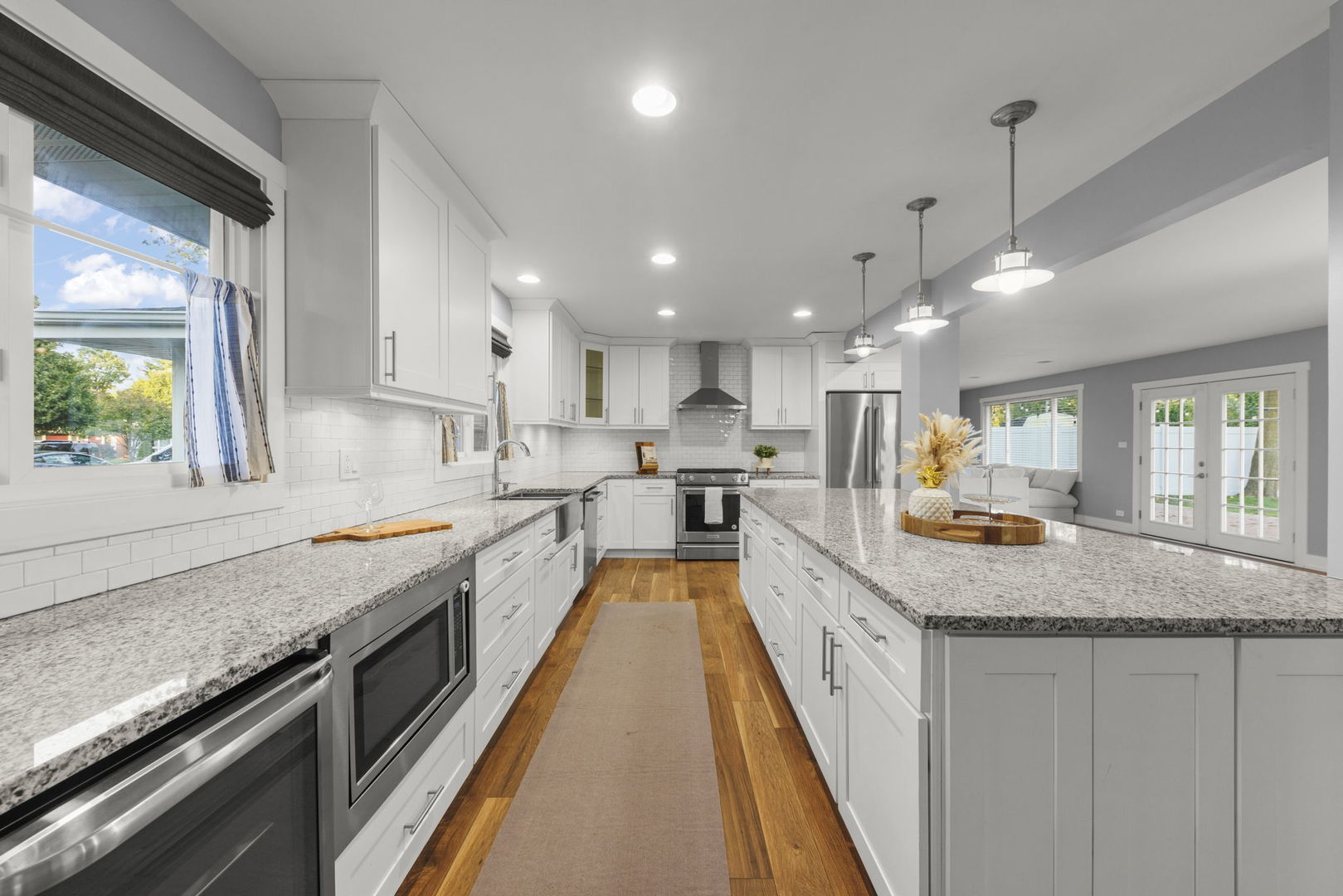 Stunning custom rebuilt 5 Bedroom Northside Wheaton home fully loaded with luxury amenities. Timeless design and modern functionality. Perfect for everyday living and effortless entertaining and hosting. Sun drenched throughout. You will love the Chef’s Kitchen which is anchored by a massive island that fits 12 people. There is an abundance of cabinet storage and full extension pull-out drawers…. you will never lack storage space. The Kitchen is open to the Dining room that can fit an exceptionally large group. Gorgeous custom millwork throughout. The Living/Family room features shiplap and a barn style door to give it extra warmth. This flexible floor plan currently has a first floor Master Bedroom retreat with a spa-like Bathroom and walk-in closet. Second first floor bedroom was used as an Office and has a Murphy Bed that will stay and is wonderful for guests because there is a Full Bathroom right across the hall. All the Bedrooms have been updated and are simply perfect. The first-floor laundry and additional storage is well lit. The Garage has extra storage areas and has new epoxy flooring, and is well lit. French doors lead you to a wonderful private patio and .28-acre yard with a 3 year old Raindbow playset (negotiable) mature landscaping and completely fenced. 2 new a/c and furnace, and new hardy board siding surrounding home. Convenient location within proximity to schools, train, parks, Prairie Path, restaurants, shops, and everything the vibrant downtown has to offer.