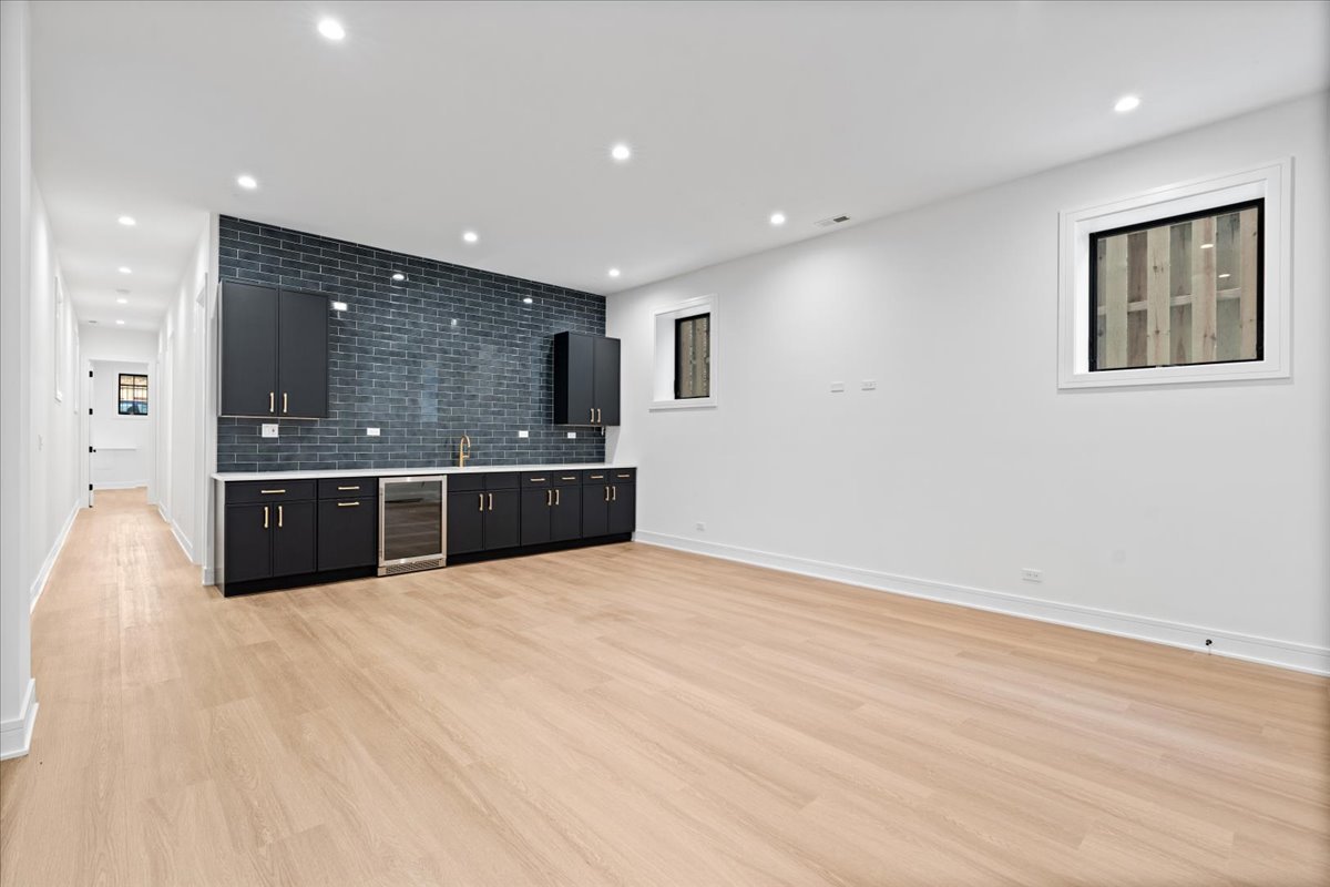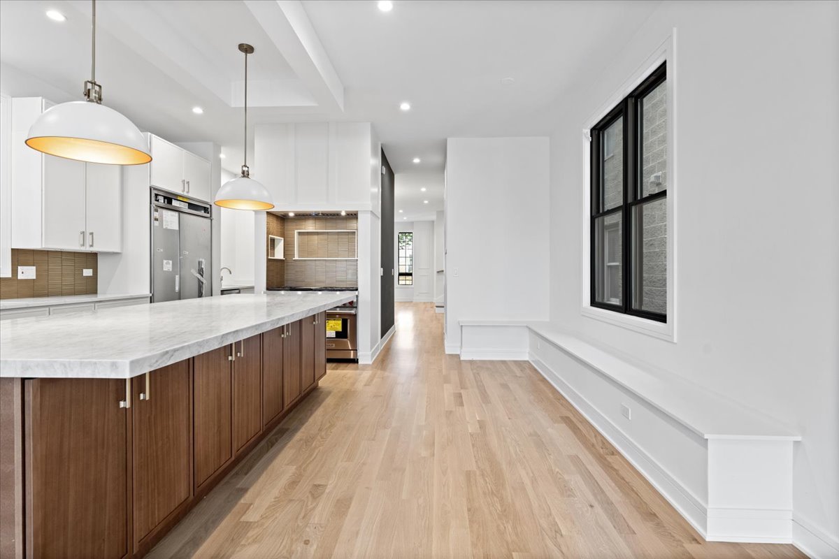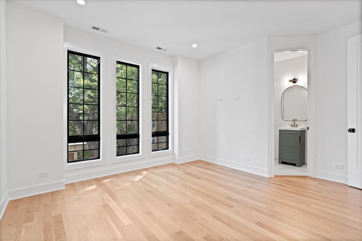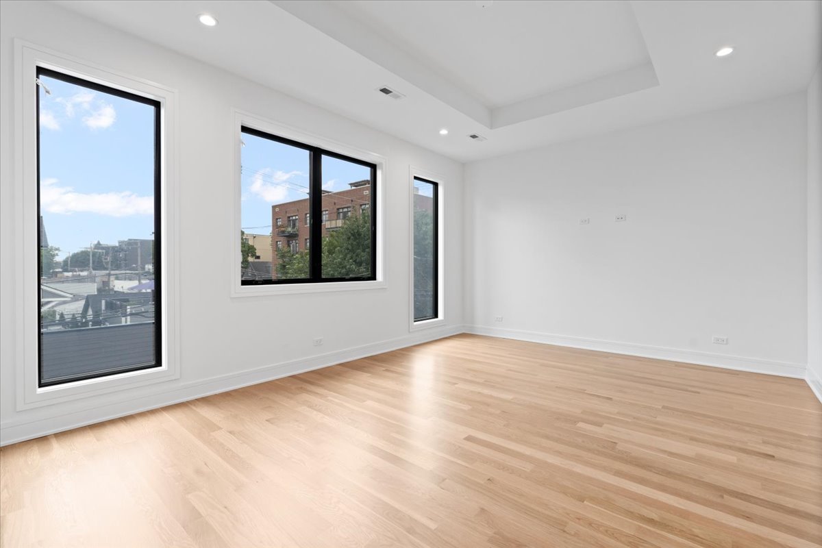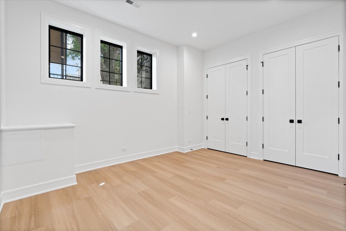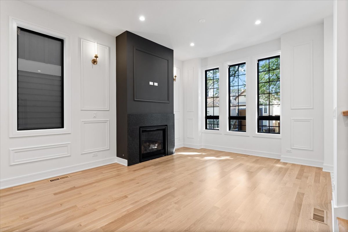 This stunning 6 Bedroom (4 Beds Up) 4.2 Bath New Construction single-family home is located just minutes from the heart of Hamlin Park and Roscoe Village. The bright and open floor-plan showcases, expansive room sizes, extensive millwork and lofty ceiling heights. The custom built; eat-in kitchen with banquet anchors the great room and was designed for day to day living and entertaining alike. The center island is enveloped by custom soft-close cabinetry, professional grade appliances and stunning tile work. The abundant interior living space is matched by multiple private outdoor areas including a rear patio with gas connection for grilling and a spacious garage roof deck with SW exposures. The upper lvl provides 4 large bedrooms, 3 full baths and full size front-load laundry. The primary bedroom features a dramatic walk-in closets with custom shelving and a serene primary bath with glass encased steam shower, stand-alone soaking tub, dual vanity and heated floors. The lower lvl includes two additional bedrooms and a sizable family room with radiant heated flooring + excellent storage. Additional features include 2 car garage parking, low voltage wiring for internet and AV, custom built closets and hardwood flooring throughout.