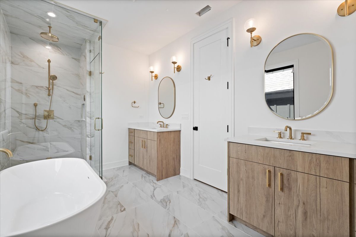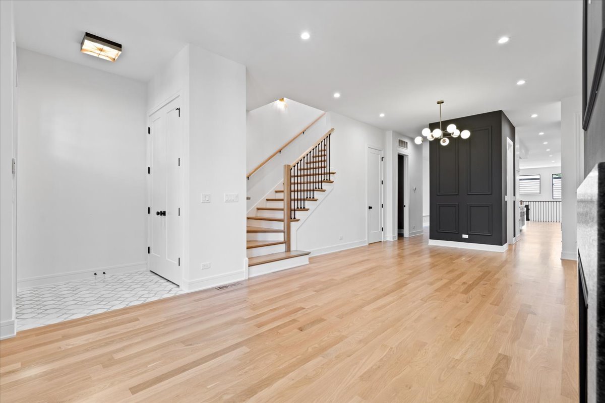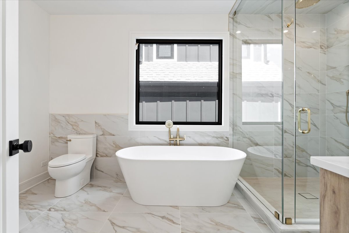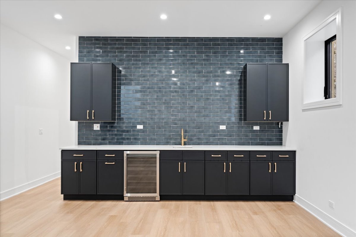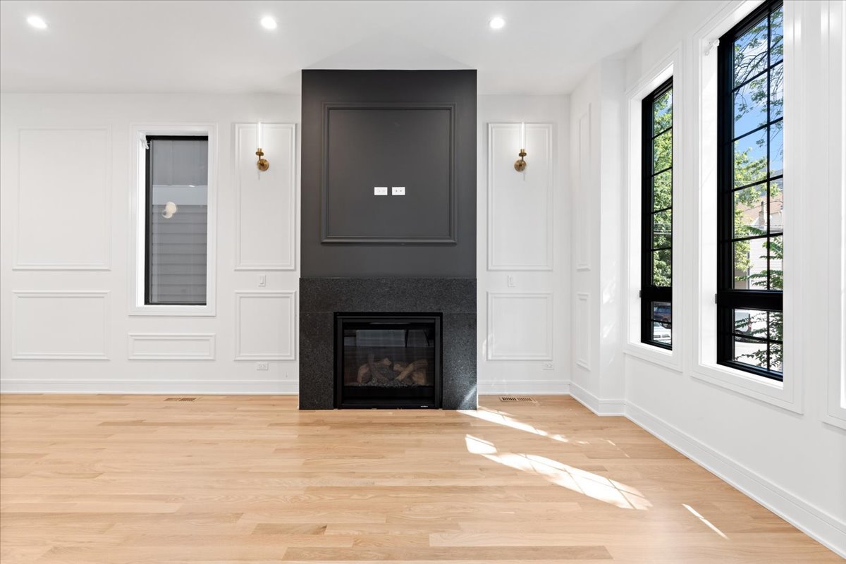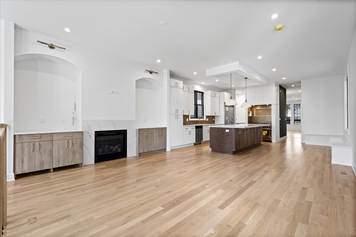 This stunning 6 Bedroom (4 Beds Up) 4.2 Bath New Construction single-family home is located just minutes from the heart of Hamlin Park and Roscoe Village. The bright and open floor-plan showcases, expansive room sizes, extensive millwork and lofty ceiling heights. The custom built; eat-in kitchen with banquet anchors the great room and was designed for day to day living and entertaining alike. The center island is enveloped by custom soft-close cabinetry, professional grade appliances and stunning tile work. The abundant interior living space is matched by multiple private outdoor areas including a rear patio with gas connection for grilling and a spacious garage roof deck with SW exposures. The upper lvl provides 4 large bedrooms, 3 full baths and full size front-load laundry. The primary bedroom features a dramatic walk-in closets with custom shelving and a serene primary bath with glass encased steam shower, stand-alone soaking tub, dual vanity and heated floors. The lower lvl includes two additional bedrooms and a sizable family room with radiant heated flooring + excellent storage. Additional features include 2 car garage parking, low voltage wiring for internet and AV, custom built closets and hardwood flooring throughout.