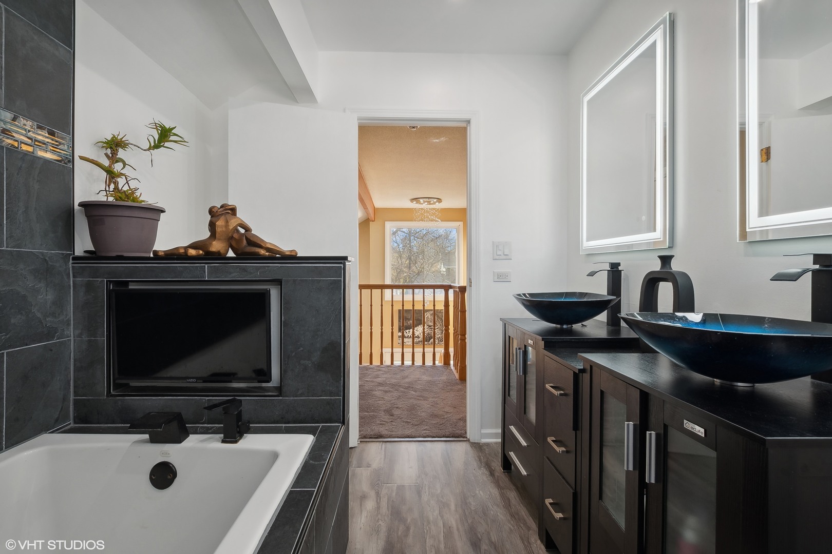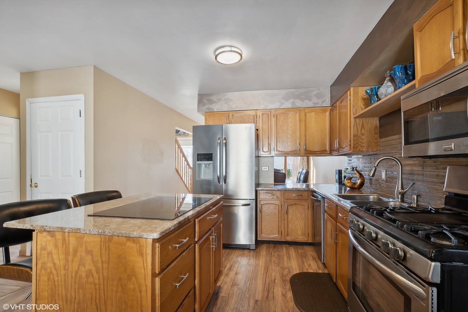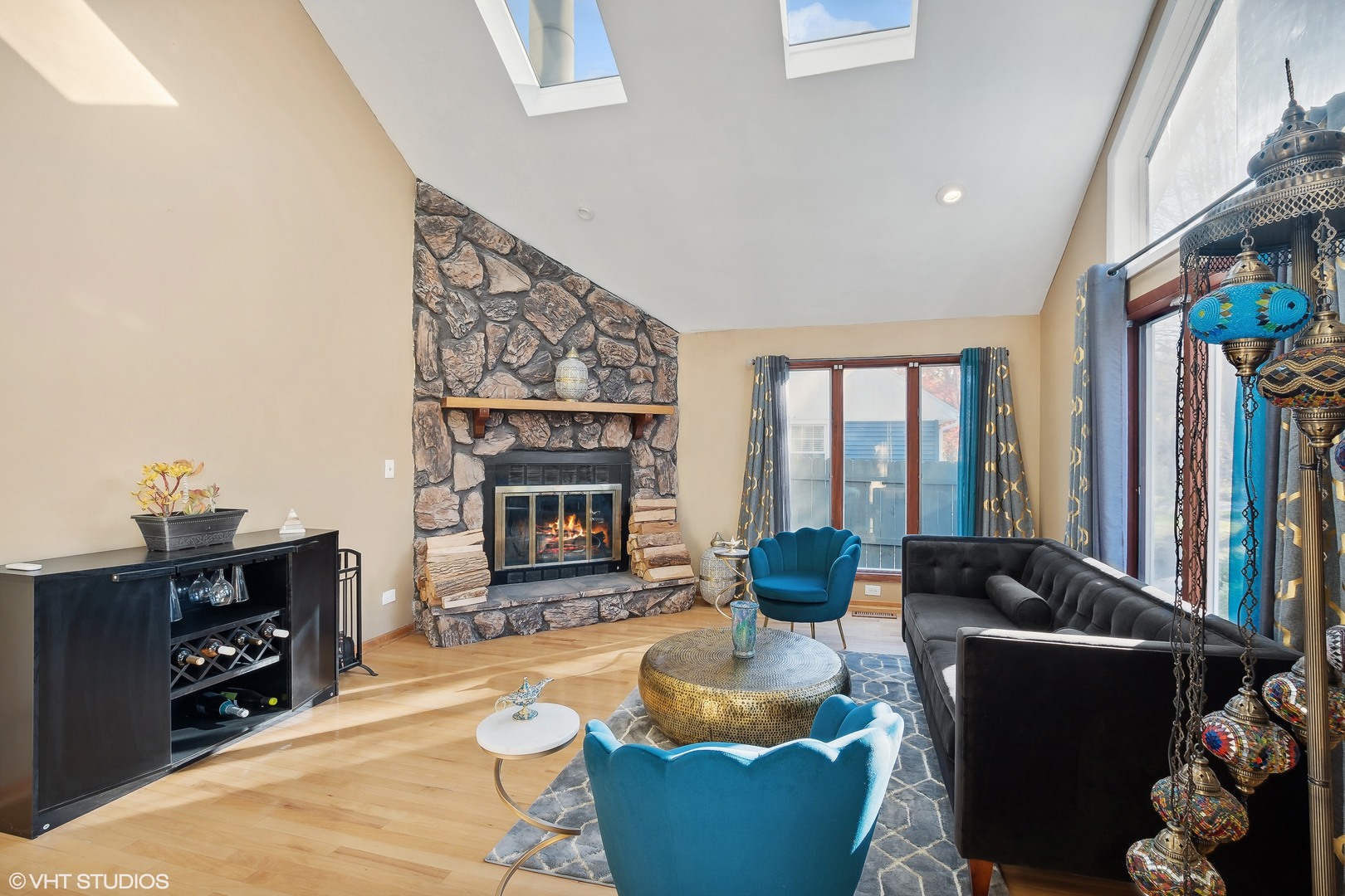 Welcome to this beautifully updated two-story home, where modern elegance meets comfort! This rarely available home is surrounded by tranquil views of nature on a quiet treeline street. Notable updates include a new furnace and A/C installed around 2017, a new tear-off roof completed in 2023, and energy-efficient solar panels. As you enter through the brand new front door (2023), you’ll be greeted by a stunning two-story foyer that sets the tone for the entire home. Notice the thoughtful updates throughout, including new light fixtures, six-panel doors, stylish window treatments, and Andersen windows. The inviting living room features hardwood floors, vaulted ceilings, and new skylights that fill the space with natural light, complemented by a cozy wood-burning fireplace-perfect for relaxing evenings. The dining room offers an ideal space for gatherings, while the eat-in kitchen boasts new wood laminate floors (installed in 2023), an island with a beautiful granite counter, stainless steel appliances, a chic tile backsplash, and a sliding Andersen door that opens to the deck. The main floor primary bedroom is a true retreat, featuring vaulted ceilings, a new skylight, and double closets. The remodeled full primary bathroom is a spa-like oasis, complete with a whirlpool tub, a rainfall shower head, a new vanity, and elegant granite tile flooring. Upstairs, you’ll find two generously sized bedrooms along with a beautifully remodeled hall bathroom. This luxurious bath includes a whirlpool tub, a rainfall shower head complete with a built-in TV, a double sink vanity, new flooring, a new toilet, and stylish mirrors with built-in lighting and heat, all enhanced by a new window. The full partially finished basement offers a large family room, perfect for entertaining or relaxing, and features a full bathroom installed in 2024 with a full body sprayer shower and seating. A custom steam room crafted from all cedar was also installed in 2024, providing an exceptional retreat. The washer and dryer were updated in 2019 for your convenience. Outside, you’ll appreciate the professional landscaping and the newly fenced-in backyard (added in 2020), which includes attached bench seating on the deck under a charming covered pergola-ideal for outdoor entertaining. The new asphalt driveway (2022) leads to a spacious 2.5-car garage, which boasts a new roof (2023). This home is a must-see-don’t miss the opportunity to make it yours!