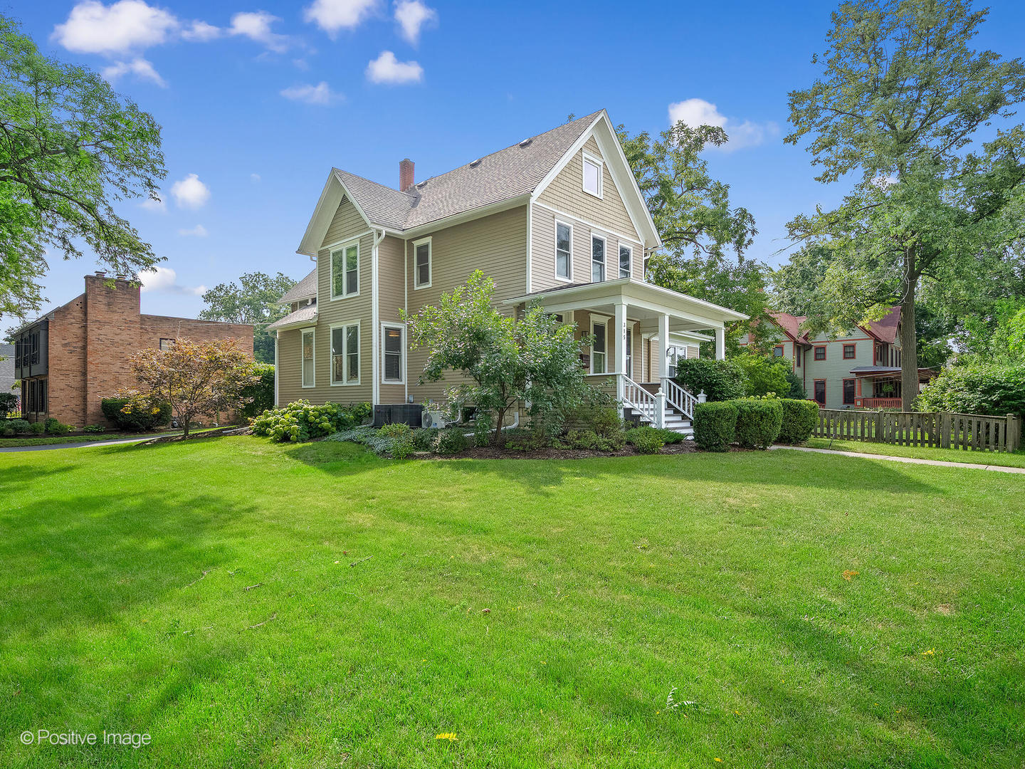 Stunning Renovated 1887 Victorian Farmhouse in North Wheaton! Once owned by Erastus Gary, a founding father of Wheaton, this iconic home blends timeless character with modern elegance-just one block from Longfellow School and steps from Memorial Park, downtown restaurants, coffee shops, boutiques & walking distance to the Metra Station. From the charming front porch to the detailed millwork, this “Americana Beauty” is truly one-of-a-kind. Rebuilt in 2014 by Wetmore Associates, the 2-story addition includes a spacious family room with 10ft ceilings, gas fireplace, built-ins, and a light-filled breakfast area with French doors to the side deck. The beautiful kitchen features granite counters, stainless steel appliances, and a central island-perfect for gathering. Flexible layout includes a 1st-floor den, that could also be a 5th bedroom as well as an office, living room, and a full marble bath. Upstairs, the luxurious primary suite boasts vaulted ceilings, dual closets with Elfa systems, and a spa-like bath with soaking tub and stunning marble walk-in shower. Additional bedrooms offer ample storage. Second floor bathroom was completely updated in 2024 with shiplap, herringbone tile and dual sink vanity. Laundry room is conveniently located on this level. You’ll love the recently finished attic space with cozy built-in beds, each with drawers and lighting. Additional highlights: Refinished hardwood floors, 2 staircases, custom hardware/doors, Pella windows, and Hardie Board siding. Enjoy a generous yard, paver patio with firepit, and detached 2.5-car garage. Located in one of Wheaton’s most beloved neighborhoods-this home offers unbeatable walkability and access to the best of town living. Don’t miss this rare opportunity!