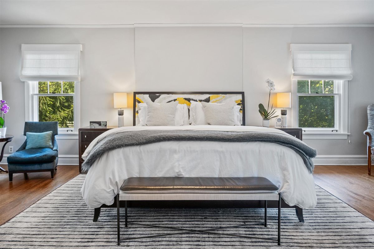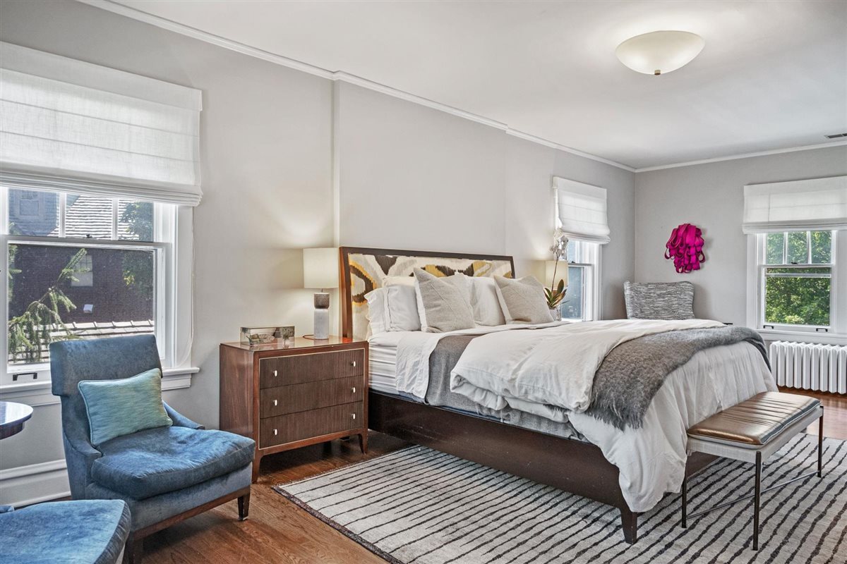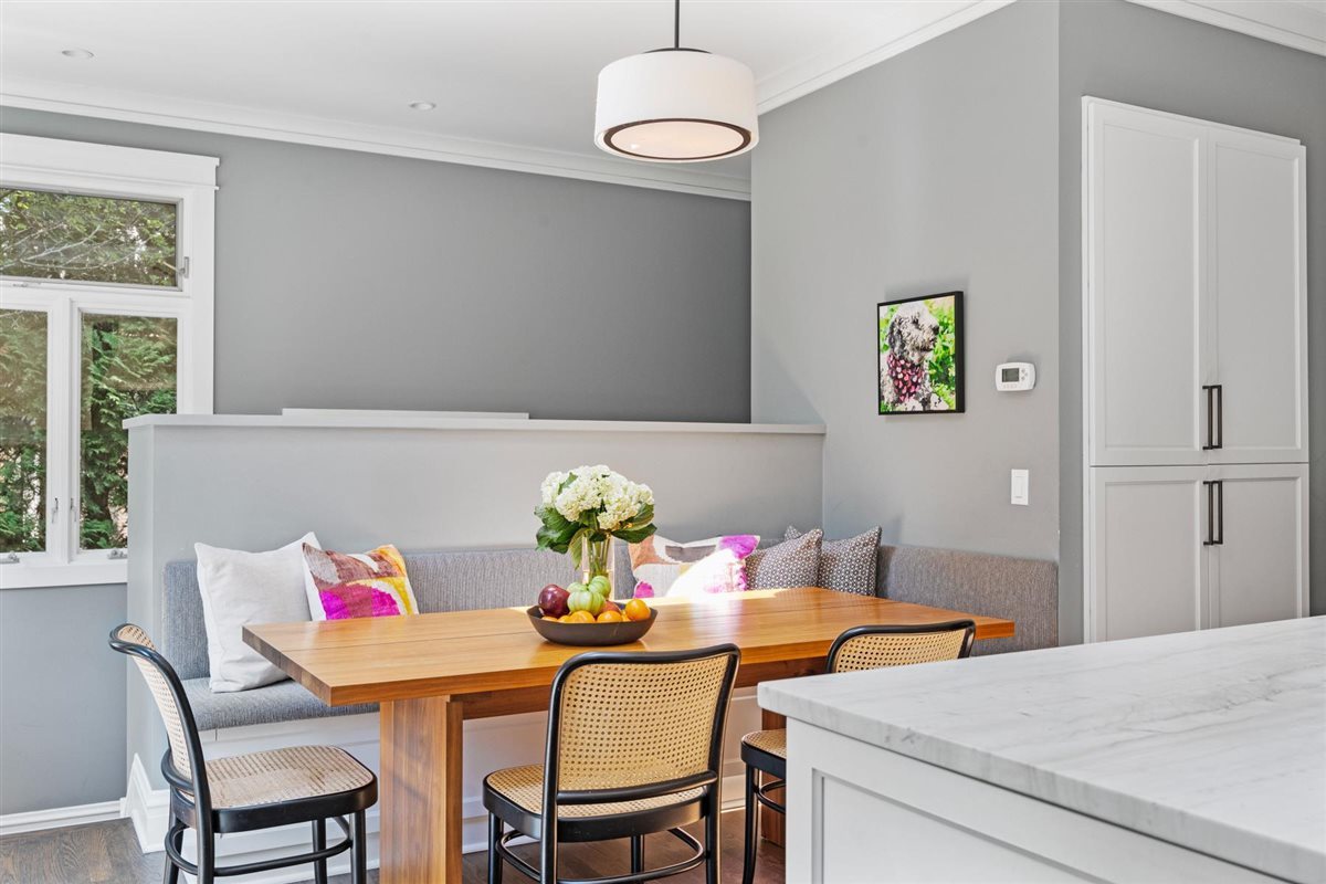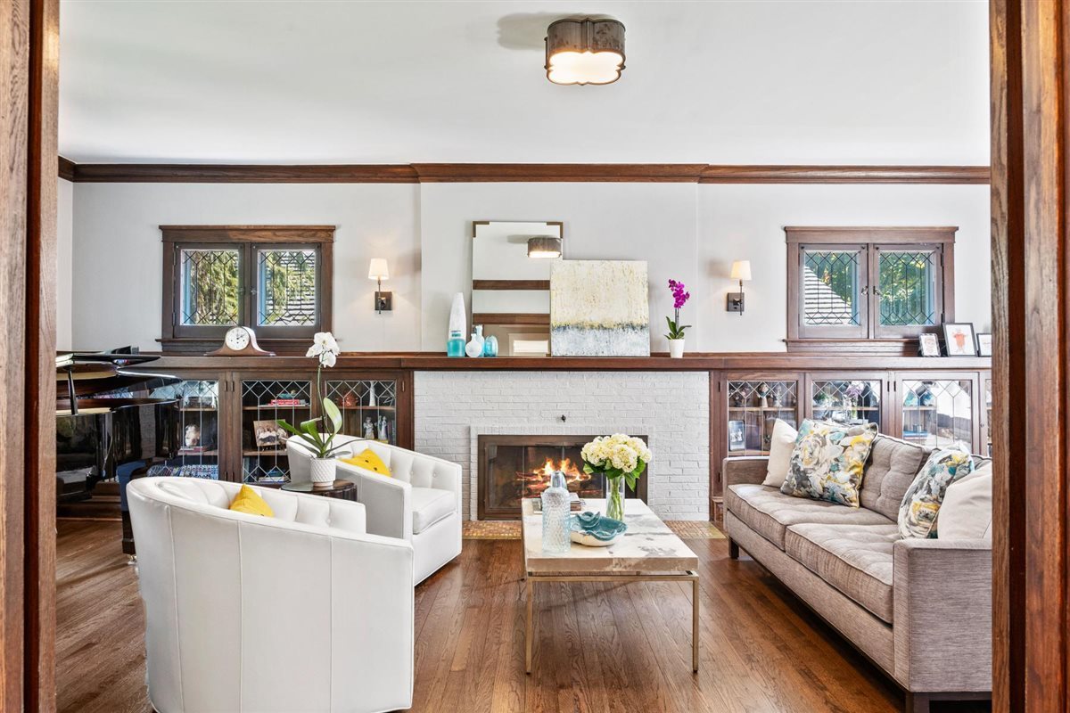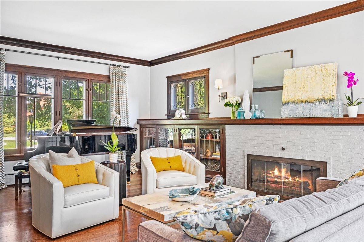 Perfectly positioned just steps from Gillson Beach and right off Sheridan Road, this classic red brick Colonial delivers timeless style in a prime location. Thoughtfully renovated, the home blends clean lines and a serene palette of soft hues with preserved original details, striking a rare balance between vintage warmth and today’s modern lifestyle. Inside, original leaded glass windows and doors meet Ann Sacks tile, Visual Comfort lighting, Kallista hardware, and luxe stones and marbles-elevating the home with a perfectly refined, designer curated touch. Welcoming foyer opens into the formal living room anchored by a crisp white FP w/ a natural wood mantel flanked by built-in cabinets with leaded glass doors showcasing the beautiful craftsmanship. Living room flows seamlessly into the large dining room accented with white wainscoting, detailed crown molding, and sun-filled sitting area with original restored terracotta tile floors & oversized windows framing the lush backyard. Open family room to kitchen space anchors this special inviting space with direct access to the patio overlooking the privately lush backyard. Sunlight pours across the expansive island, topped in striking white quartzite with soft gray veining with bar seating for 5 with custom Plain & Fancy white cabinetry, s/s appliances, and Ann Sacks textured backsplash making this space as functional as it is stylish. The built-in breakfast nook with bench seating creates the perfect corner for casual meals while French doors lead outside to the back deck for easy entertaining. Chic powder room off the family room & sleek mudroom off the kitchen connects to the rare attached 2-car garage making this a dynamite feature of this home. Completely redone 2nd floor with 4 bedrooms including the ultra luxe primary suite with oversized bedroom, newly remodeled spa bath with dual floating vanities outfitted in quartz c-tops, RH fixtures, walk-in shower in Ann Sacks bricked tile and huge walk-in closet. 3 additional bedrooms share crisp hall bath w/ double vanity, warm wood cabinetry, sleek gray subway tile & glass-enclosed shower/tub combo. The 3rd floor retreat space is ideal with an optional office/playroom plus a private bedroom with full bath perfect for guests or extended family. Even the sunlit LL expands the living space with a large recreation area, laundry, utilities, and ample storage. Set on a 80 ft wide lot w/mature landscaped backyard this home hits all marks as it’s turn key perfect in a very coveted East Wilmette location. Walk to town for a burger at the newly opened Small Cheval or walk down to the newly redone Plaza Del Lago for lunch to Space 519 after your peaceful morning walk on the beach. This is exactly why you leave the city or choose to upgrade-quintessential North Shore living at its finest!