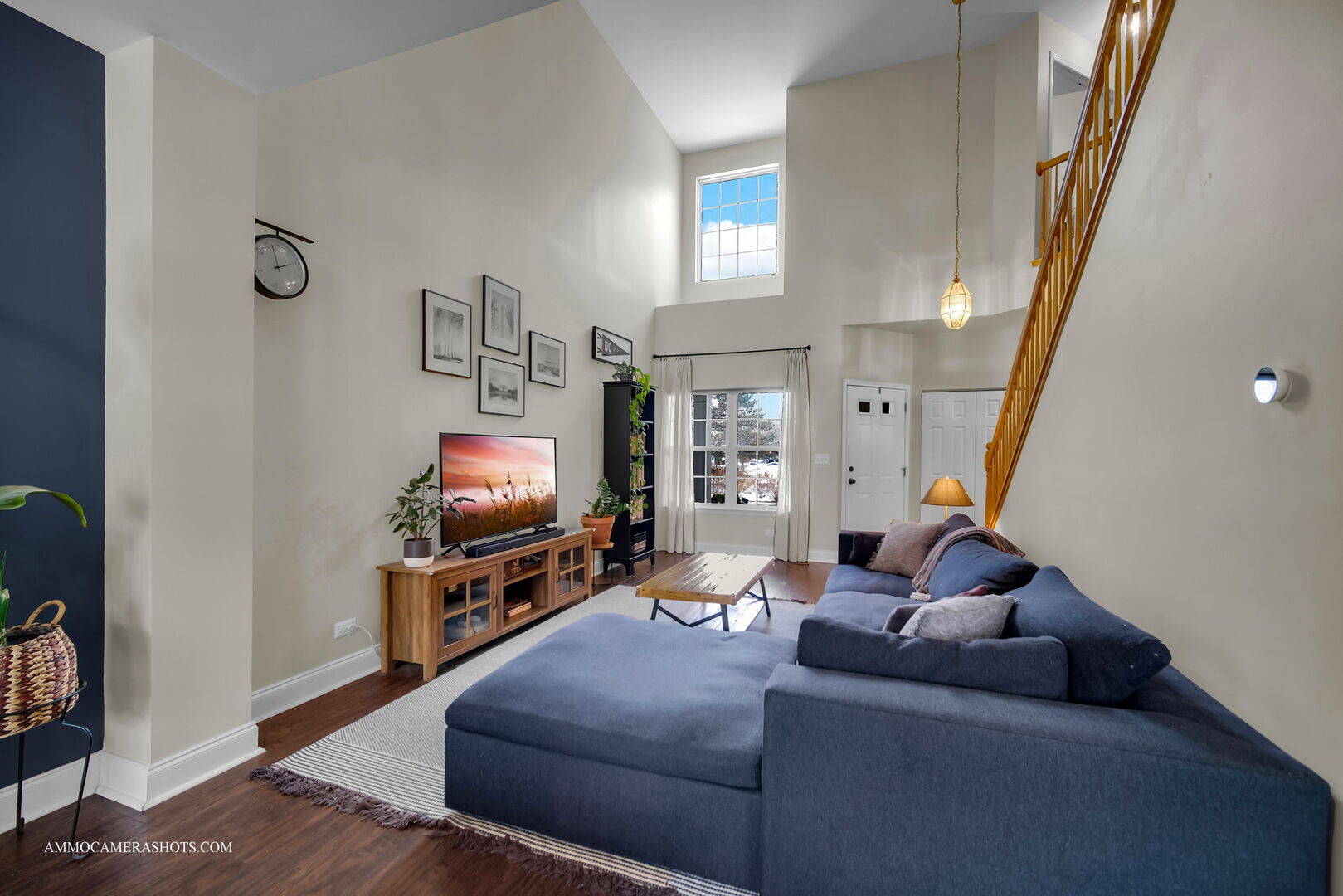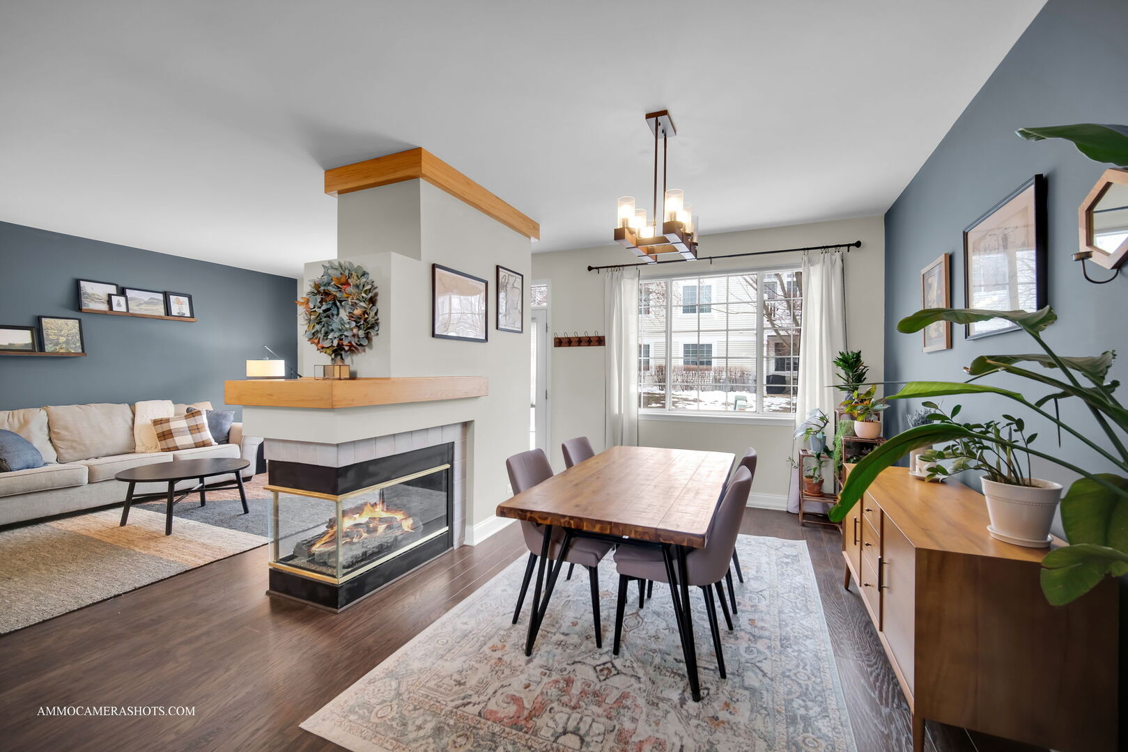 Open layout suited to today’s lifestyle! Amazing location at the end of a cul de sac within walking distance to the west branch of the DuPage River! Close to everything! Hop on I-88, walk the prairie path right outside your door, & have easy access to shopping & restaurants. True 3 bedroom 2-story unit with Two CAR GARAGE!! Enjoy two story ceilings in the Living Room and 9′ ceilings thru-out the first floor! Newer laminate on Main level and newer hardwood floors on 2nd story.! Main level offers great entertaining space with separate Living Room with vaulted ceiling, Dining Room, Eat-in Kitchen plus Family Room and Powder Room. Just flip a switch to turn on the three sided gas fireplace! Kitchen features 42″ maple cabinetry with solid surface counter. Large walk-in pantry or closet under the stairs. Newer refrigerator, stove and microwave. Second story features Master Bedroom with volume ceiling, private bath with soaker tub and shower, double sinks, plus a walk-in closet! Two additional bedrooms, full Bath in hall and 2nd floor Laundry. Lots of good closet space in this model. Two Car Garage!! Everything you have been looking for! Beautiful Cantera Village. Private patio outside your door. Newer baseboards on both Main Level & 2nd floor. This home feels so inviting!! What a great place to live! Furnace 2017, hot water heater 2025.. Dist. 200. This is a great home!!