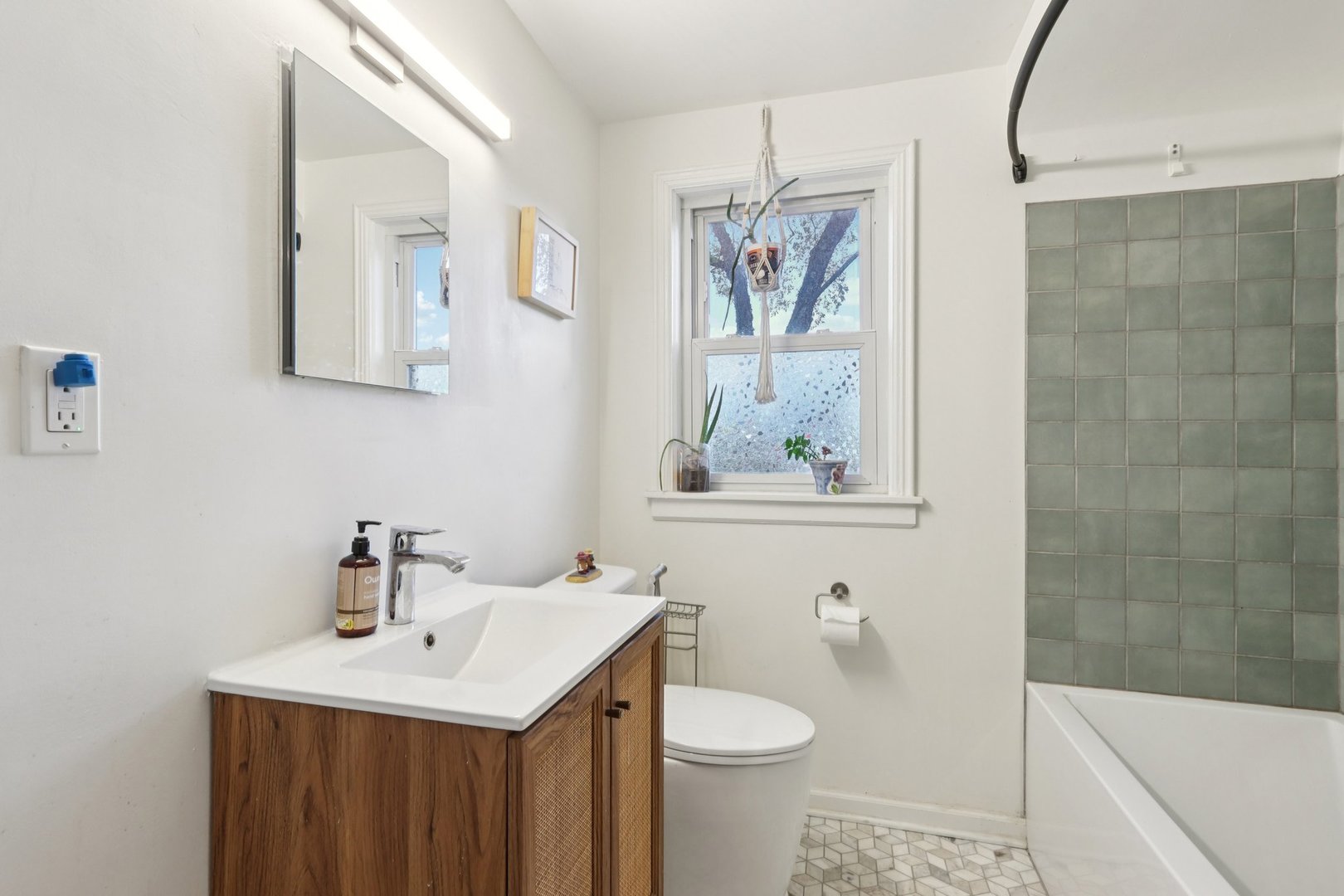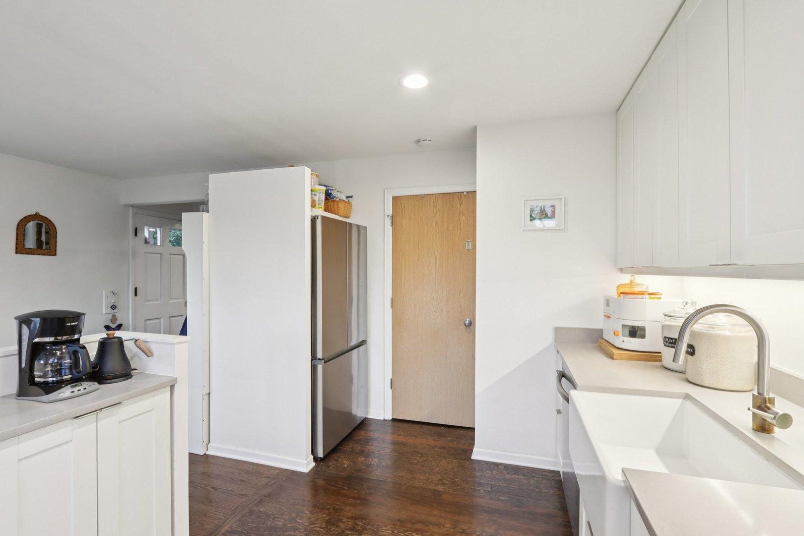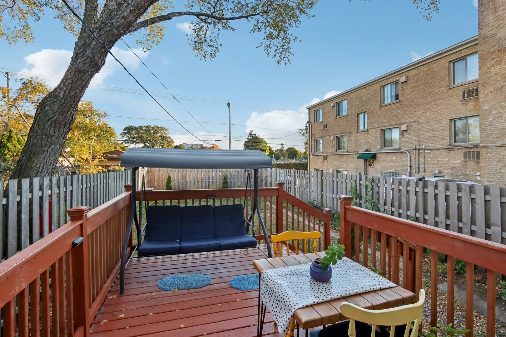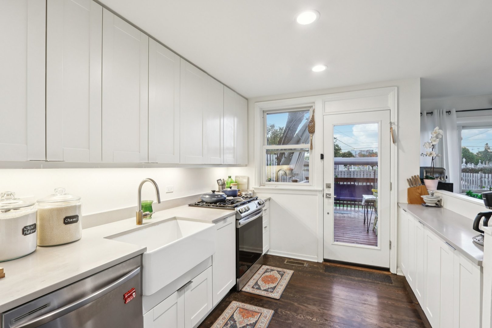 Beautifully updated end unit townhome that lives like a single family home only four blocks from Lake Michigan! Completely renovated in 2023, this 3-bedroom, 1.5-bath fee simple townhome offers the perfect blend of style, comfort, and convenience. Inside, the bright, spacious living room features a charming bay window, wood trim feature wall and plenty of room to entertain. The dining area opens to the kitchen and overlooks the sunny south-facing yard. Enjoy a stunning white kitchen with custom cabinets, quartz counters, large island, farmhouse sink, newer stainless steel appliances, vented range hood, and under-cabinet lighting. A convenient and recently updated half bath finishes out the main level. Upstairs, you’ll find three comfortable bedrooms including a large primary bedroom with serene yard views and a newly updated hall bath with a custom vanity, soaking tub with tiled surround and beautiful statement tiled floor. The partially finished basement has tall ceilings, space for an additional living area and laundry area with plenty of additional storage space. The fenced backyard offers a newer deck, spacious yard and 2.5 car parking pad (with plenty of space to add a garage or ADU). Additional updates all in 2023 include a new tear-off roof, HVAC system, refinished hardwood floors, updated windows and lighting. With a fantastic location blocks to South Boulevard Beach, Lake Michigan, South Blvd Purple Line and Downtown Evanston there’s truly nothing to do but move in and enjoy!