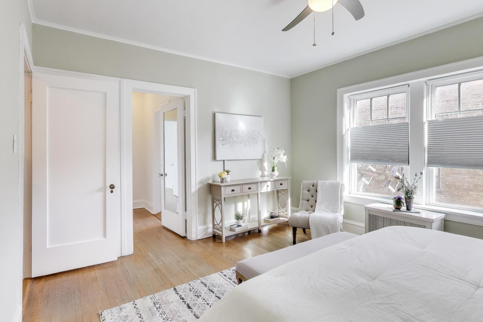 Discover the vintage charm of this top-floor unit in highly desirable southeast Evanston. Boasting 2,000 square feet, this delightful home features 3 spacious bedrooms, 2 full bathrooms, a large dining room, and both front and back sunrooms. Cozy up by the fireplace on crisp autumn evenings after a leisurely stroll by the lake, just three blocks away. Fully updated kitchen with all stainless steel appliances, and 2 updated baths mean you can be settled in before the holidays. This inviting residence is waiting to become your new home!