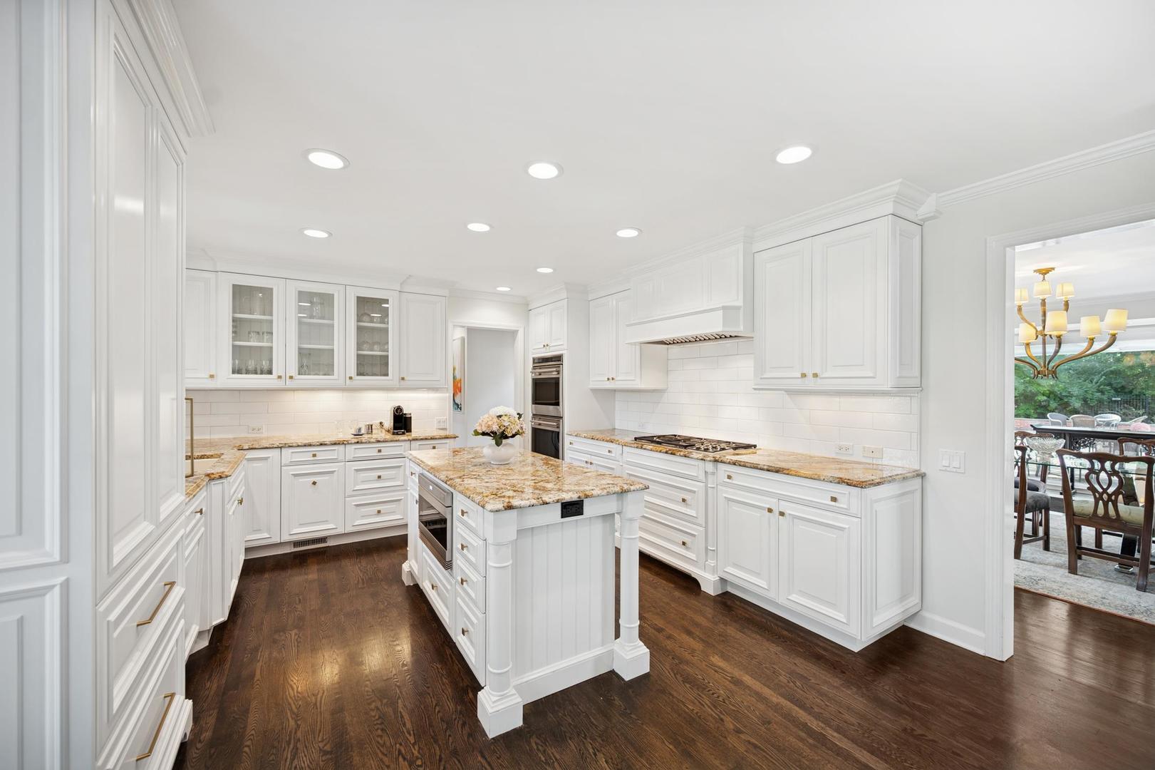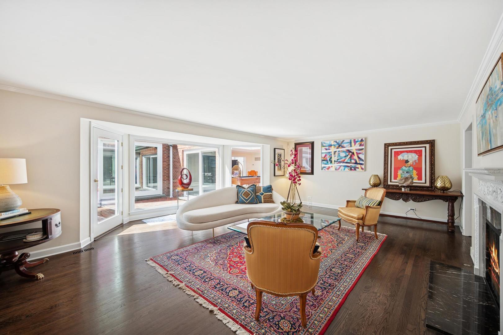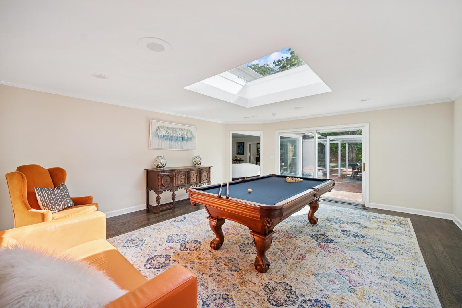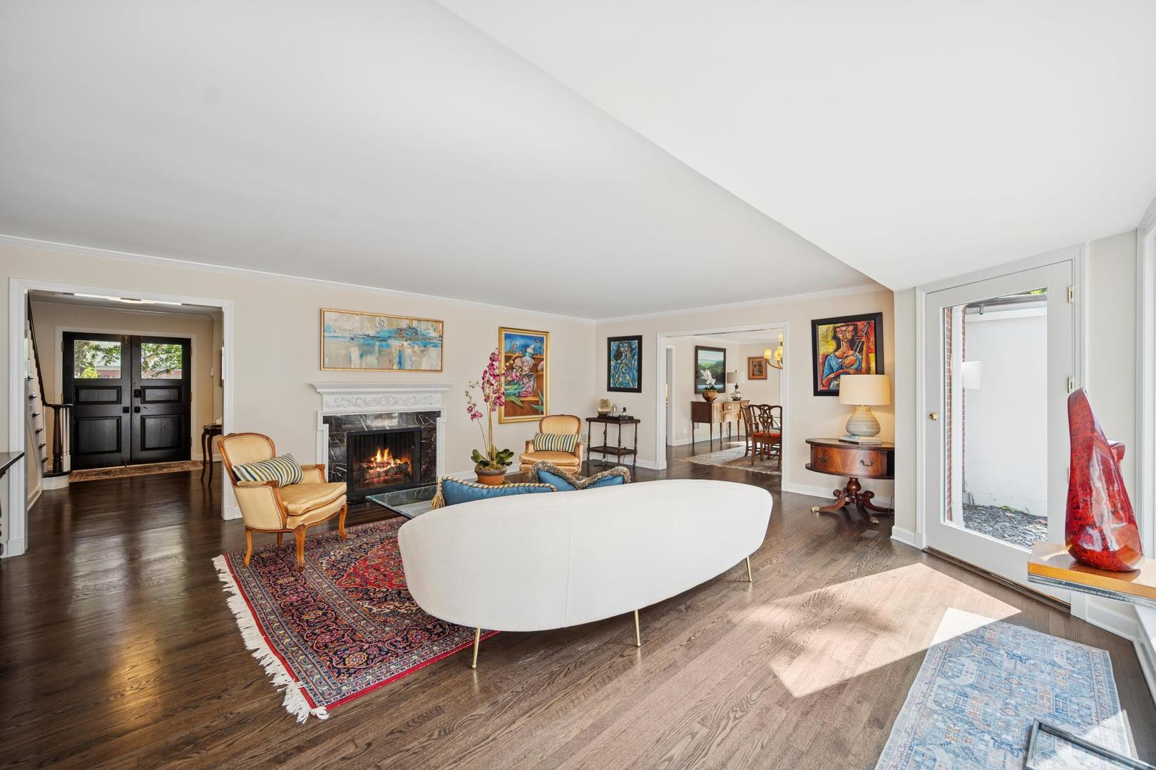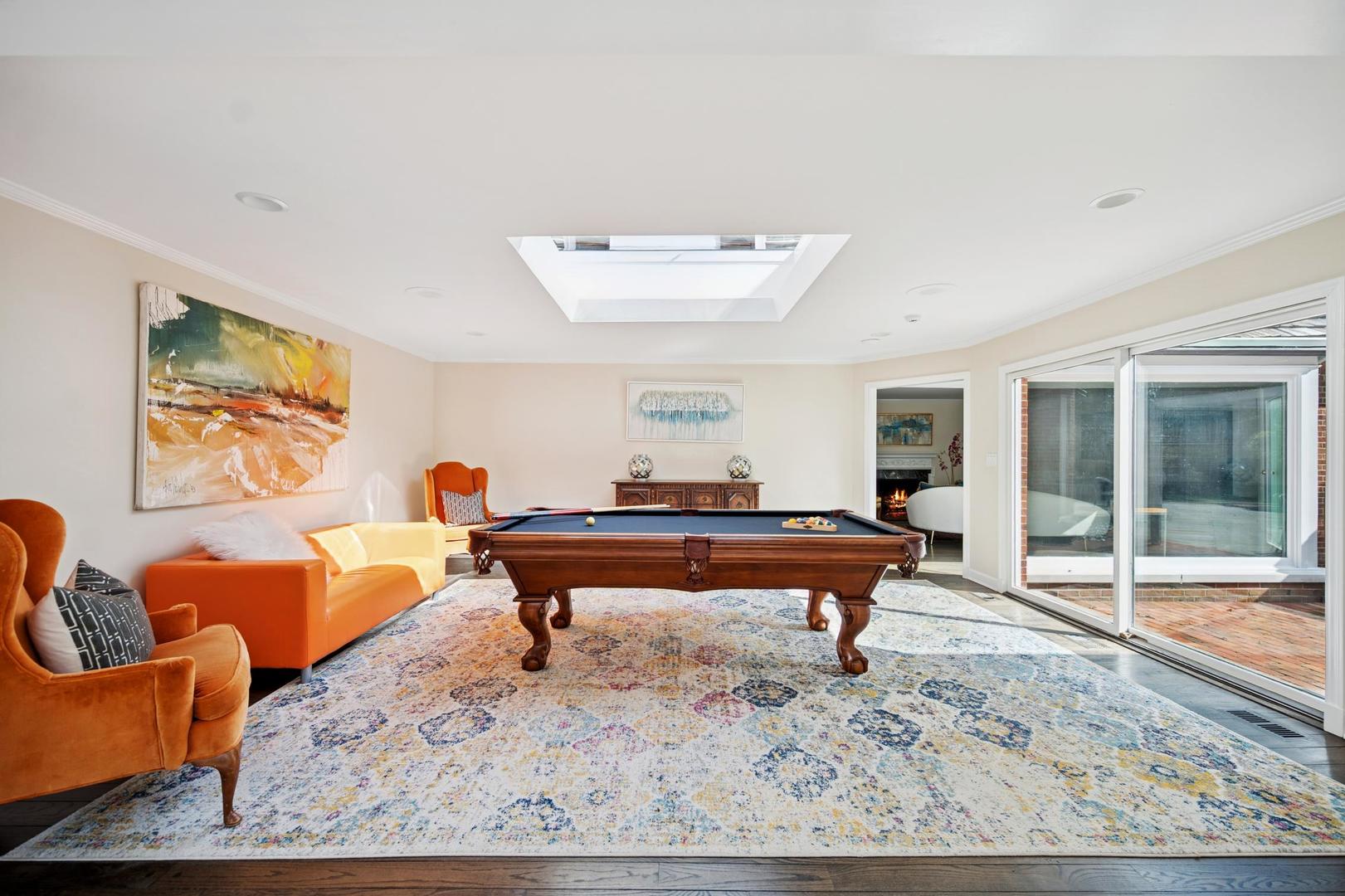 Desirable one-floor living, set privately on nearly an acre along a peaceful lane. With approximately 5,493 SF of comfortable living space, this fabulous 5 BR/5.1 BA home has been thoughtfully updated inside and out. The main level showcases the heart of the home: a sun-filled family room with a handsome fireplace, opening to a custom kitchen outfitted with top-tier appliances and wood mode cabinetry. The open floor plan, designed for comfort and expansive views, continues with living and dining rooms that flow seamlessly into a cheerful game room and an incredibly spacious rec room/second family room, featuring soaring ceilings, skylights, and doors to a sweeping bluestone terrace. A luxurious primary suite wing includes a large bath, generous walk-in closet, classic plantation shutters, and a private office. Upstairs in the family wing, you’ll find three spacious bedrooms and two updated baths. In the south wing, a private staircase leads to a separate suite with a sitting room, bedroom, and bath-ideal for guests, an au pair, or a teenager’s retreat. The beautiful fenced backyard overlooks a tranquil forest preserve, perfect for relaxation and outdoor gatherings. Additional highlights include new upstairs windows, hardwood floors, a Sonos whole-house sound system, a heated 3-car garage, and abundant attic storage. This move-in-ready home offers timeless comfort and modern living at its finest. Showings begin at broker open October 7th.