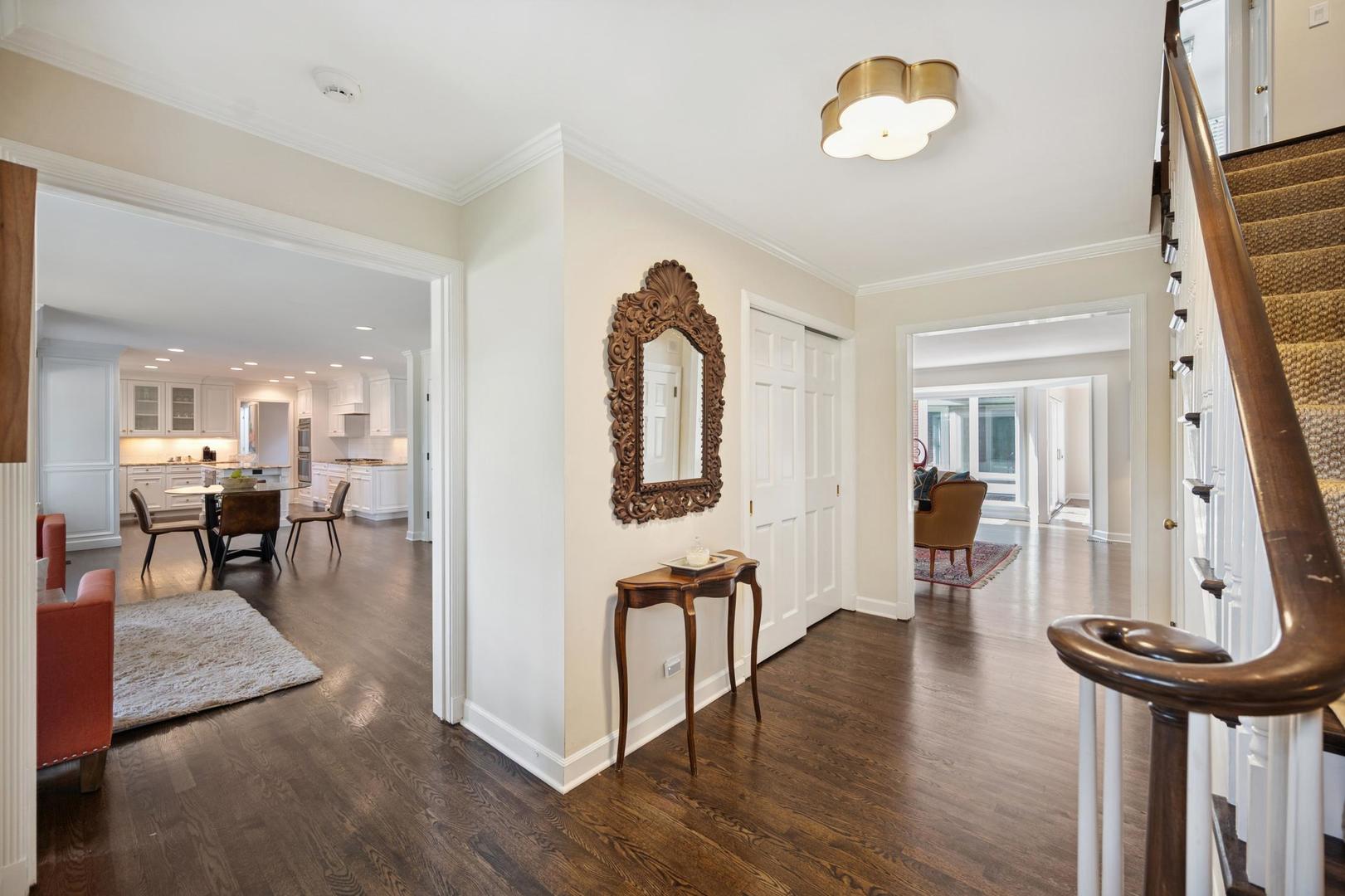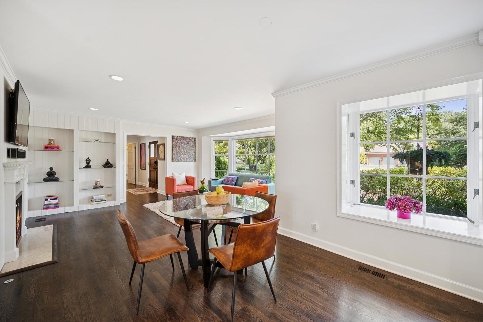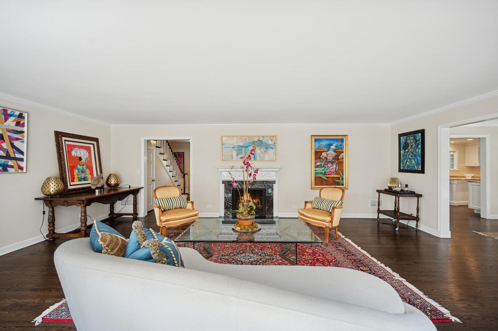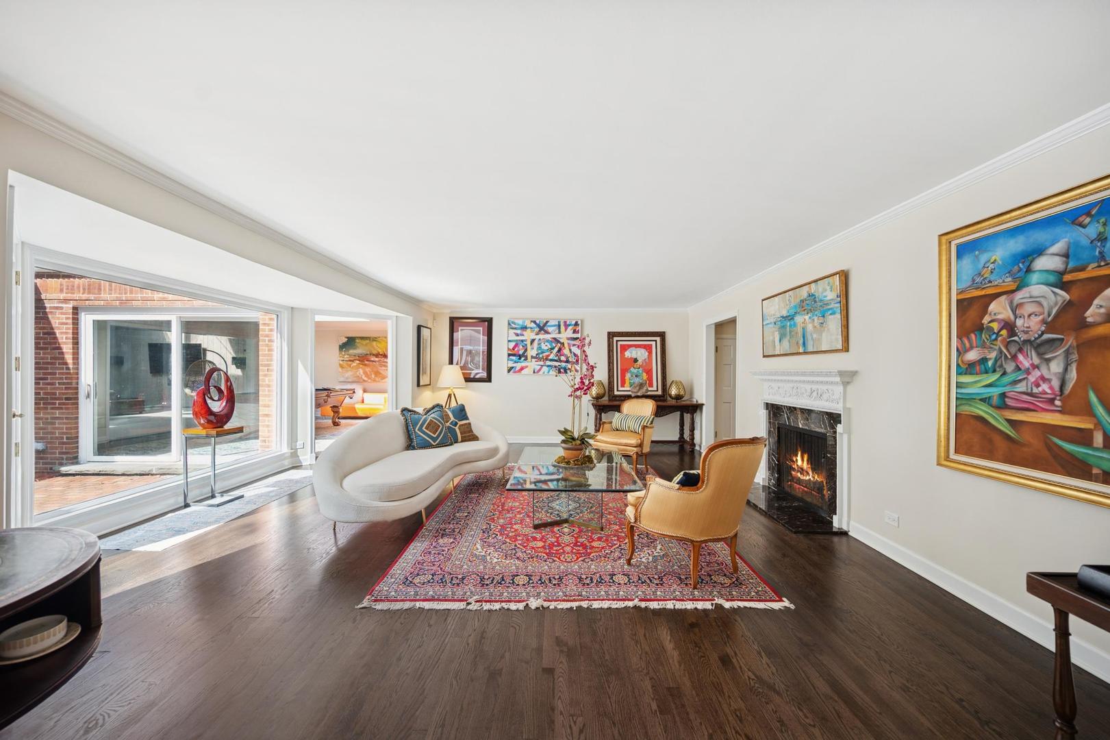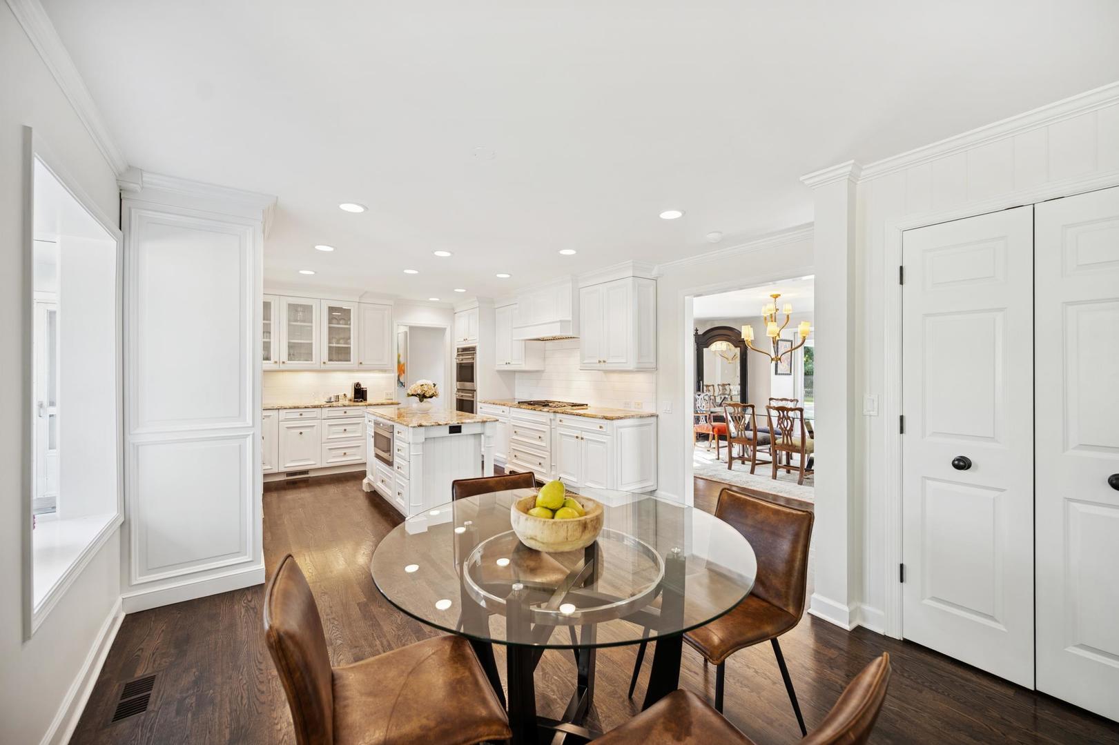 Desirable one-floor living, set privately on nearly an acre along a peaceful lane. With approximately 5,493 SF of comfortable living space, this fabulous 5 BR/5.1 BA home has been thoughtfully updated inside and out. The main level showcases the heart of the home: a sun-filled family room with a handsome fireplace, opening to a custom kitchen outfitted with top-tier appliances and wood mode cabinetry. The open floor plan, designed for comfort and expansive views, continues with living and dining rooms that flow seamlessly into a cheerful game room and an incredibly spacious rec room/second family room, featuring soaring ceilings, skylights, and doors to a sweeping bluestone terrace. A luxurious primary suite wing includes a large bath, generous walk-in closet, classic plantation shutters, and a private office. Upstairs in the family wing, you’ll find three spacious bedrooms and two updated baths. In the south wing, a private staircase leads to a separate suite with a sitting room, bedroom, and bath-ideal for guests, an au pair, or a teenager’s retreat. The beautiful fenced backyard overlooks a tranquil forest preserve, perfect for relaxation and outdoor gatherings. Additional highlights include new upstairs windows, hardwood floors, a Sonos whole-house sound system, a heated 3-car garage, and abundant attic storage. This move-in-ready home offers timeless comfort and modern living at its finest. Showings begin at broker open October 7th.