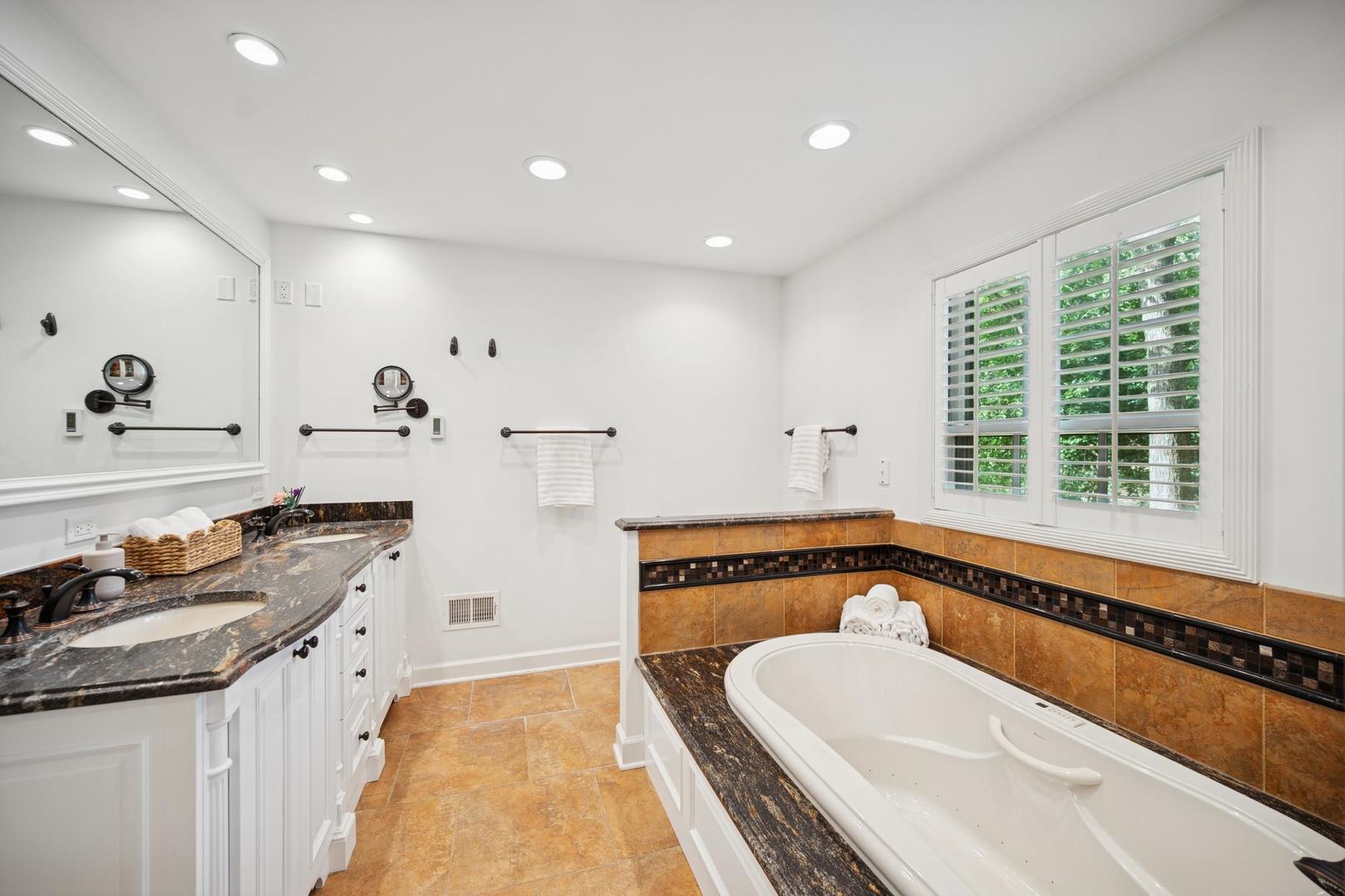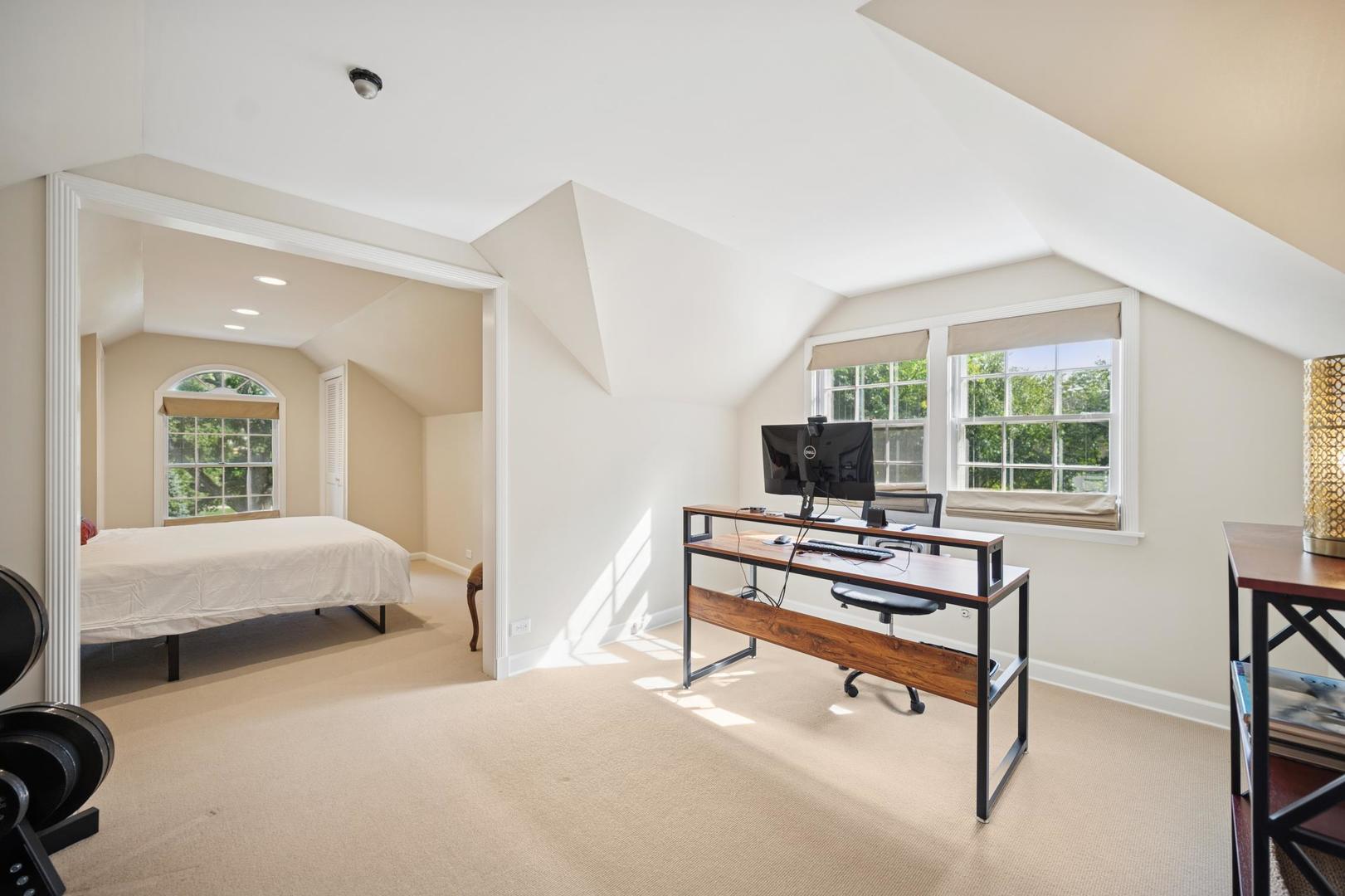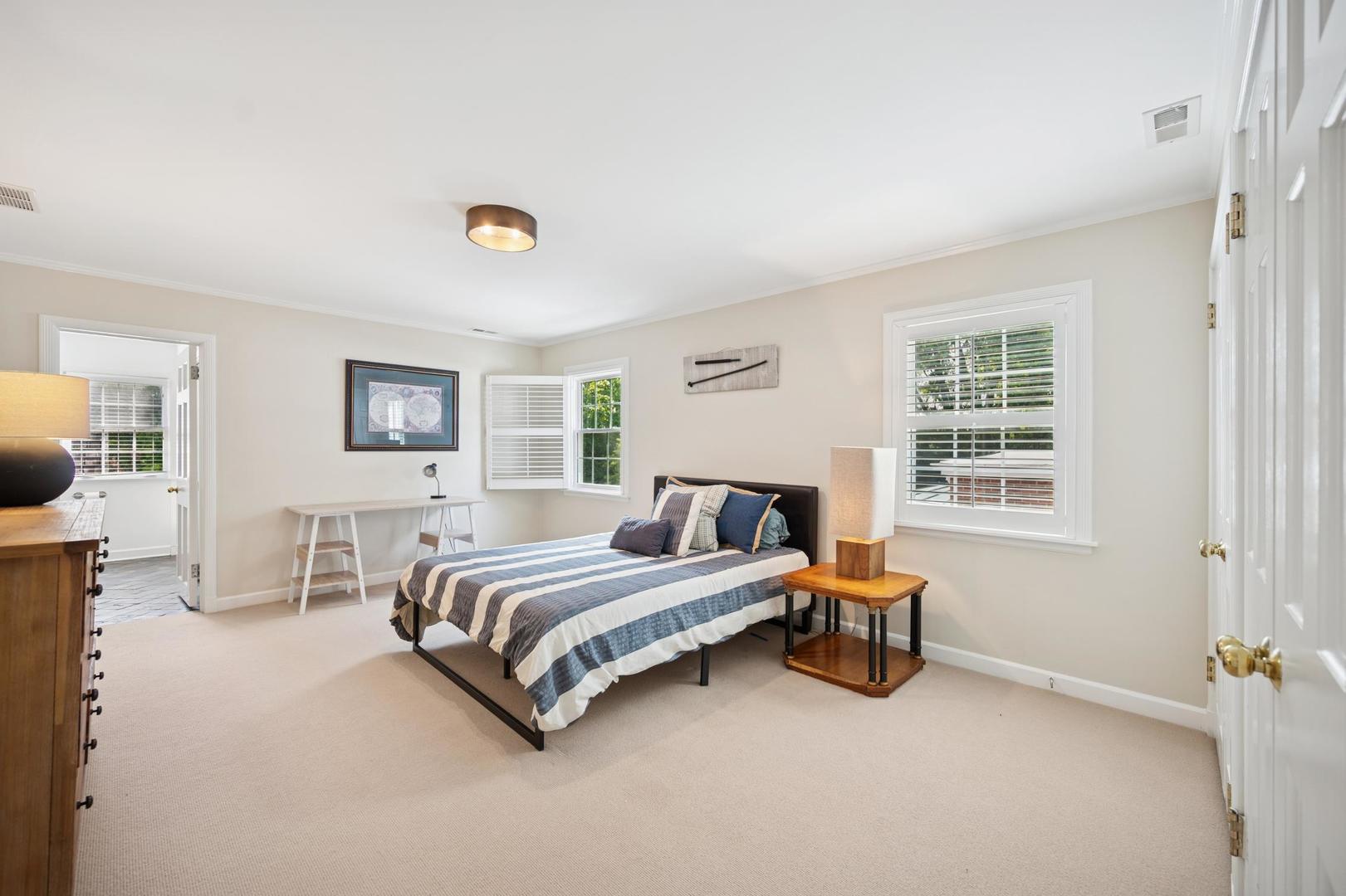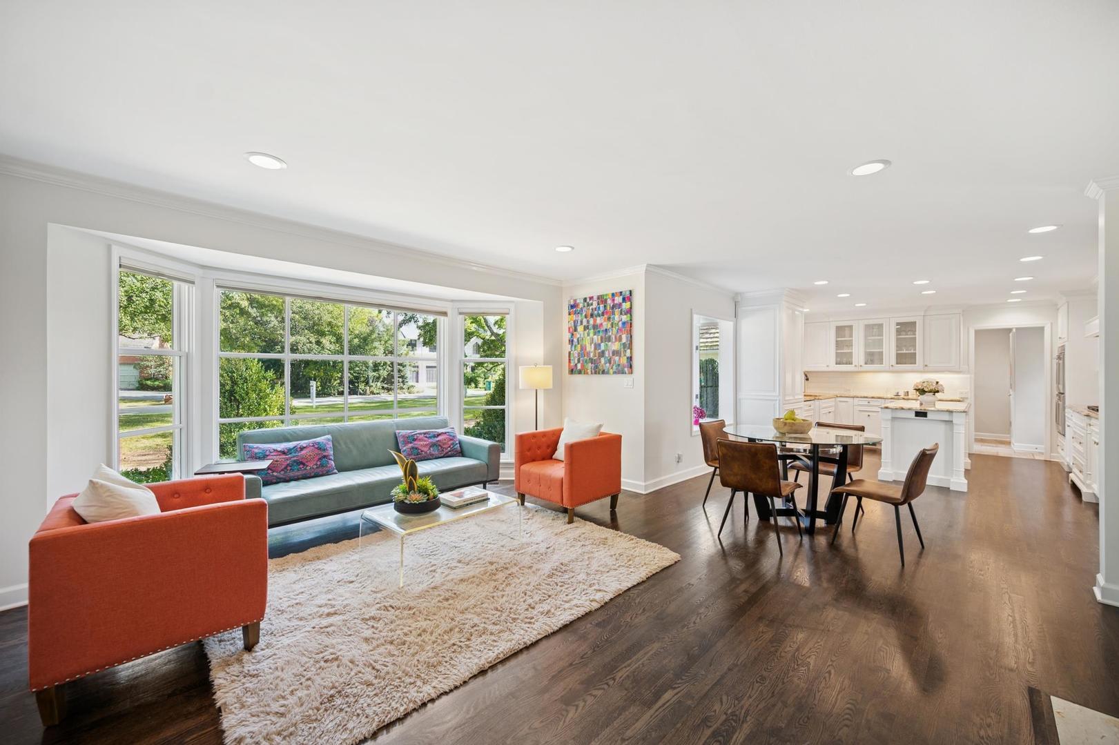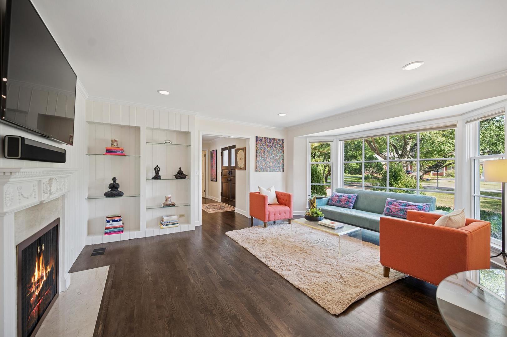 Desirable one-floor living, set privately on nearly an acre along a peaceful lane. With approximately 5,493 SF of comfortable living space, this fabulous 5 BR/5.1 BA home has been thoughtfully updated inside and out. The main level showcases the heart of the home: a sun-filled family room with a handsome fireplace, opening to a custom kitchen outfitted with top-tier appliances and wood mode cabinetry. The open floor plan, designed for comfort and expansive views, continues with living and dining rooms that flow seamlessly into a cheerful game room and an incredibly spacious rec room/second family room, featuring soaring ceilings, skylights, and doors to a sweeping bluestone terrace. A luxurious primary suite wing includes a large bath, generous walk-in closet, classic plantation shutters, and a private office. Upstairs in the family wing, you’ll find three spacious bedrooms and two updated baths. In the south wing, a private staircase leads to a separate suite with a sitting room, bedroom, and bath-ideal for guests, an au pair, or a teenager’s retreat. The beautiful fenced backyard overlooks a tranquil forest preserve, perfect for relaxation and outdoor gatherings. Additional highlights include new upstairs windows, hardwood floors, a Sonos whole-house sound system, a heated 3-car garage, and abundant attic storage. This move-in-ready home offers timeless comfort and modern living at its finest. Showings begin at broker open October 7th.