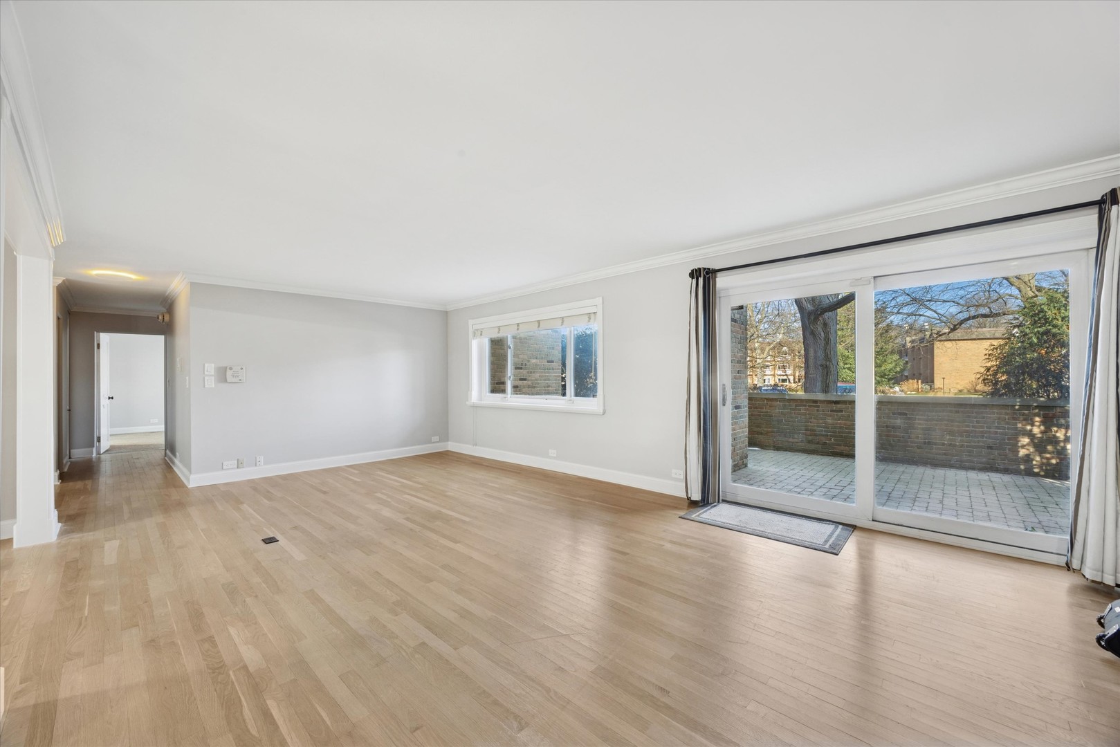 Corner unit lives like a private home with north, south and east views. Freshly painted and nicely updated w/hardwood floors & crown moldings, newer kitchen with custom 42″ cabinets, stainless steel appliances, granite counters plus generously sized breakfast bar. Expansive living room/dining area w/fireplace, accented with exposed brick wall. A most special private oversized, brick patio too – no other like it in Claymoor!