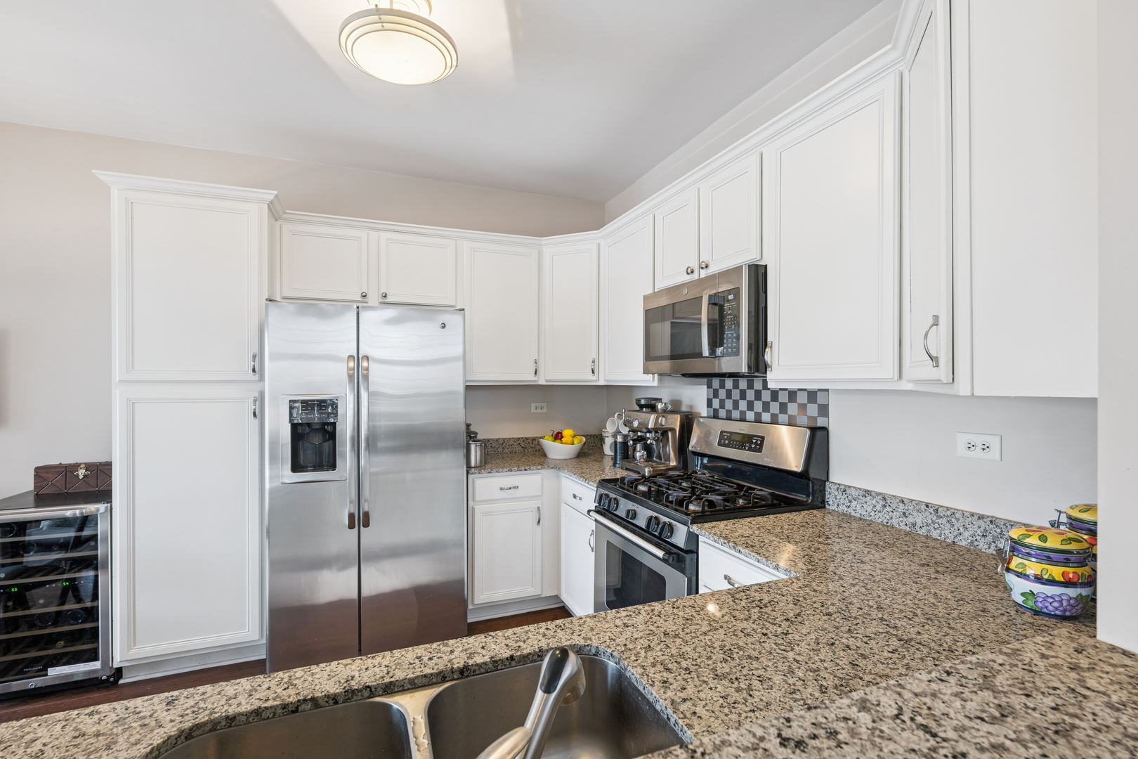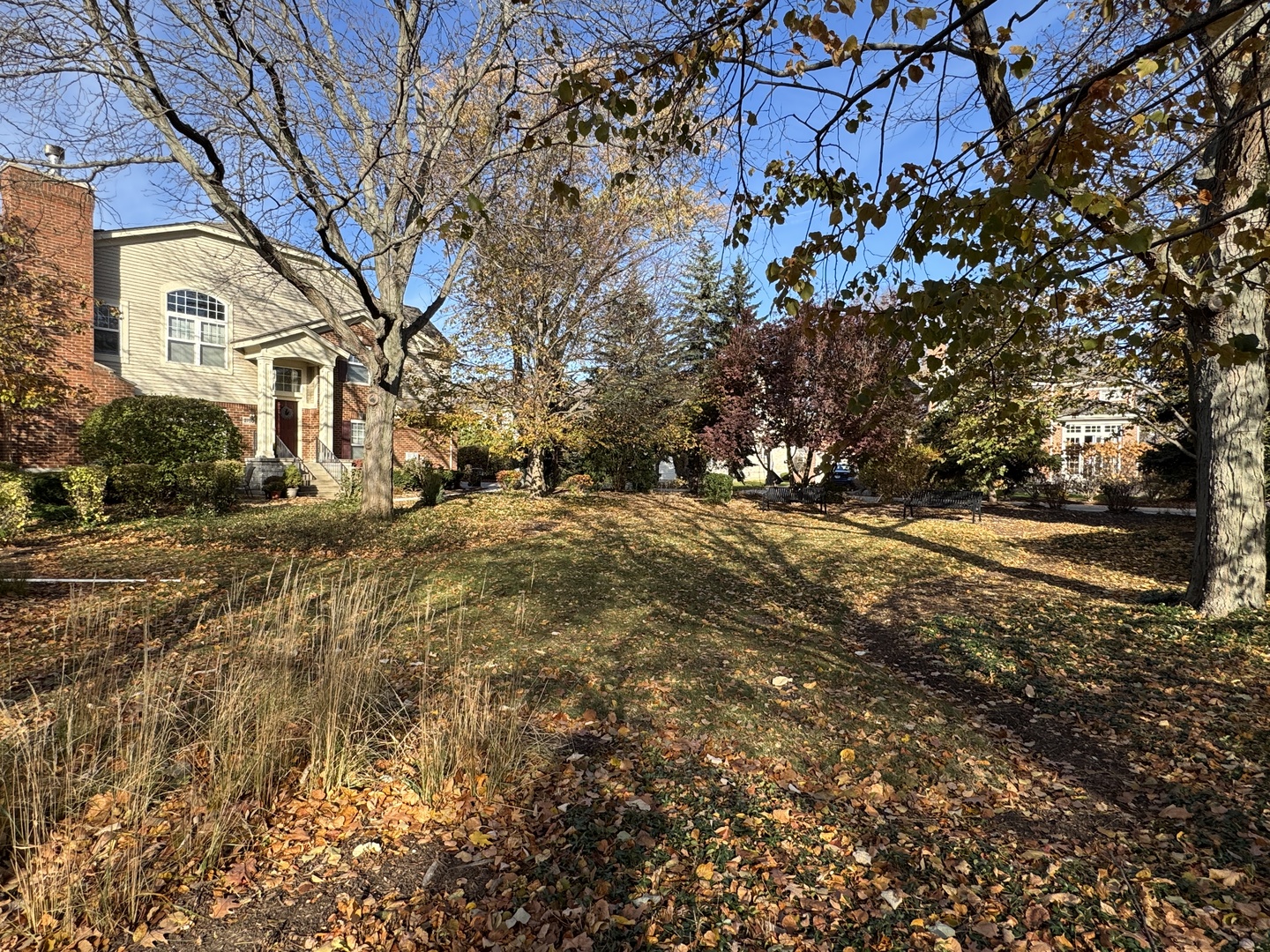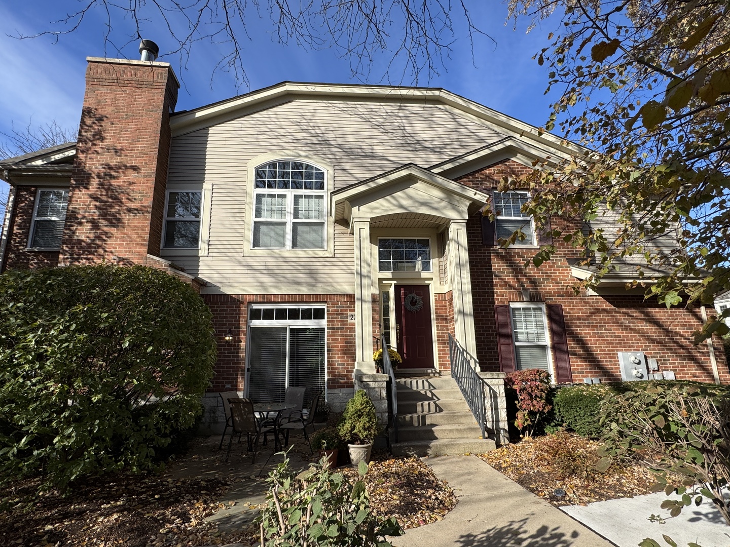 Beautifully updated in the highly desirable Southgate at The Glen, 2nd-floor sophisticated end-unit townhome offering a premium park setting with stunning seasonal views. This flexible floor plan features 2 bedrooms plus a versatile den/loft that can easily serve as a 3rd bedroom, along with 2 full baths, a private south-facing balcony, and an attached 2-car garage. The sun-filled cook’s kitchen shines with white cabinetry, stainless steel appliances, a gas stove, long granite counters, a closet pantry, and abundant natural light. A breakfast bar flows into the open concept living and dining rooms, where a redesigned stacked marble and stone fireplace creates a beautiful focal point-perfect for entertaining. Vaulted ceilings, palladium windows, hardwood floors, and a dramatic 2-story foyer enhance the inviting atmosphere. Double doors lead to a spacious primary suite, featuring a luxurious bath with dual vanity sinks, a glass-enclosed walk-in shower, a separate oversized jacuzzi tub, and a large custom-organized walk-in closet. The 2nd bedroom is generously sized, and 2nd full bath includes a tub/shower combination. A large laundry room with full-size stackable washer and dryer adds convenience & storage. Recent mechanical and exterior upgrades include a new furnace (2024), roof/gutters (2020), A/C (2021). Enjoy maintenance-free living in a tree-lined neighborhood close to award-winning schools, restaurants, shopping, two golf courses, Lake Glenview, parks, tennis/pickle courts, Glenview Park District- Rec Center, and the Metra train. A truly lovely home in an unbeatable location.