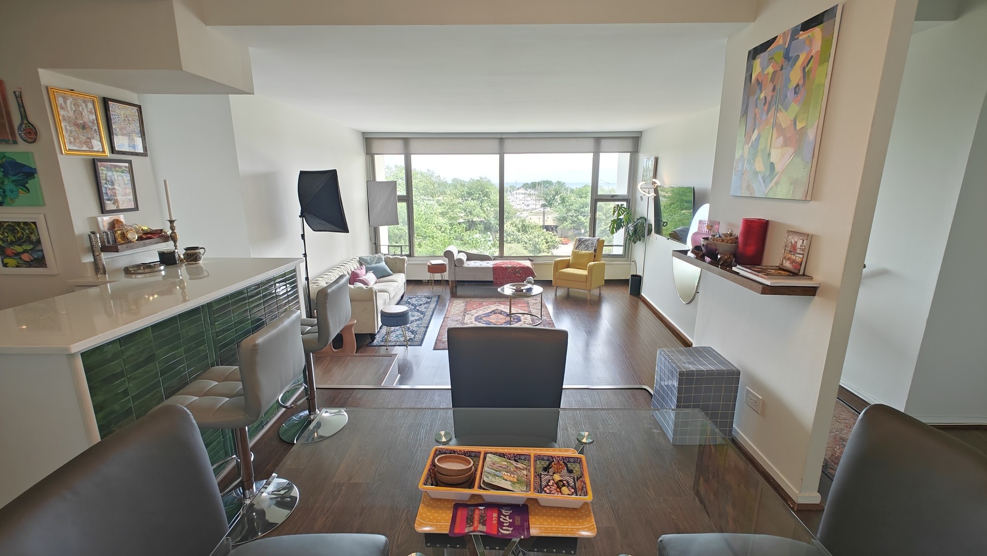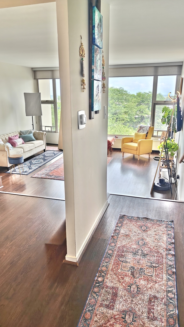 Breathtaking Lake Michigan Views from Every Room! Welcome to this rare floorplan with sun-drenched, 2-bedroom, 2-bath, 1,250 sq ft home perched above Belmont Harbor, offering floor-to-ceiling windows and Lake Michigan views in every room. This stunning residence seamlessly combines modern luxury with timeless comfort in one of Lakeview’s most coveted full-amenity buildings. Step into the beautifully updated, open kitchen featuring sleek quartz countertops, a striking backsplash, gas stove, and premium stainless steel appliances – perfectly designed for both everyday living and entertainment. Hardwood floors throughout!! Dine with lakefront vistas in the dining area and unwind in the spacious, sunken living room flooded with natural light and lake views. The rare split-bedroom floor plan ensures maximum privacy, with each full bathroom located on opposite sides of the home. The luxurious en-suite primary bathroom boasts elegant subway tile, spacious bathtub, and high-end Grohe fixtures, while the second bathroom impresses with an expansive walk-in shower and modern Grohe finishes. Additional highlights include brand new in-unit washer and dryer, soaring ceilings, and oversized floor-to-ceiling closets with custom organizers throughout. Central A/C and heating and the HOA includes all utilities except electricity. Resort-Style Amenities at Your Doorstep Enjoy 24-hour door staff, a state-of-the-art fitness center, year-round heated indoor pool, relaxing saunas, sundeck with lake views, modern package pickup room, and the ultimate convenience of garage valet parking. Unmatched Lakeview Location. Live just steps from the lakefront trail, parks, shopping, dining, and everything Lakeview has to offer. This exceptional home provides the perfect blend of vibrant city living with tranquil waterfront serenity – right outside your window. Only 4 units per floor!