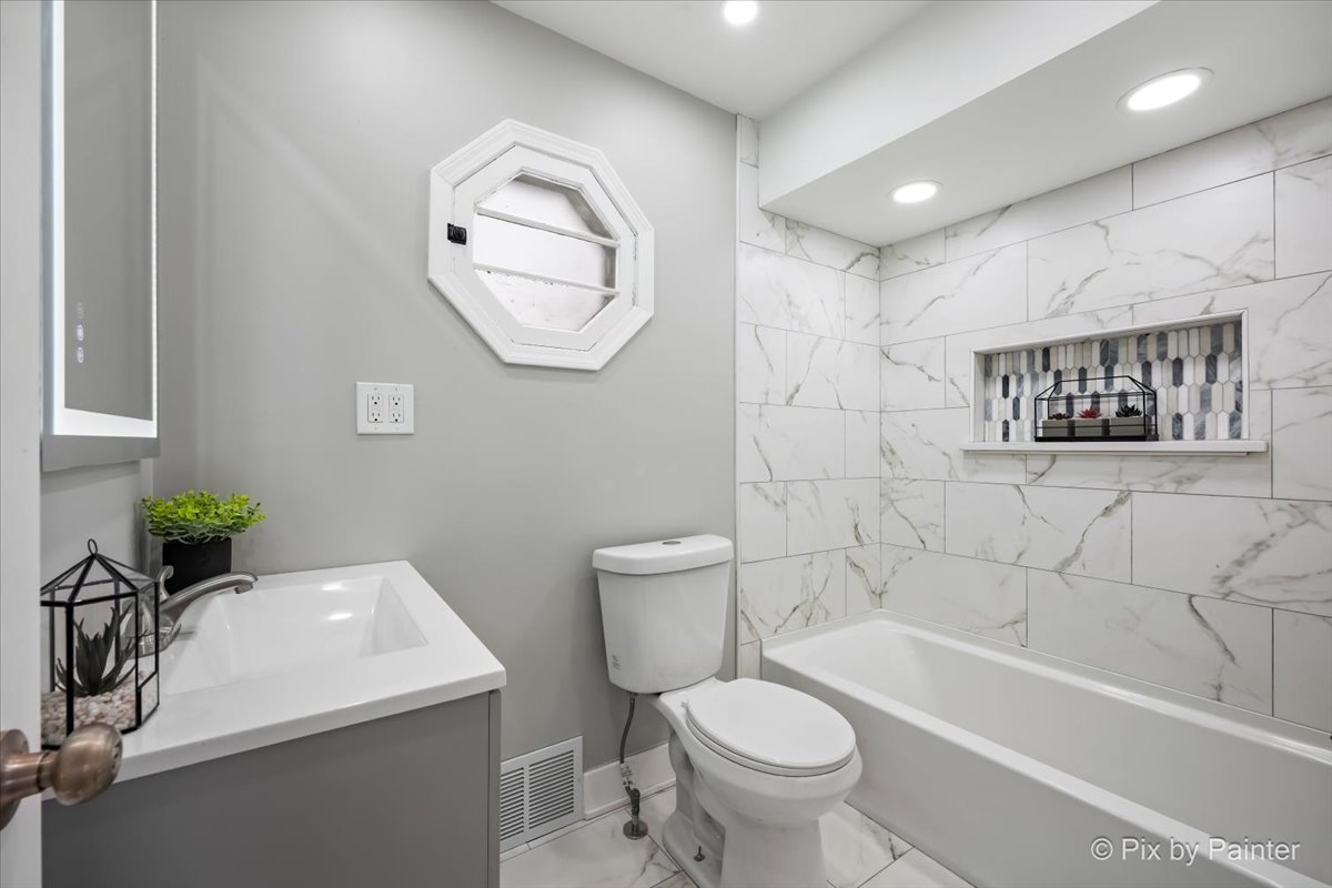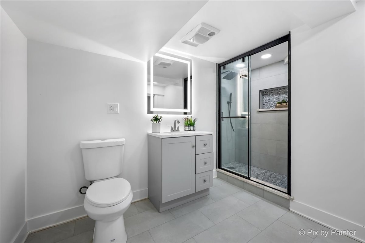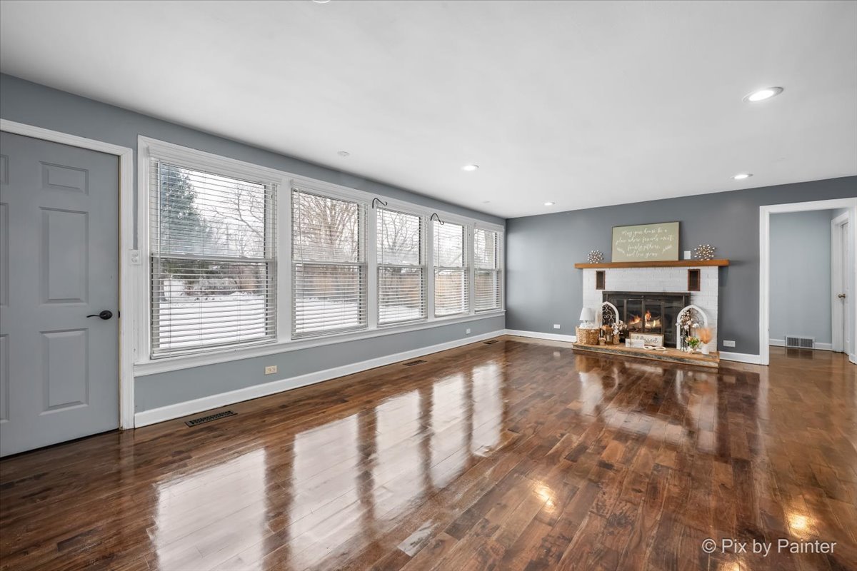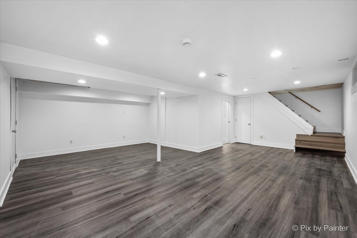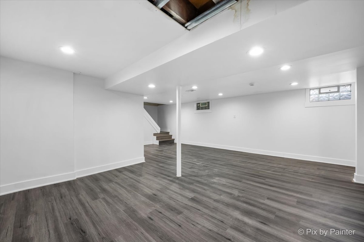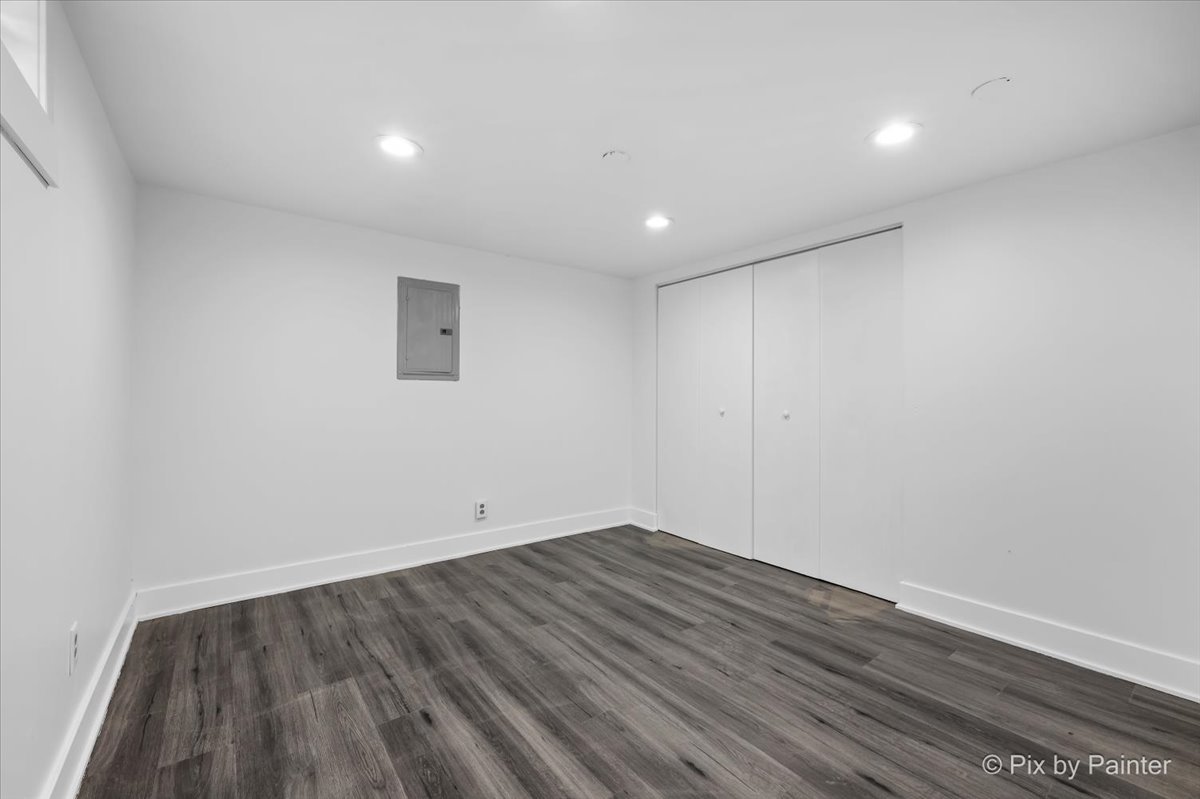Perfectly situated within walking distance to shops and restaurants, this charming Roselle ranch offers: The main level two bedrooms and one bath with an inviting open layout. The kitchen showcases granite countertops, custom white cabinets, and stainless steel appliances. Natural light pours in through an entire wall of windows, highlighting the living area and serene views of the lush backyard. The freshly finished basement adds valuable living space and features a full bathroom, a flex room ideal for a home office, gym, or guest space, and a comfortable family room, perfect for relaxing or entertaining. A long driveway provides ample off-street parking and leads to a 2-car detached garage with extra storage space and situated on a generously sized lot. Conveniently located near parks, Metra station, schools, and the community pool-this home offers both comfort and an unbeatable location!!!