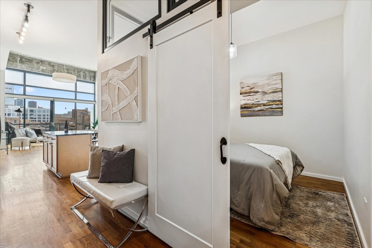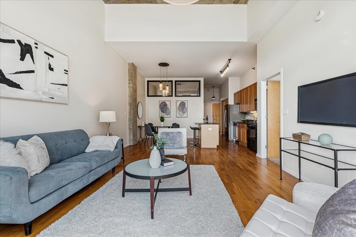 This is a must see 2 bedroom / 2 bath condo with amazing views in the West Loop. It’s a rarely available penthouse concrete loft in sought after Lofthaus. Take in the breathtaking east facing views with floor-to-ceiling windows and soaring 18 ft ceilings. Step out onto the 15 foot long balcony through the double sliding doors from the huge living room. Super bright and open floor plan. Maple cabinets, granite counters and new SS appliances complete the kitchen. The granite center island w/breakfast bar is the heart of the condo making it easy to socialize with guest, because everyone winds up in the kitchen. There is also a wide separate dining area that can fit a true dining table. The primary bedroom has the same 18 ft. floor to ceiling windows, organized closets and a primary bathroom with separate slate shower and deep tub. The second bedroom is fully enclosed with large transom windows to bring in the light, plus a contemporary sliding barn door and hardwood floors. Included in the second bedroom is a custom murphy bed / desk combination to maximize space. Extra large second bathroom with marble tile is conveniently across the hall from the second bedroom. Stackable washer/dryer & custom window coverings complete the home. Storage cage #41 included. Heated parking is an additional $25,000. Investor friendly building with no rental cap. Location is the best feature of all. Walk to the Loop, Trains, Metra, Randolph, Target, Dog Park, Restaurants, Bars, & Shops!