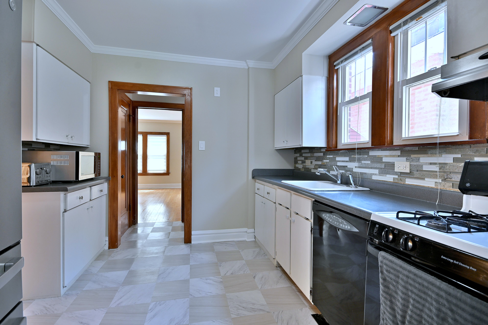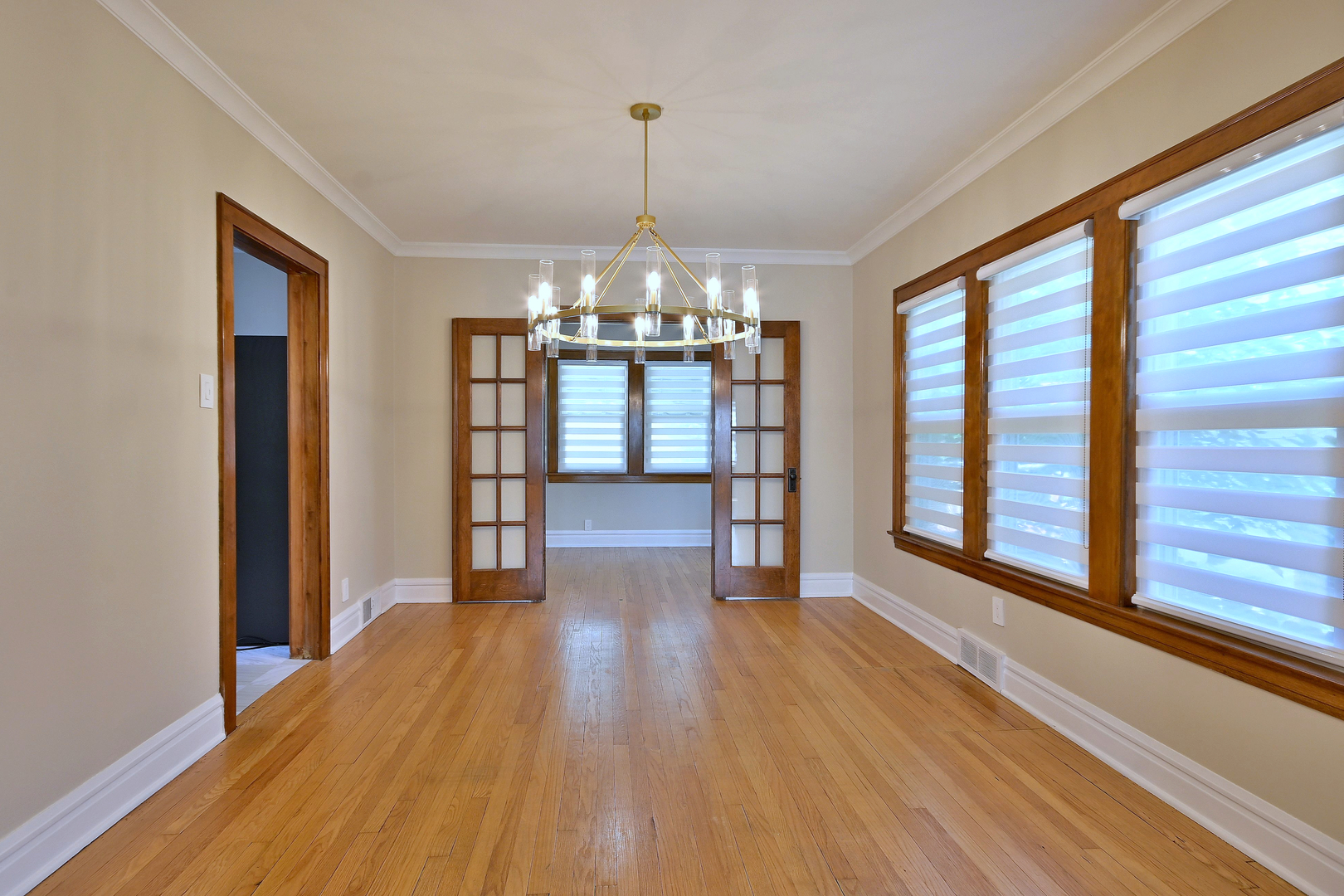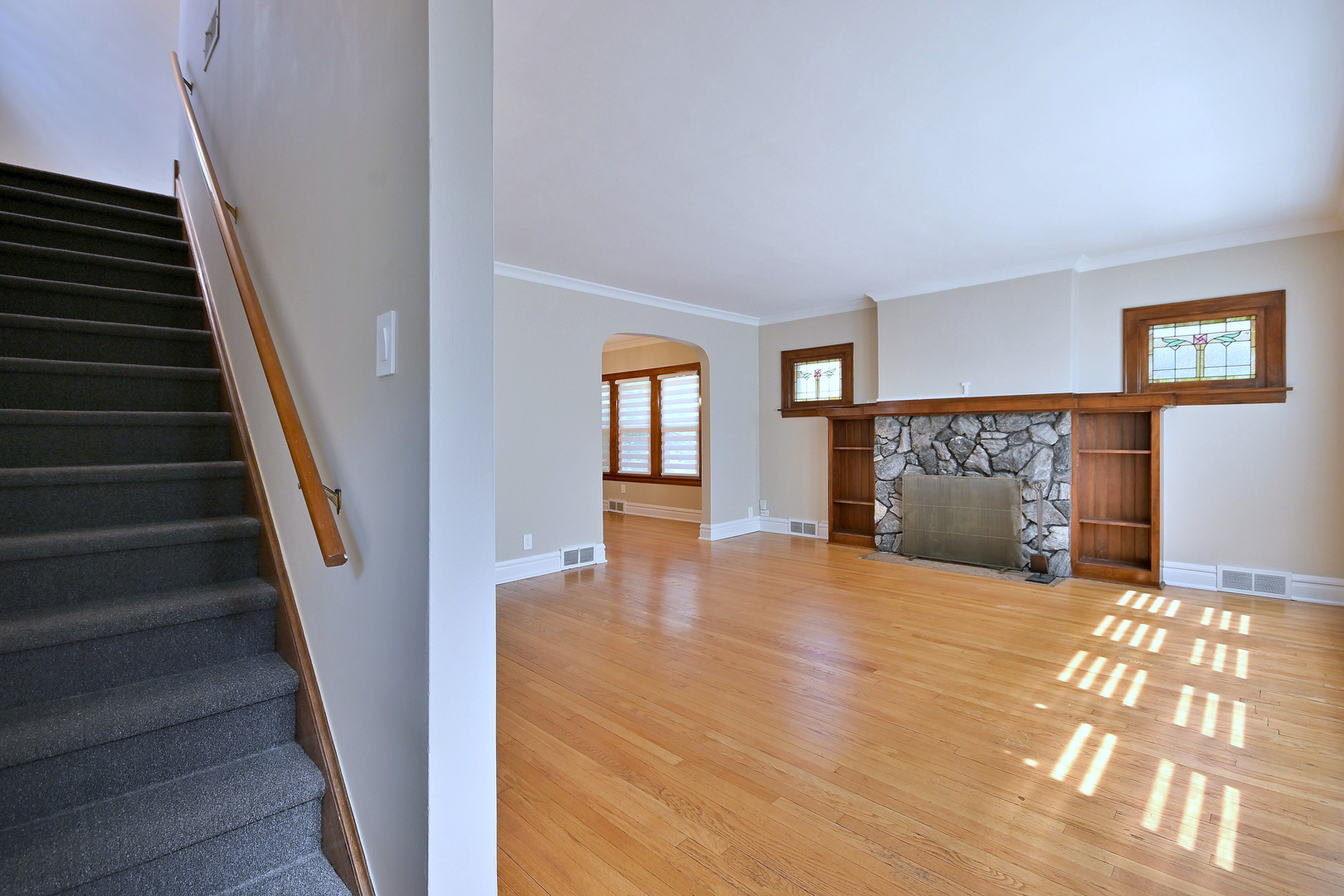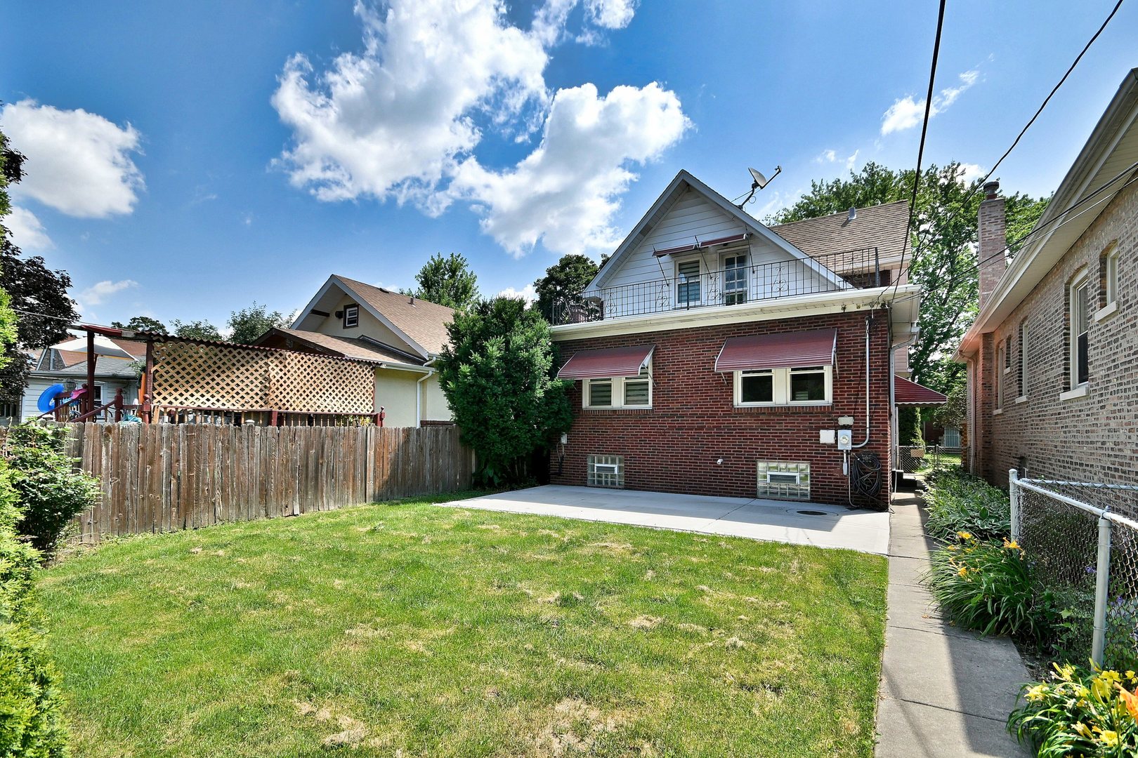 Welcome to this charming brick English Tudor-style home that beautifully blends timeless character with thoughtful modern updates. Featuring 3 bedrooms plus a den and 2 full bathrooms, this home offers a warm and inviting layout with hardwood floors throughout. The cozy living room is anchored by a fireplace with custom built-ins, perfect for relaxing or entertaining. A bright, updated kitchen offers ample cabinet space and modern finishes, while both bathrooms have been recently renovated to reflect today’s style and comfort. The main floor includes one bedroom with elegant French doors and a versatile den-ideal for a home office or guest space. Upstairs, the spacious primary bedroom and second bedroom each feature walk-in closets and share a beautifully updated bathroom. The second bedroom also offers access to a private deck overlooking the backyard. The full finished basement extends the living space with a large family room, a second full bathroom, a dedicated laundry room, and generous storage areas. Outside, the home sits on a spacious lot with a large yard perfect for outdoor enjoyment. A detached two-car garage adds convenience and additional storage. This classic Tudor is full of charm, functionality, and updates-ready to welcome you home.