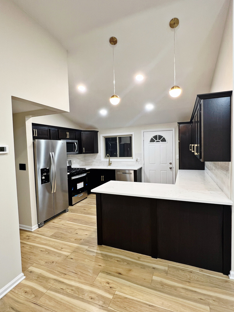 Welcome to your newly renovated single-family home! This 4-bedroom, residence offers 1,100 sq.ft. of stylish living space with vaulted ceilings that create a bright, open, and airy feel throughout. Enjoy a modern kitchen featuring quartz countertops, brand-new stainless-steel appliances, and a sleek design perfect for both everyday living. Large Back Yard for Entertaining.