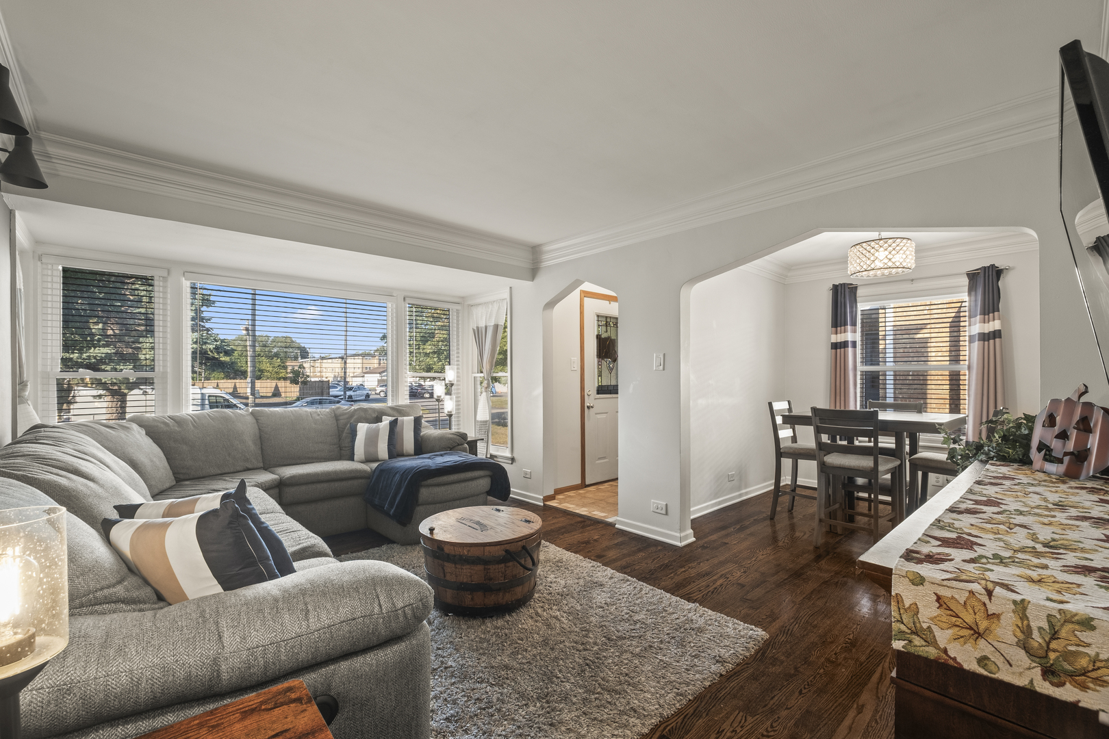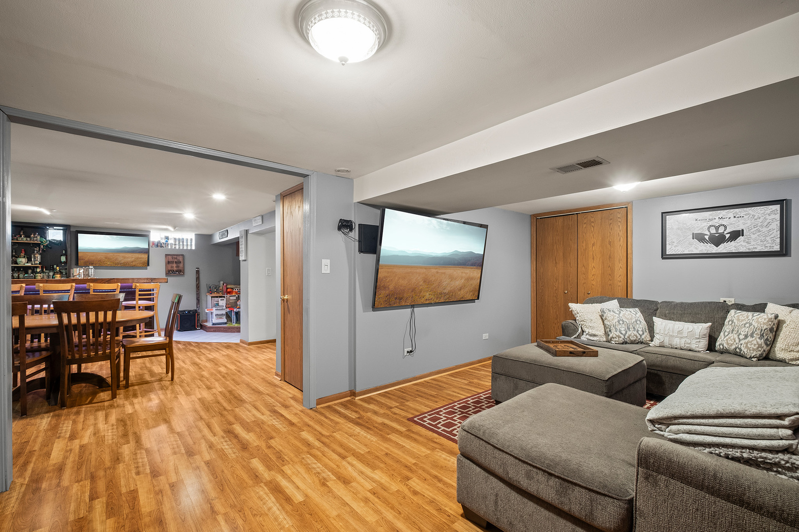 Charming Brick Home in the Heart of Evergreen Park! Welcome to this beautifully maintained 2-bedroom, 2-bath brick home nestled in the sought-after Evergreen Park neighborhood. Inside, you’ll find a bright galley kitchen, spacious living areas, hardwood flooring, and a finished basement offering additional living space with a custom built bar for entertaining. This inviting property features a brand-new tear-off roof (2022), concrete driveway (2023), and a detached two-car garage for added convenience. The all-wood fenced yard features a stone bar with a built in fridge and a covered patio, the perfect setting for outdoor gatherings or relaxing evenings. 12×10 shed behind the garage, great for additional storage. Located in a top-rated school district, this home combines comfort, function, and location-making it an ideal choice for anyone looking to call Evergreen home!