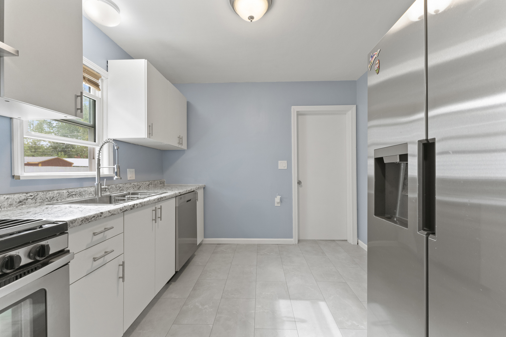 Welcome to this beautifully updated 2-bedroom, 1-bath home nestled in a quiet Zion neighborhood. Perfect for first-time buyers or anyone seeking a cozy, move-in ready space. Step inside to a bright living area with new flooring throughout the living and dining rooms. The modern kitchen features white cabinetry, updated countertops, sleek fixtures, and stainless steel appliances, making it ideal for everyday cooking and entertaining. The renovated bathroom showcases elegant tile work and updated finishes for a clean, contemporary look. New windows throughout bring in abundant natural light and improve energy efficiency. Outside, enjoy a spacious yard, perfect for BBQs, gardening, or relaxing. Conveniently located near Shiloh Park, Illinois Beach State Park, schools, shopping, restaurants, and the Metra station for an easy commute to Chicago. A perfect starter home offering comfort, style, and value!